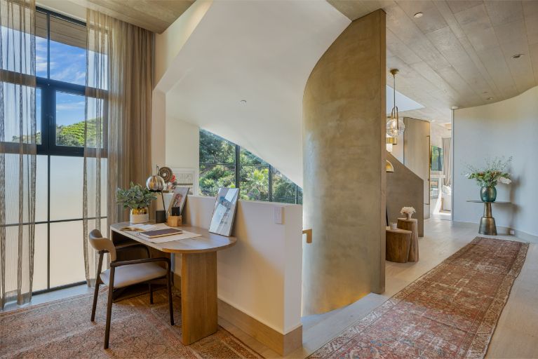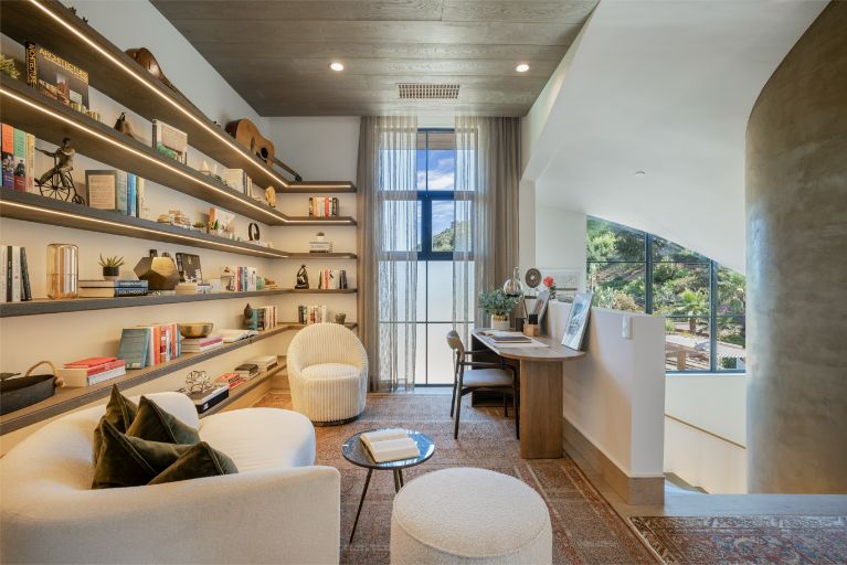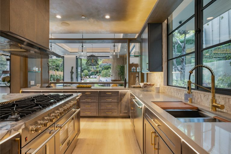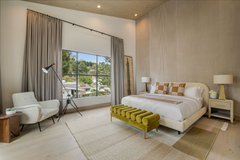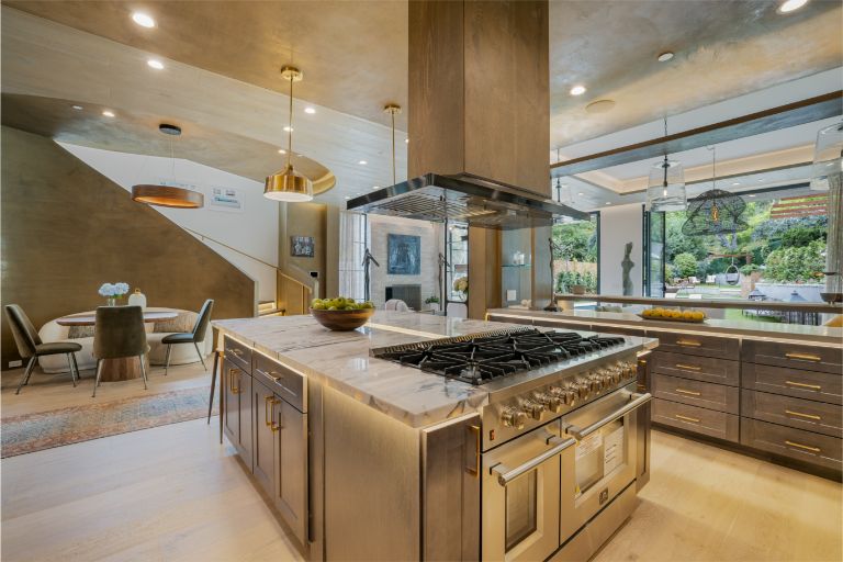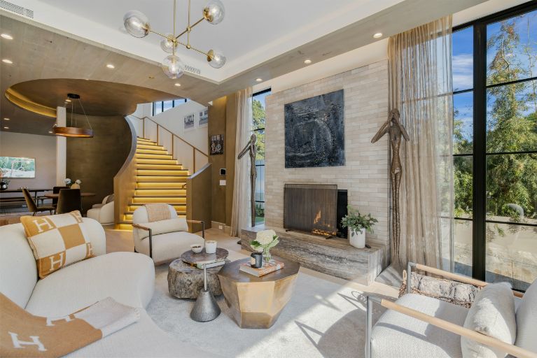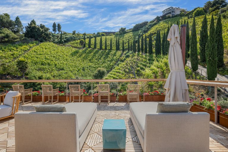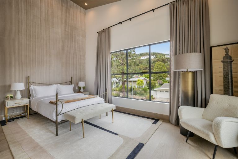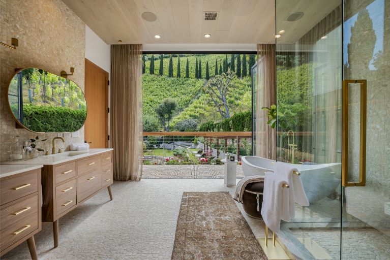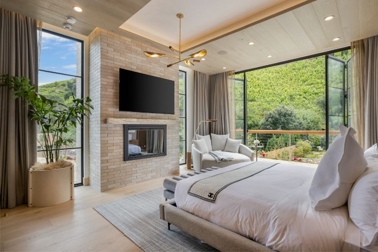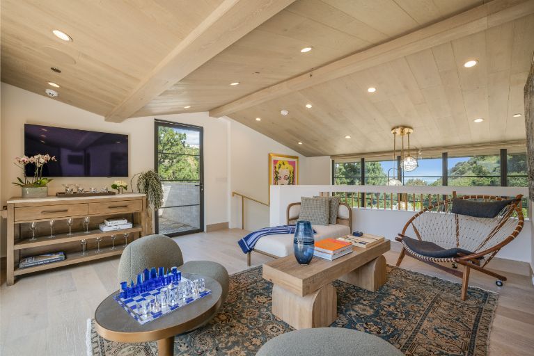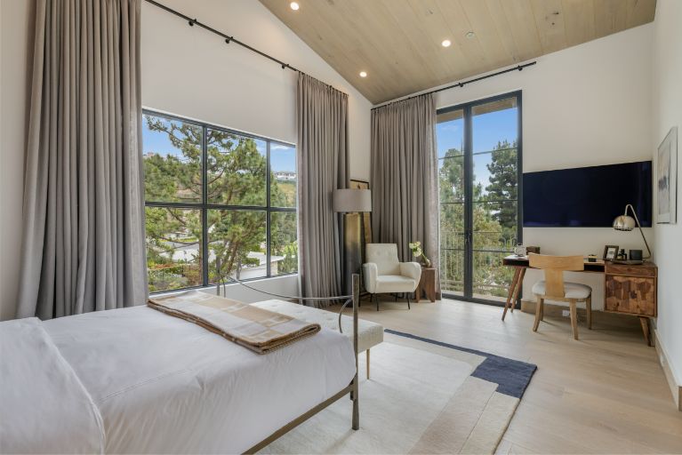 Welcome to Villa Montalcino. A slice of Tuscany awaits in the heart of the prestigious Pacific Palisades. A vision of elegance and charm, the estate was built in perfect harmony with its surroundings, where canyon serenity meets lush vineyards under a blanket of fresh ocean air. The newly completed Villa Montalcino is the latest in the lineage of architectural masterpieces by the renowned Arya Group. Nestled at the base of the Arya Estates Vineyard, this hillside haven is the only of its kind in Los Angeles, and transports you to a time and place that is uniquely its own. The perfect blend of warm modern luxury and comfortable functionality, the home boasts 4 beds & 6 baths, each offering its own glimpse of breathtaking canyon scenery. Tucked away in peaceful privacy, Villa Montalcino is only minutes from local beaches and the bustling Palisades Village. The sweeping open floor plan allows for a graceful flow through the main level, which includes formal dining, a breakfast area, beautiful kitchen, elegant powder room and two living spaces perfect for relaxation and entertaining alike. Seamlessly transition to the outdoor oasis through disappearing walls of glass, creating a harmonious indoor-outdoor experience. California living at its finest, the sprawling backyard includes a large pool with Baja shelf, BBQ area and endless patio / grass spaces for al fresco dining & lounging.The primary suite is a true sanctuary, featuring a fireplace and private balcony through accordion doors allowing for natural light, expansive green vistas, and fresh air to flood the space. The spa-like en-suite bath offers a gorgeous stone soaker tub, glass shower with three shower heads, dual vanities, heated floors, and a boutique-worthy closet. For breathtaking views of the ocean, escape to the expansive teak rooftop deck, where you can relax and soak in the beauty of the surroundings, or host an unforgettable gathering under the stars. Additional luxury amenities include well-appointed guest suites, state of the art security systems, an upper level loft, wide plank oak floors, Sonos sound system, Lutron light system, iPort, a laundry space with two washer / dryer sets & built-ins, and so much more. Uplighting throughout the interior & exterior accentuate the architectural beauty while creating a captivating ambiance. From impeccable finishes to seamless indoor/outdoor living and breathtaking views, this property offers an experience like no other. Decades of vision and imagination come to life with elegance, comfort and sophistication at Villa Montalcino.
