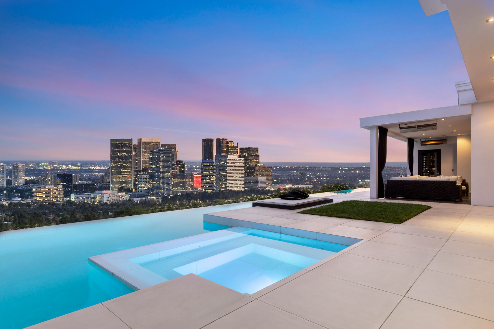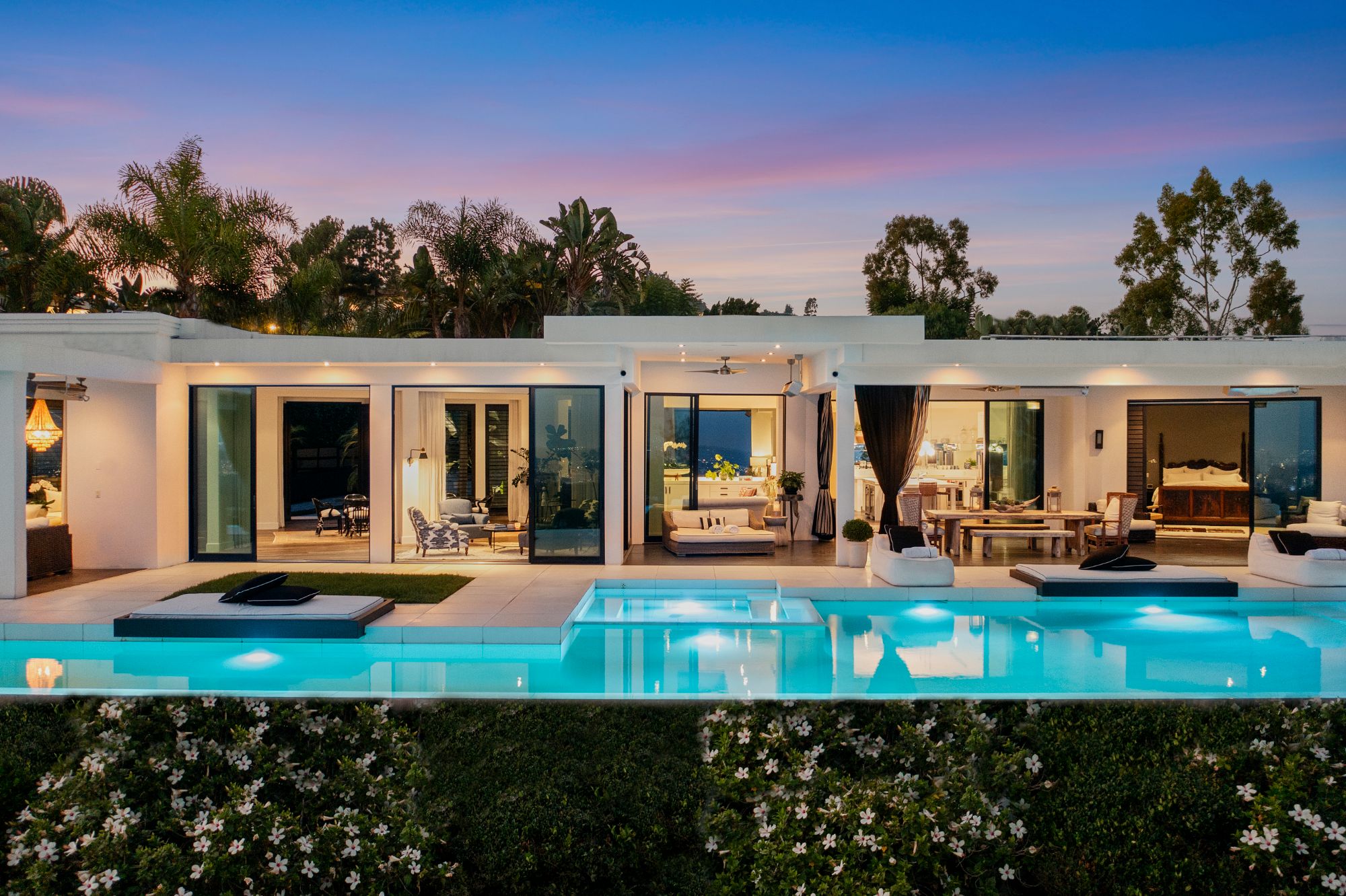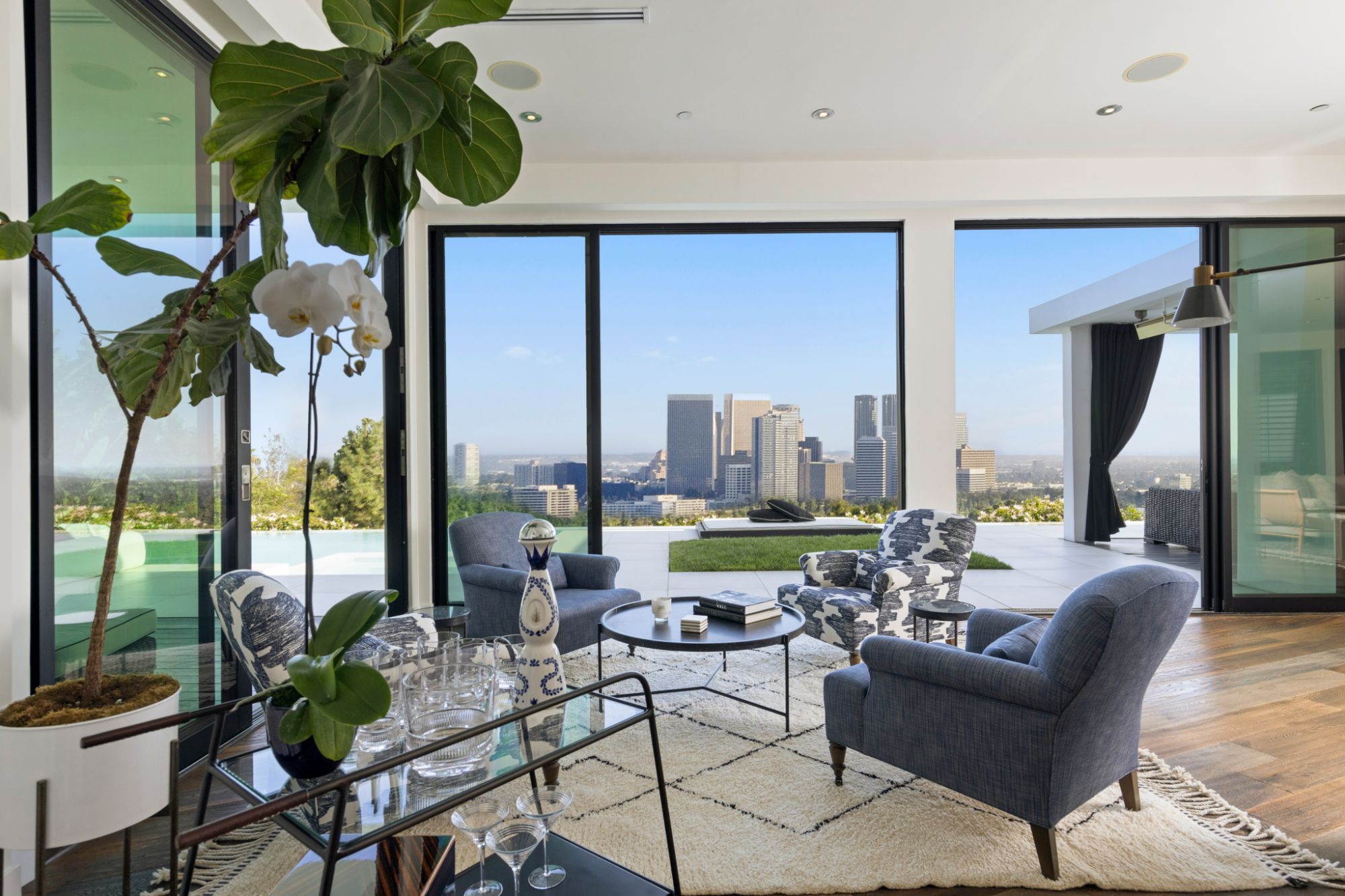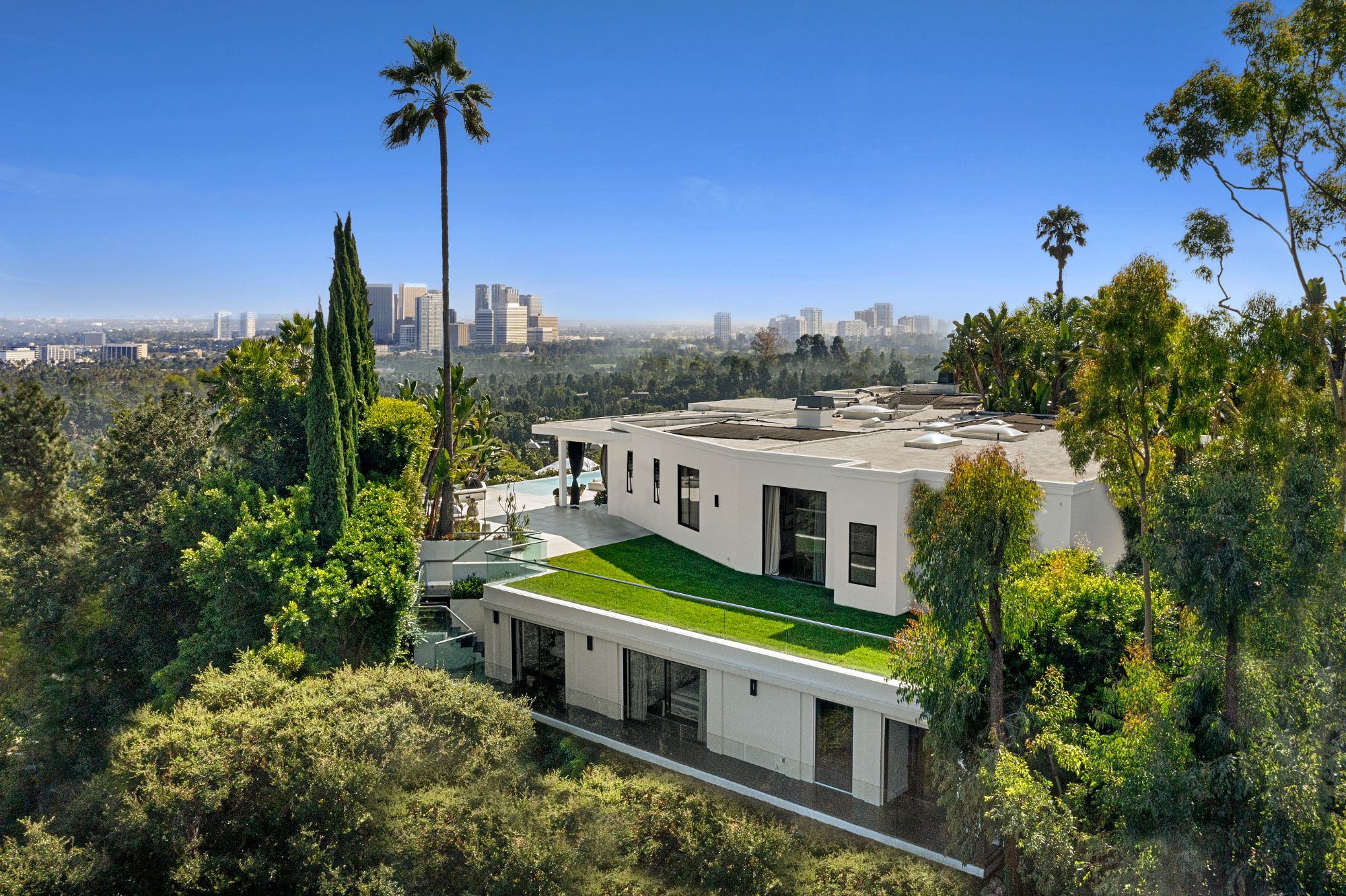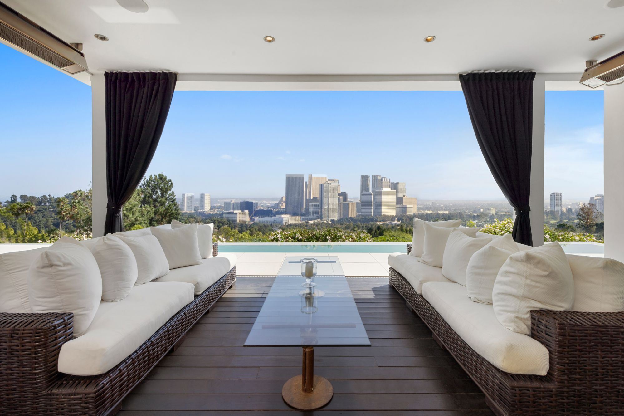 This architectural masterpiece is set upon a promontory on one of the most coveted hidden streets in Beverly Hills, Shadow Hill. One-level Ralph Lauren contemporary with seamless indoor/outdoor living and explosive views from downtown to the ocean and everything in between. Huge deck and an 80-foot swimmers infinity pool with spa that over looks the city. Oversized double-gated motor court. Walls of glass allow natural light to fill the home and frame the endless views. Stainless steel kitchen has an oversized island with seating, a mirrored fireplace, and opens to the deck for dining al fresco. Spacious primary suite with views, a spa-like bathroom, and walk-in closet. The latest and greatest amenities including home theater, office, and a guest house with separate entrance that offers 2BD, a gym, and canyon views. Outside enjoy a built-in BBQ, multiple poolside seating areas with heaters, a fire pit, and outdoor shower overlooking the canyon. Experience unparalleled luxury living in this modern estate, just minutes from the best shopping and dining Beverly Hills has to offer.