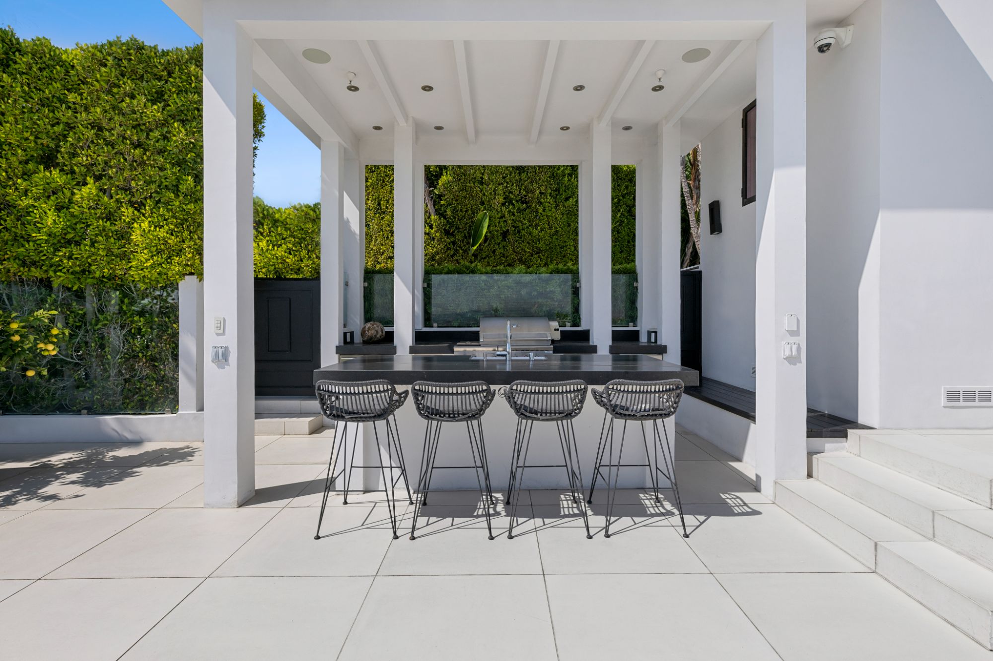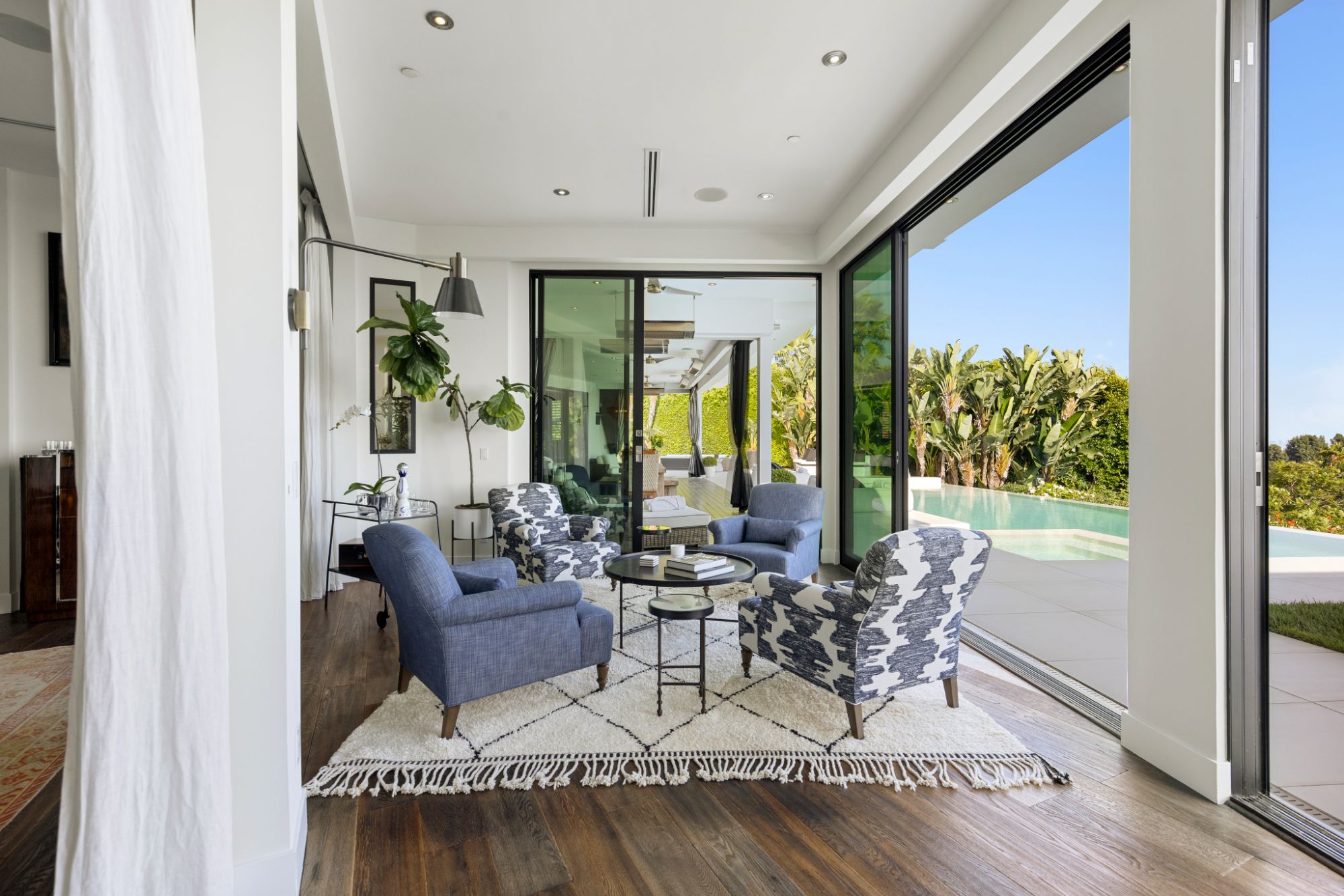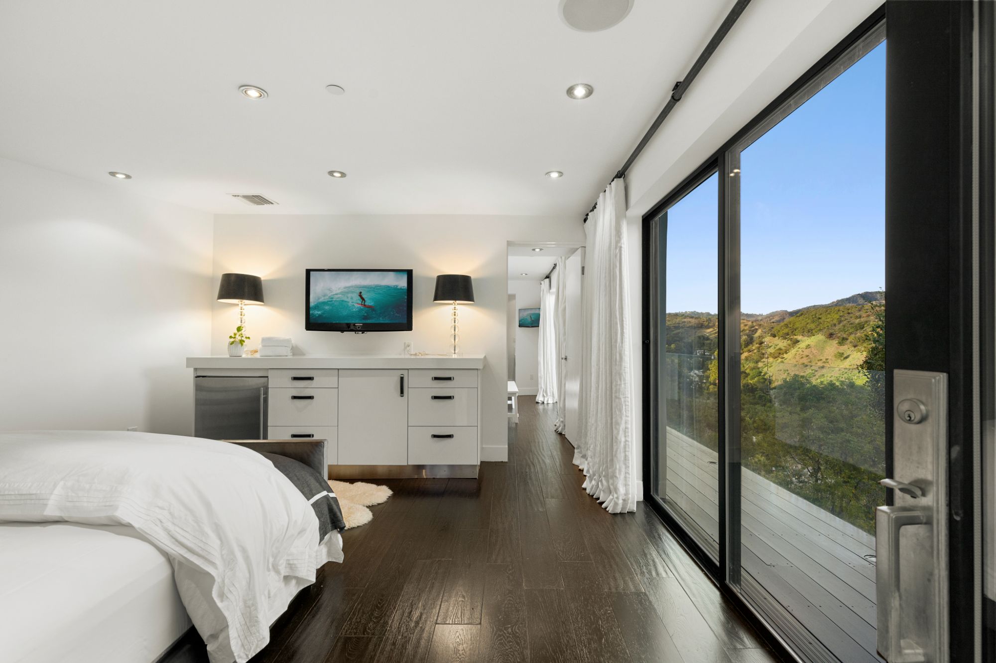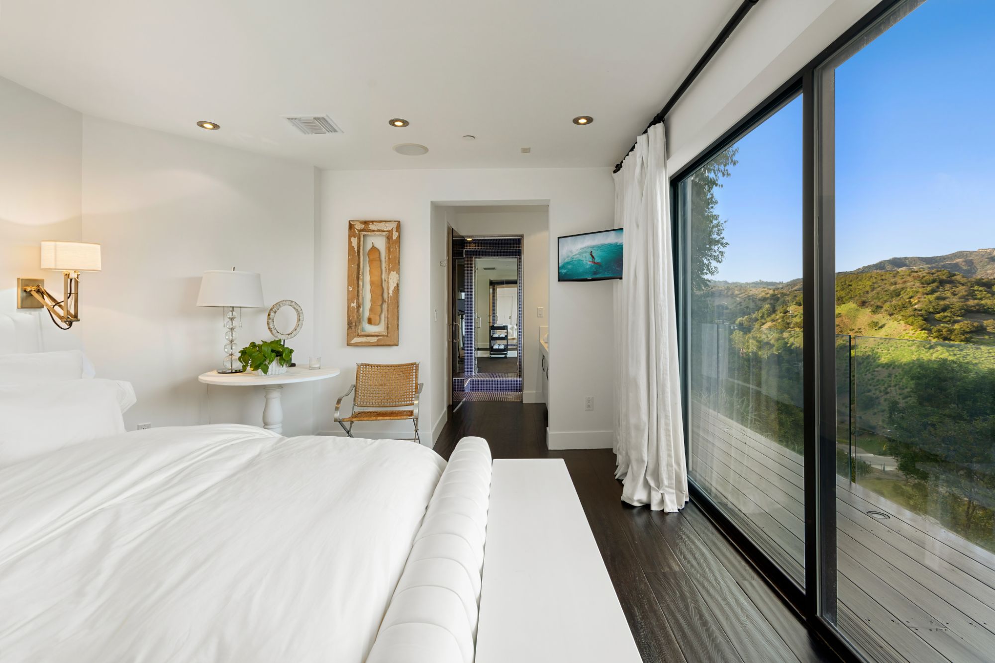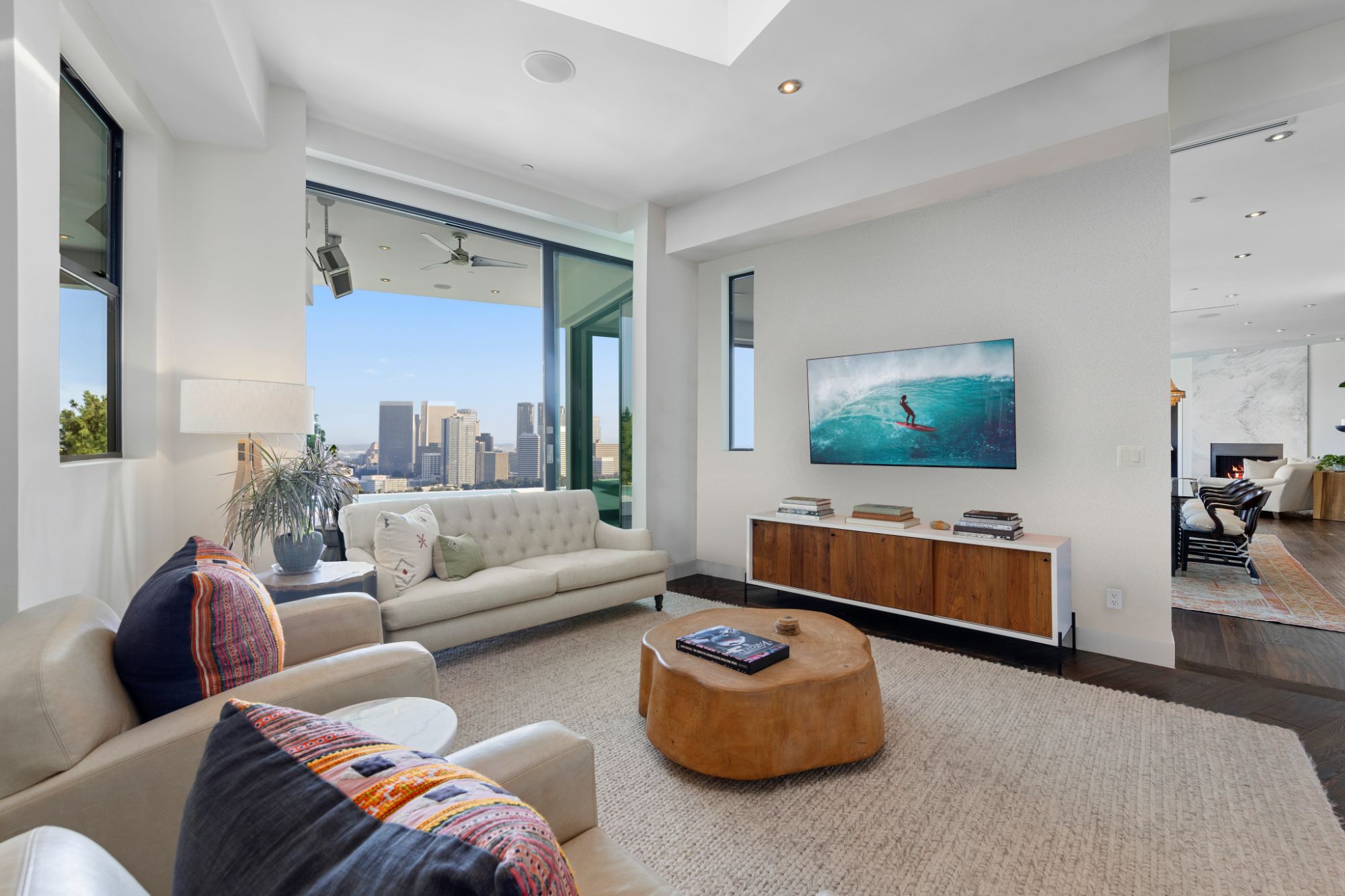 This architectural masterpiece is set upon a promontory on one of the most coveted hidden streets in Beverly Hills, Shadow Hill. One-level Ralph Lauren contemporary with seamless indoor/outdoor living and explosive views from downtown to the ocean and everything in between. Huge deck and an 80-foot swimmers infinity pool with spa that over looks the city. Oversized double-gated motor court. Walls of glass allow natural light to fill the home and frame the endless views. Stainless steel kitchen has an oversized island with seating, a mirrored fireplace, and opens to the deck for dining al fresco. Spacious primary suite with views, a spa-like bathroom, and walk-in closet. The latest and greatest amenities including home theater, office, and a guest house with separate entrance that offers 2BD, a gym, and canyon views. Outside enjoy a built-in BBQ, multiple poolside seating areas with heaters, a fire pit, and outdoor shower overlooking the canyon. Experience unparalleled luxury living in this modern estate, just minutes from the best shopping and dining Beverly Hills has to offer.