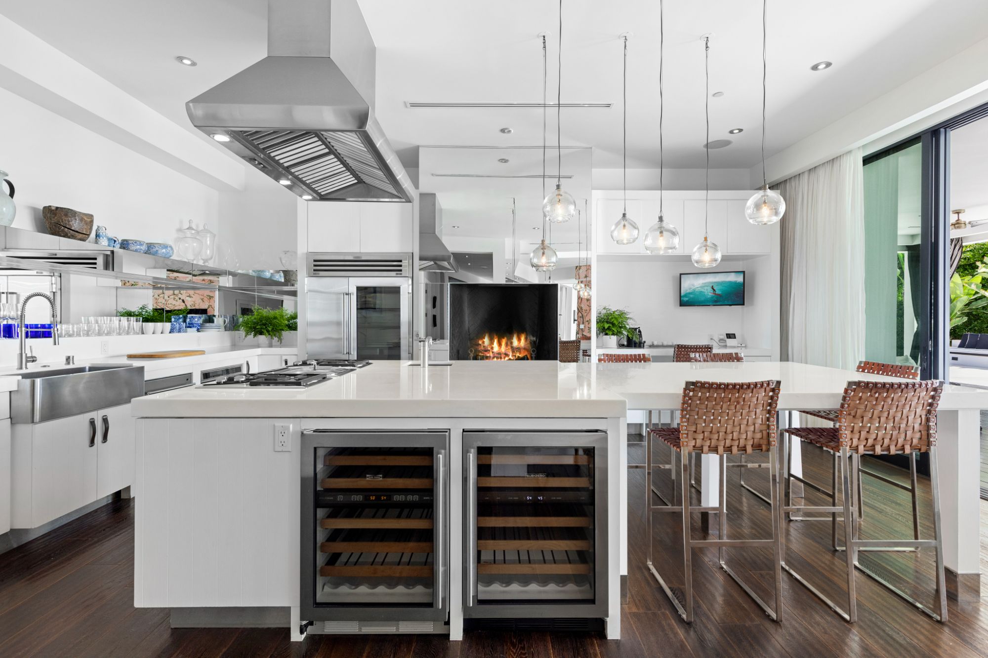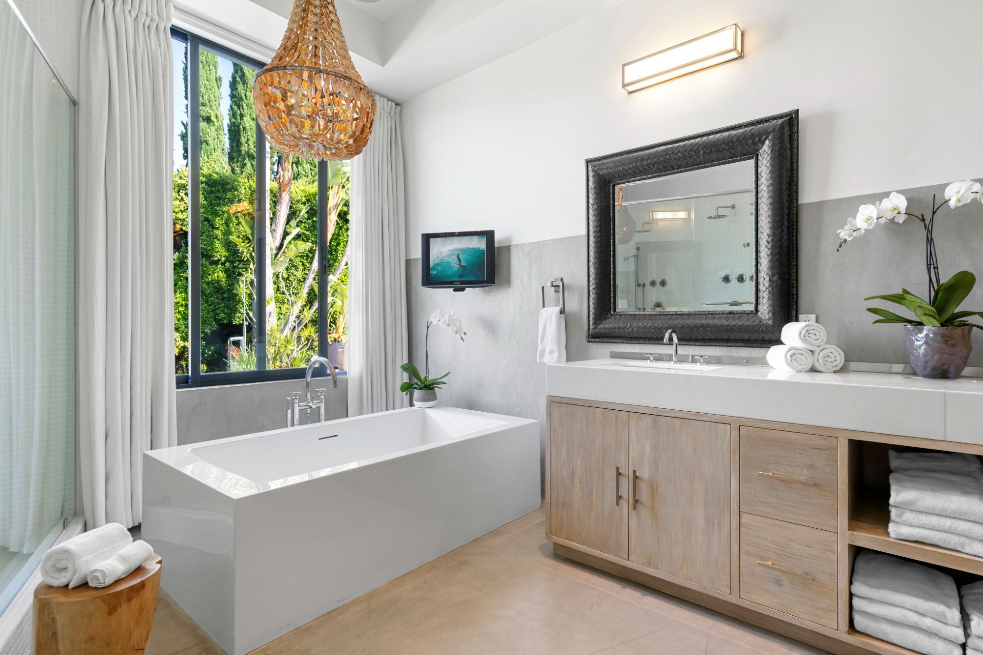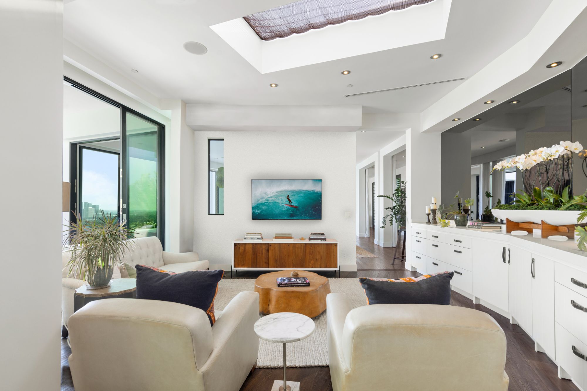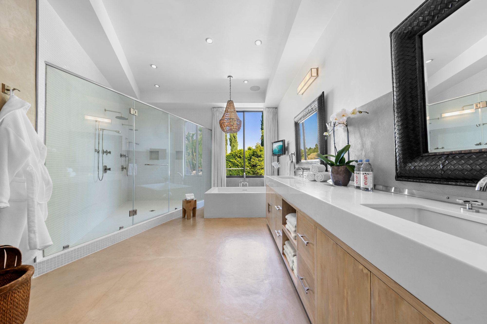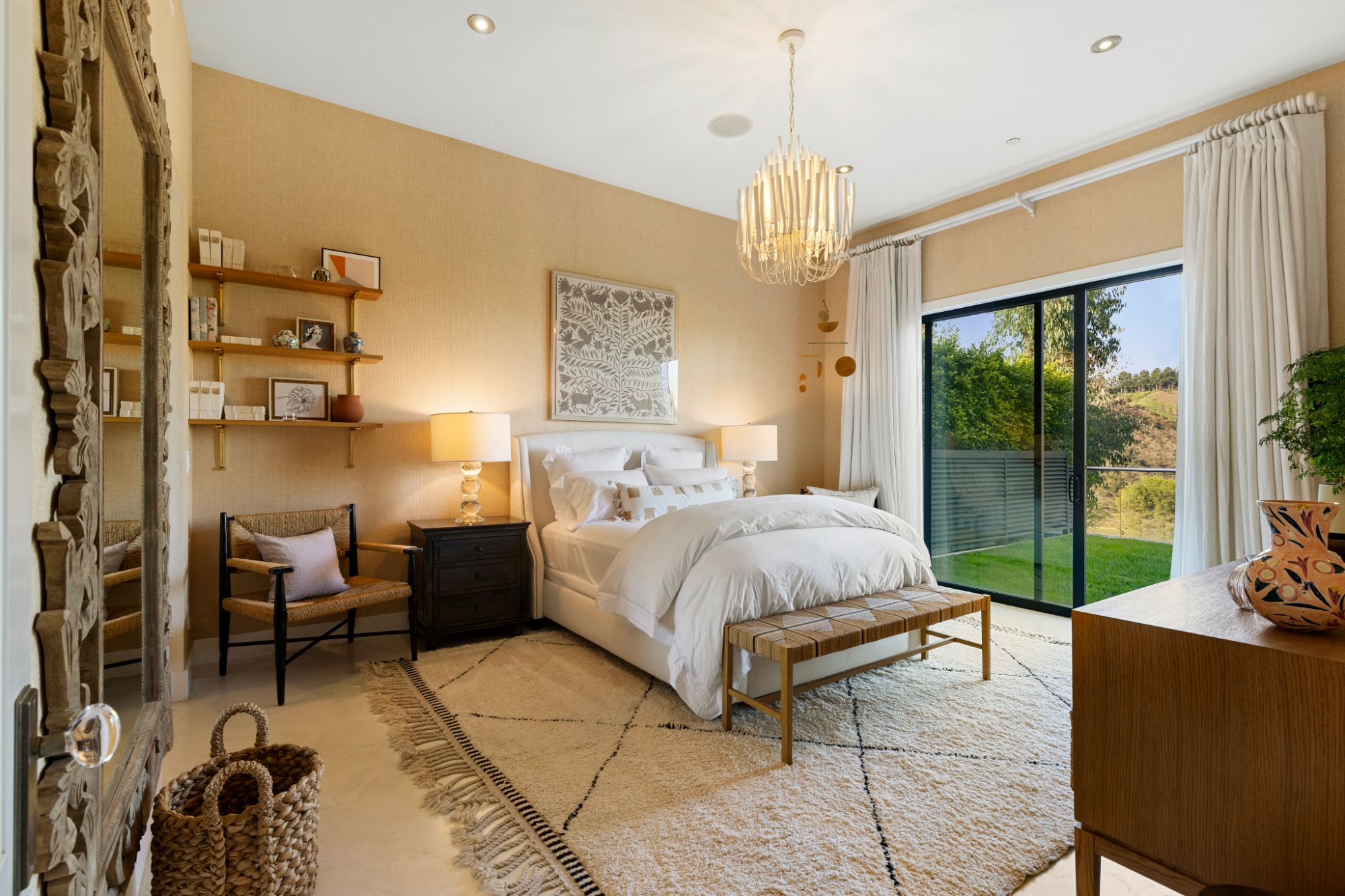 This architectural masterpiece is set upon a promontory on one of the most coveted hidden streets in Beverly Hills, Shadow Hill. One-level Ralph Lauren contemporary with seamless indoor/outdoor living and explosive views from downtown to the ocean and everything in between. Huge deck and an 80-foot swimmers infinity pool with spa that over looks the city. Oversized double-gated motor court. Walls of glass allow natural light to fill the home and frame the endless views. Stainless steel kitchen has an oversized island with seating, a mirrored fireplace, and opens to the deck for dining al fresco. Spacious primary suite with views, a spa-like bathroom, and walk-in closet. The latest and greatest amenities including home theater, office, and a guest house with separate entrance that offers 2BD, a gym, and canyon views. Outside enjoy a built-in BBQ, multiple poolside seating areas with heaters, a fire pit, and outdoor shower overlooking the canyon. Experience unparalleled luxury living in this modern estate, just minutes from the best shopping and dining Beverly Hills has to offer.