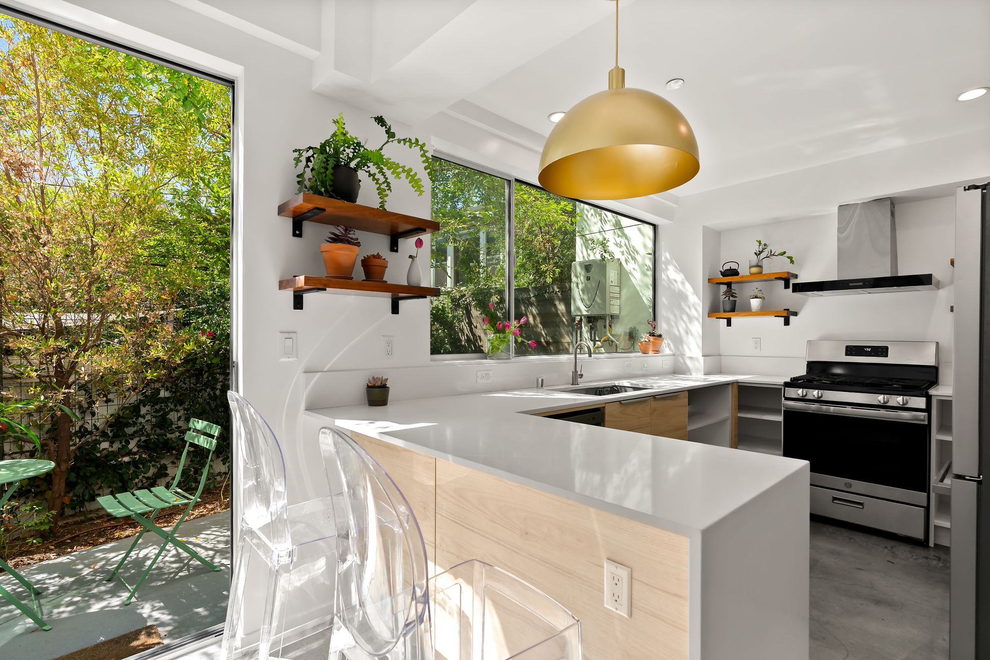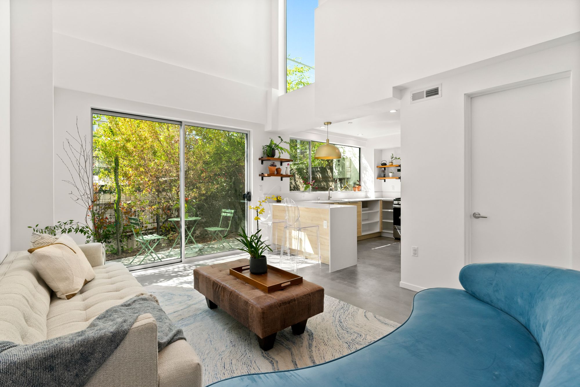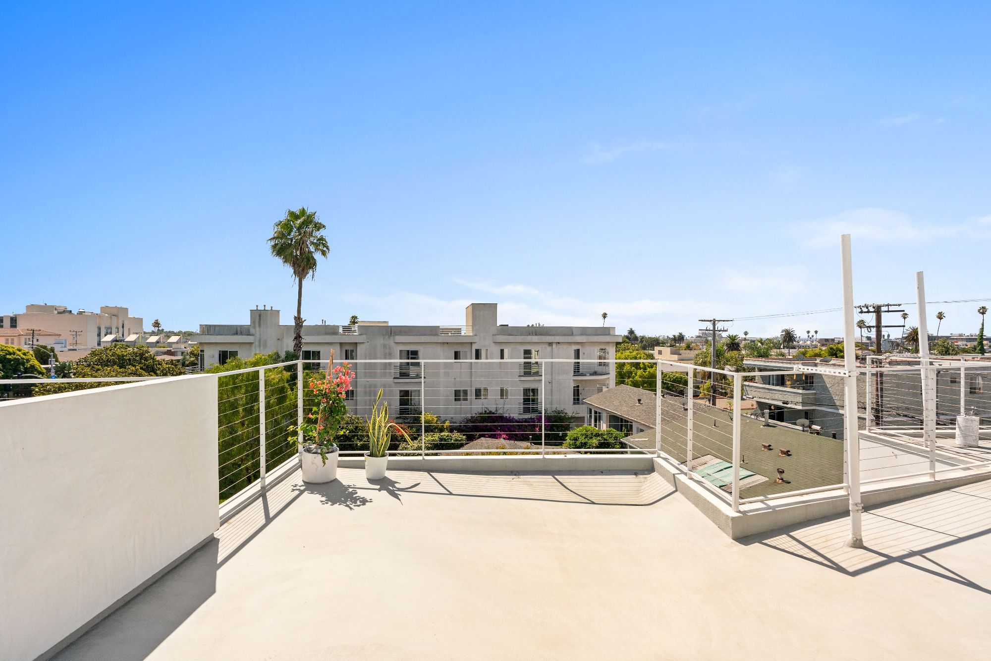 Designed by esteemed AIA architect Jennifer Wen, this striking contemporary residence welcomes you with a large, light-filled entry featuring soaring 18-foot ceilings, creating a dramatic sense of space and elegance. The home blends refined architectural details with the best of California's indoor-outdoor lifestyle. The modern chef's kitchen boasts sleek finishes and flows seamlessly to a spacious outdoor patio adorned with a bespoke gardena perfect setting for morning coffee or evening gatherings. The versatile lower-level den offers endless possibilities, whether used as a private office, media lounge, or intimate dining space. Upstairs, a stylish loft with sliding glass doors opens to a sun-swept balcony, ideal for a secondary workspace or reading nook. The home features three generously sized bedrooms and three full bathrooms, including a serene primary suite with a spa-inspired bath showcasing a double sink, soaking tub, and walk-in shower. Ascend to the expansive roof deck, where ample seating and a dining area create an unparalleled venue for sunset views and effortless entertaining. Additional highlights include two side-by-side parking spaces in a secure private garage, extra storage beneath the stairs, and thoughtful design throughout. Perfectly situated within a nearby distance to world-class shopping and dining, and moments from the renowned Santa Monica beaches, this residence offers a lifestyle of luxury, convenience, and year-round incredible weather the perfect setting to enjoy coastal living at its finest.