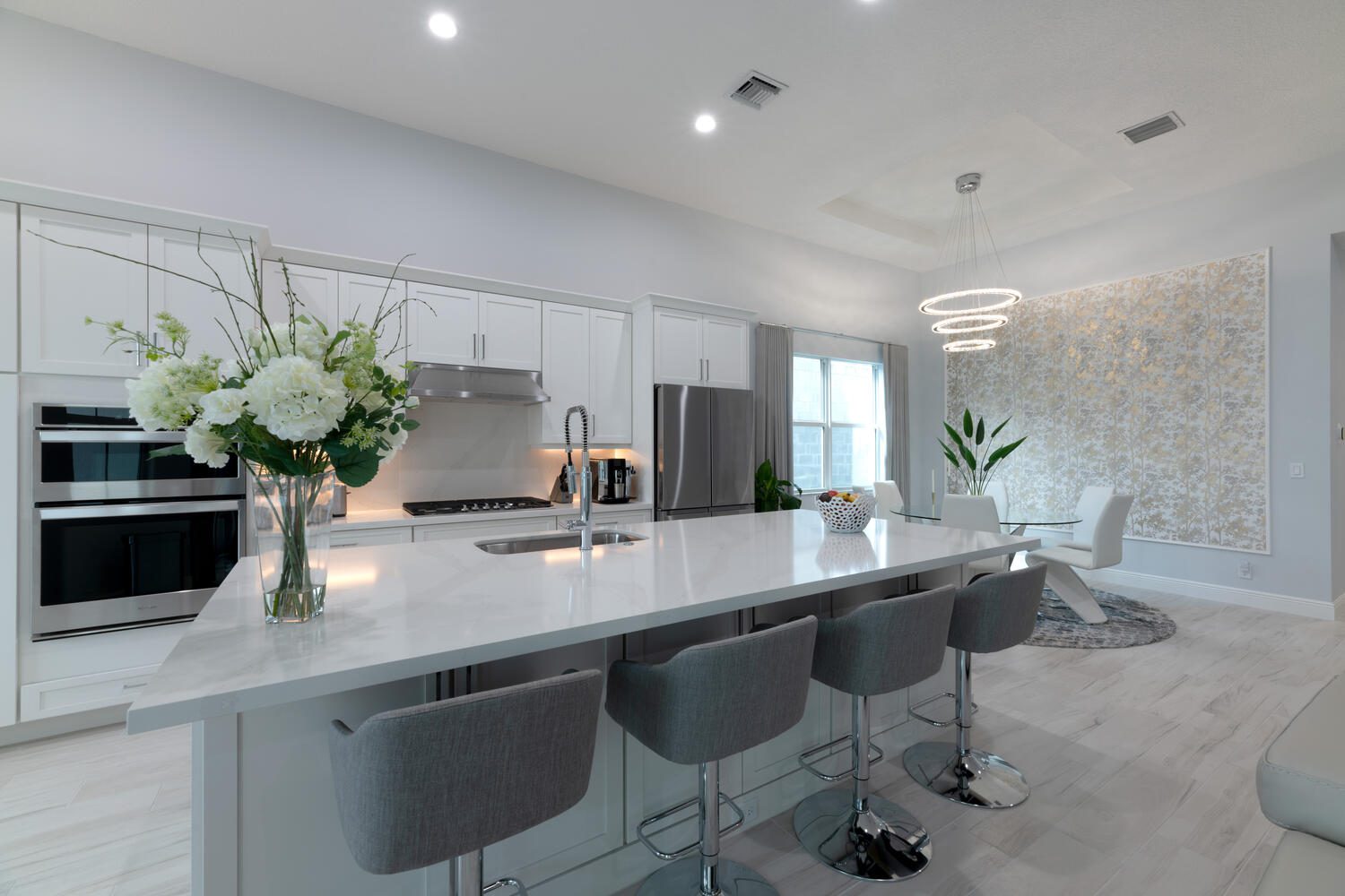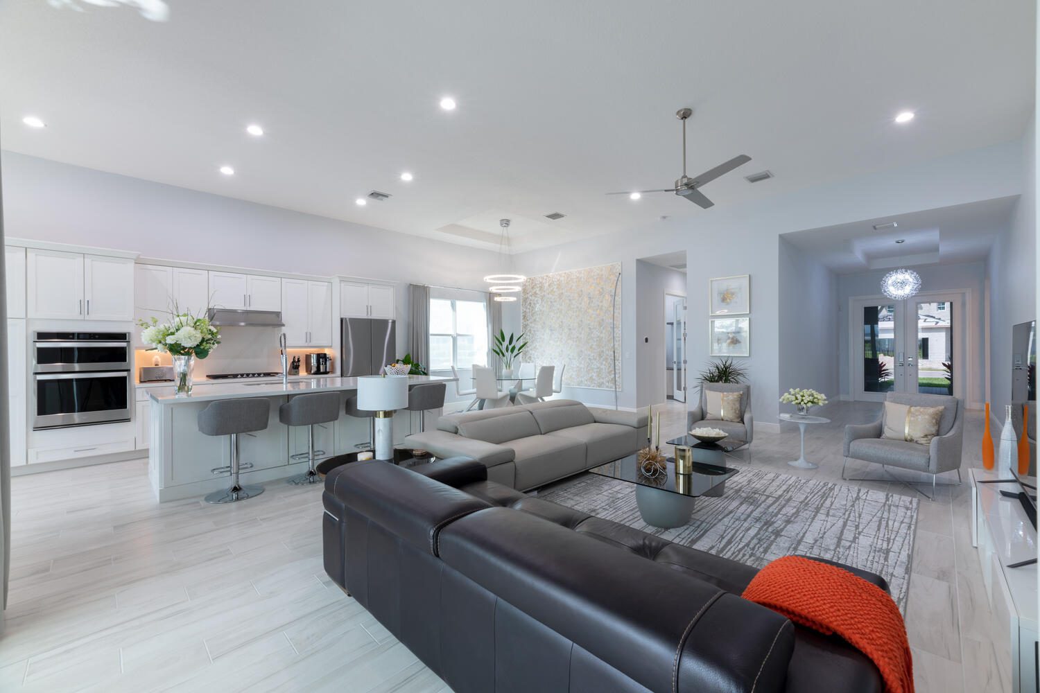 Better than new construction! Built on the best strip of lots in Windgate @ Avenir. This gorgeous home is less than a year old with all the new construction kinks worked out, plus significant custom and builder upgrades. No detail has been left untouched. As you enter the home, you will immediately notice the custom light fixtures, gorgeous kitchen with a huge center island covered with top of the line quartz and SS appliances. The living area leads to an amazing lanai and custom pool overlooking the lake. The fenced backyard has pristine landscaping and artificial turf. The Master bed and bath have every amenity you could want. All 3 bedrooms and the den/office have been upgraded with LVP flooring.