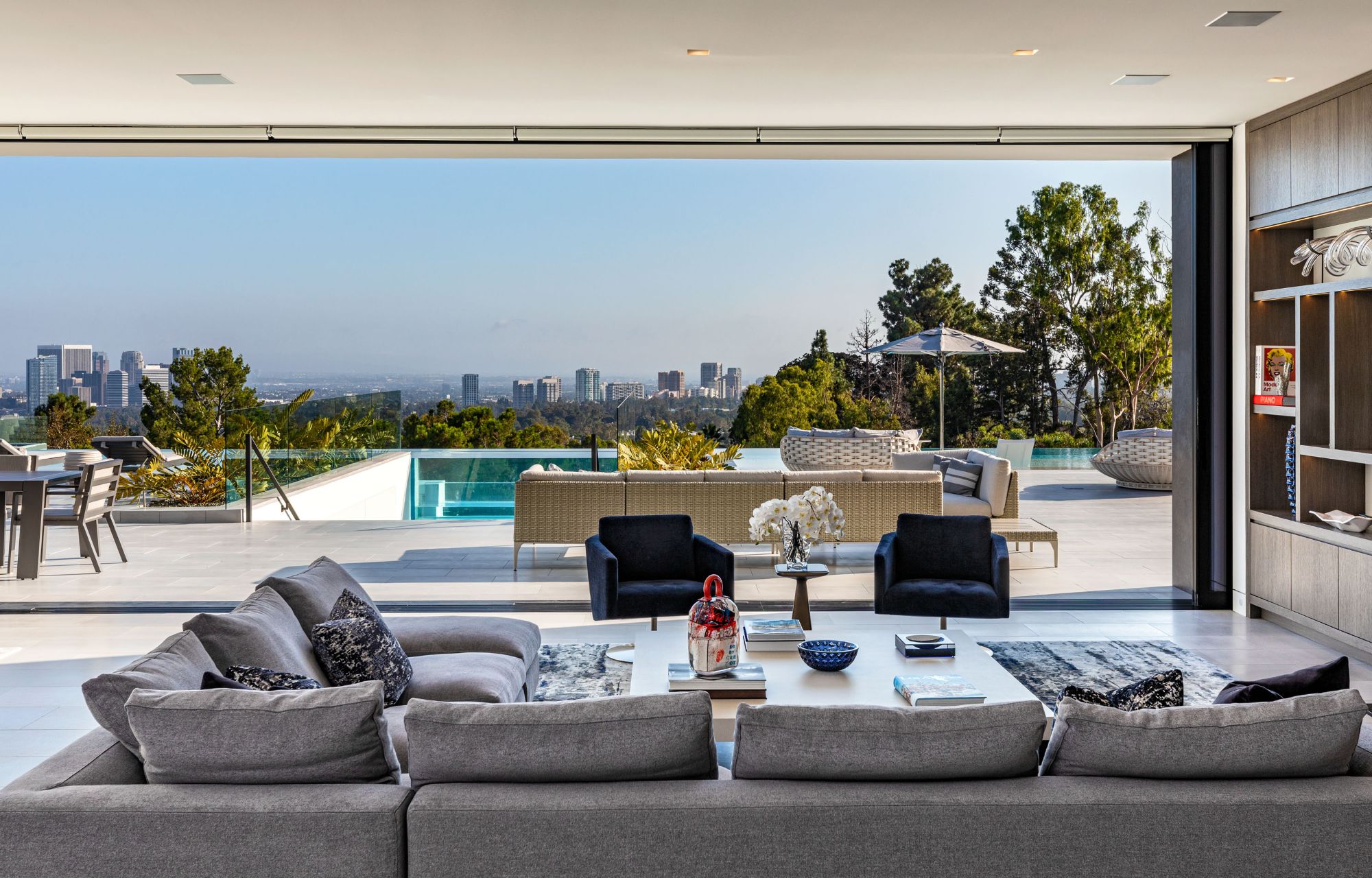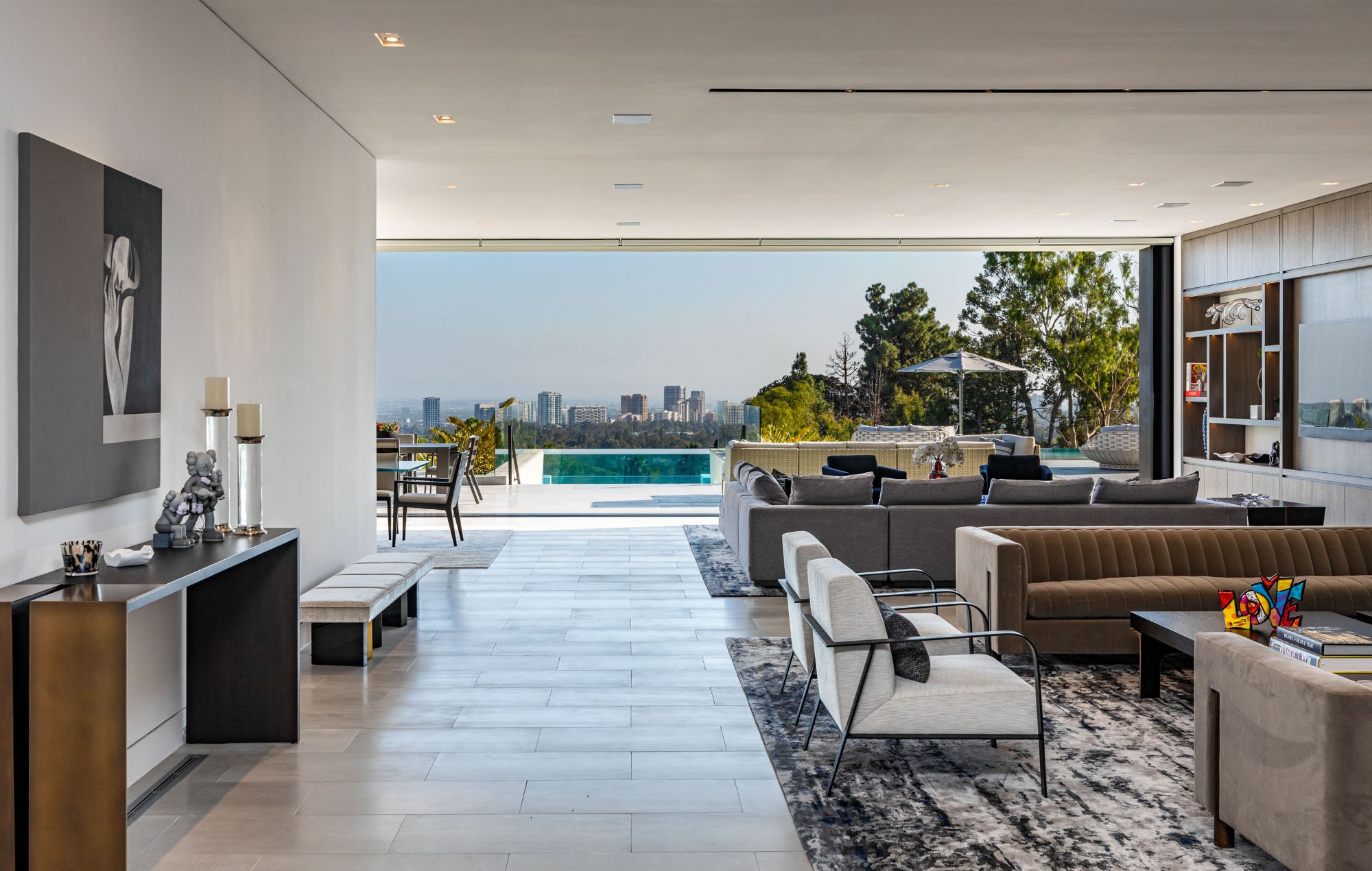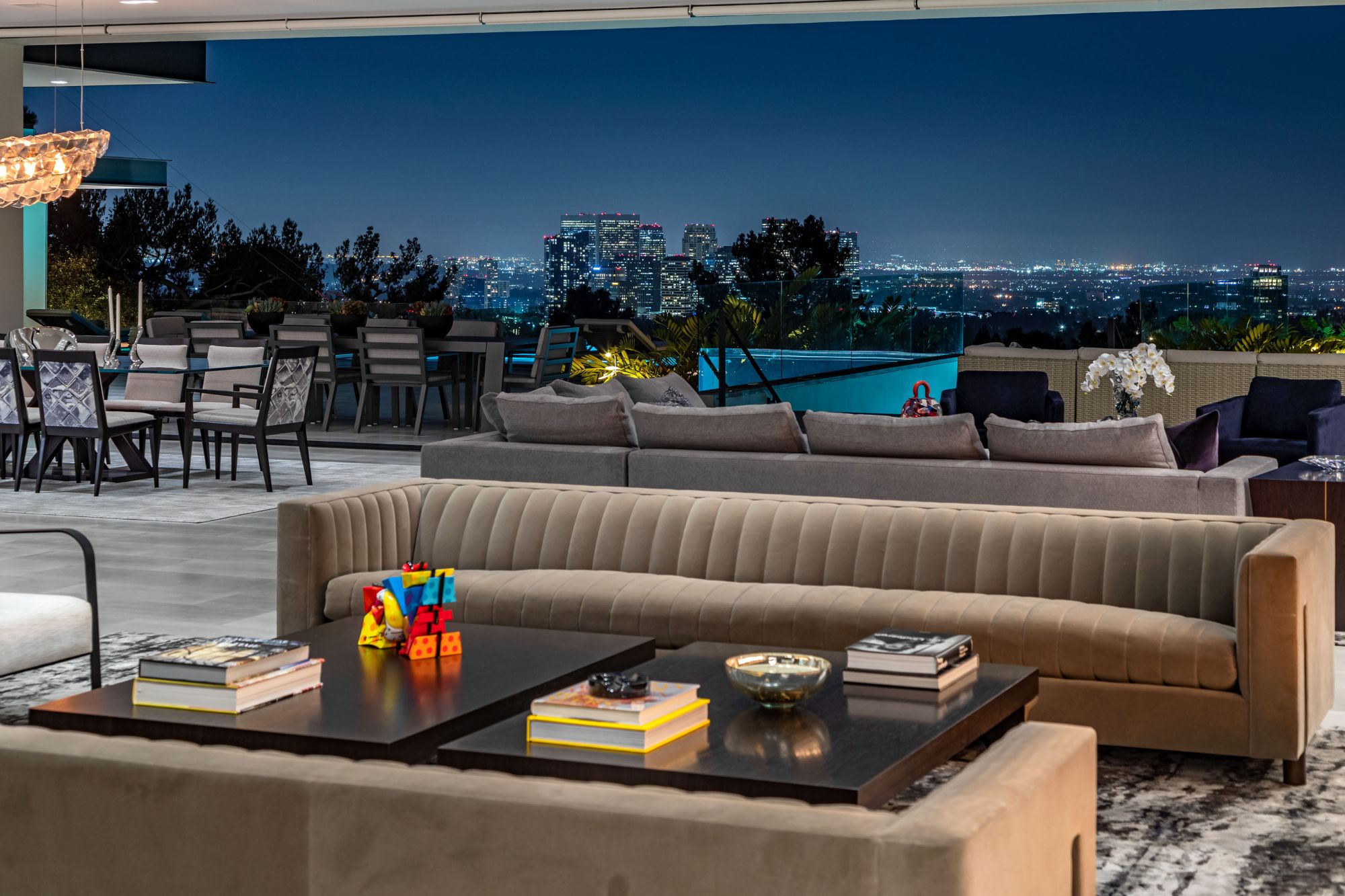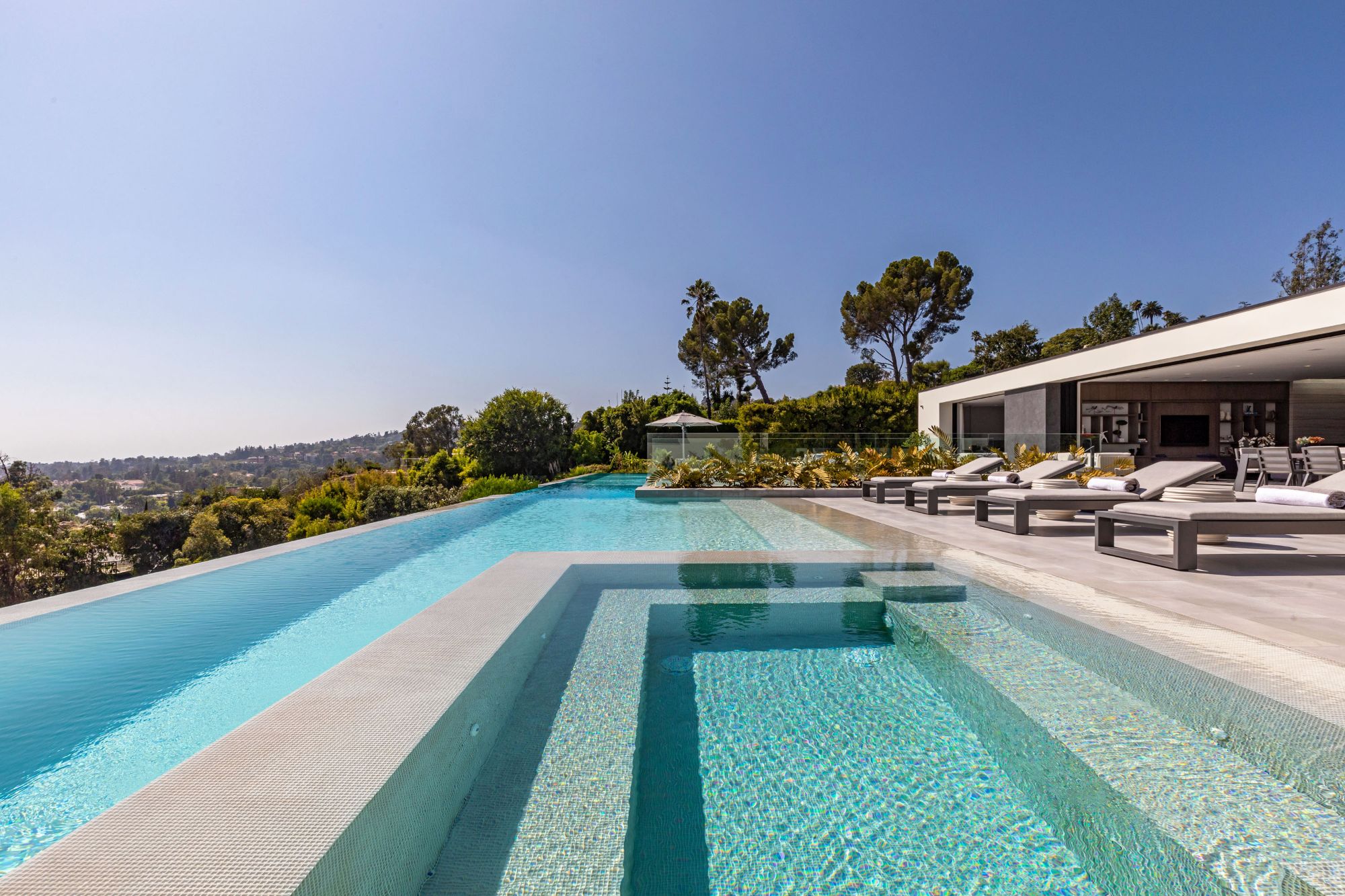 Visionary owners joined forces with acclaimed architect Paul McClean and interior designer Lynda Murray to build this one-of-a-kind estate as featured in Le Chat, Modern Luxury & Vie magazines. Brand-new construction set in Beverly Hills on over an acre of land. Notably McClean's finest work to date. Minutes from the Beverly Hills Hotel, Rodeo Dr. & world-renowned entertainment. Every facet is perfectly crafted, culmination of the rarest, most unique materials & finishes worldwide with top-of-the-line appliances & amenities. Enjoy barrier-less indoor/outdoor living & jetliner views from Century City to the Pacific Ocean. The estate includes a luxurious master suite, office, guest wing, home theater, gym, game room, BBQ, fire pit, lounge, spa & two pools connected by a never-before-seen transparent water bridge. Imbued with style & sophistication, rarely does an estate of this caliber come to market. Live the life you've always dreamed of in the most sought-after zip code in the world.
