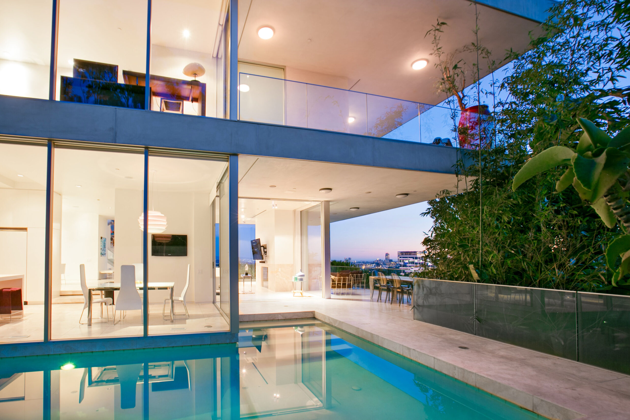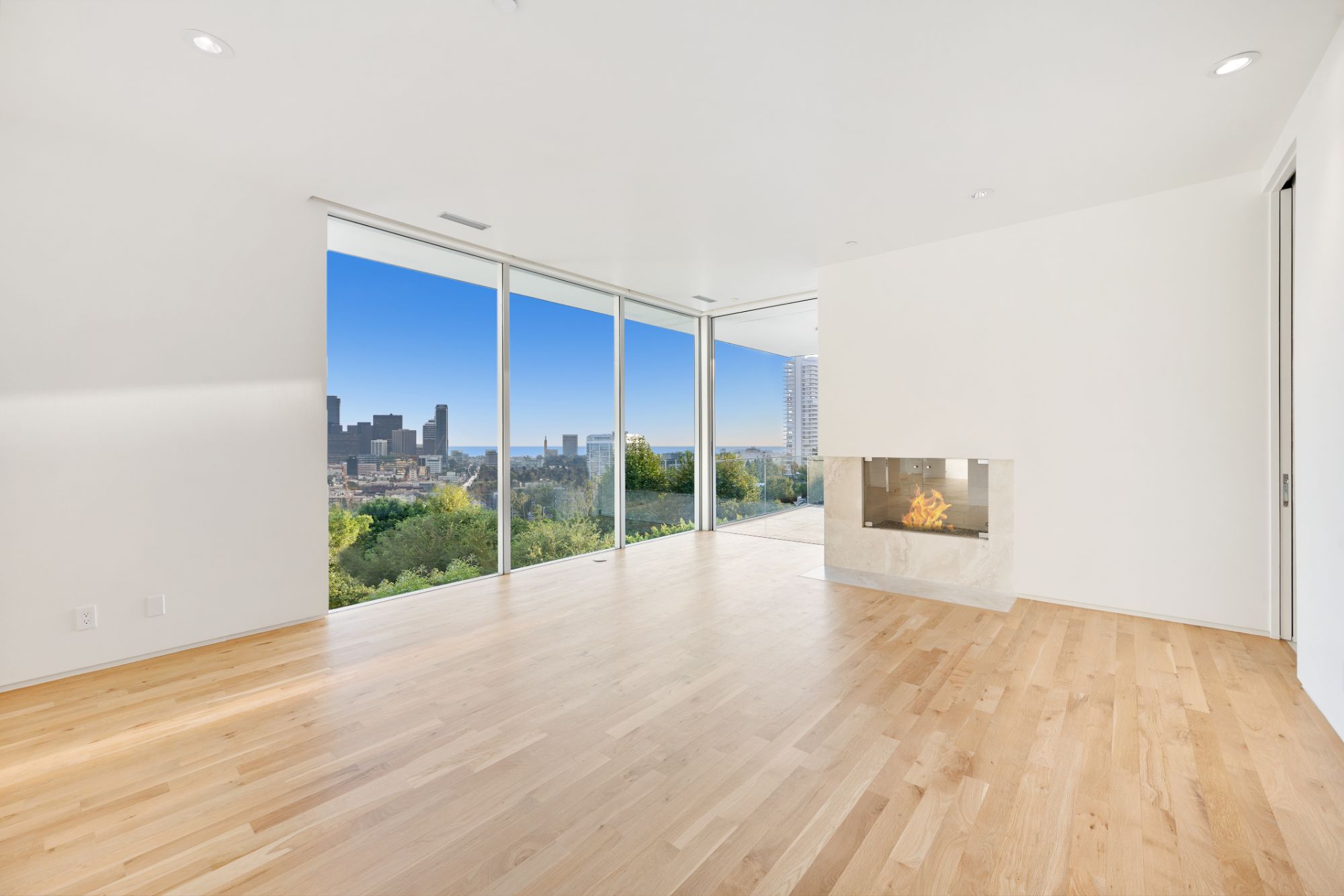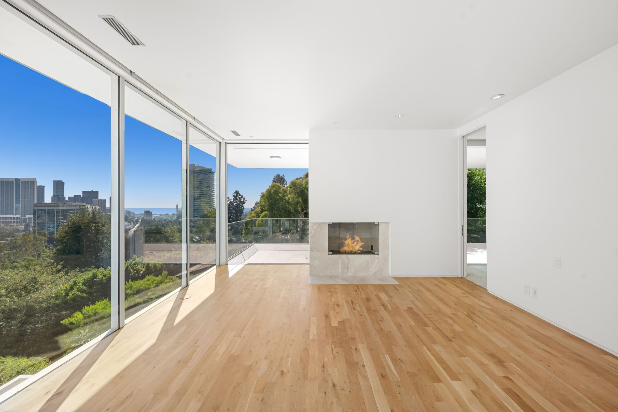 Tucked behind a private road and cul-de-sac in the Bird Streets, meet this contemporary, architectural gem offering an unparalleled blend of modern elegance with one-of-a-kind views of Century City and the Ocean! A dramatic 18- foot ceiling, two-story entrance gallery and open floor plan creates a seamless flow accented by walls of glass extending to the terraces, allowing for complete indoor/outdoor living. Meticulous design with natural features including open dining, living room, fireplace with organic modern floors flowing from inside out to sleek pool area and expansive wrap around terraces highlighting the sweeping city views. This three-bedroom, four-bath, 3848 square-foot oasis is flooded with natural light and designed for entertaining. The seamless modern flow includes calming pool water seen through glass walls, rippling up to the breakfast area, steps from the pool and spa.