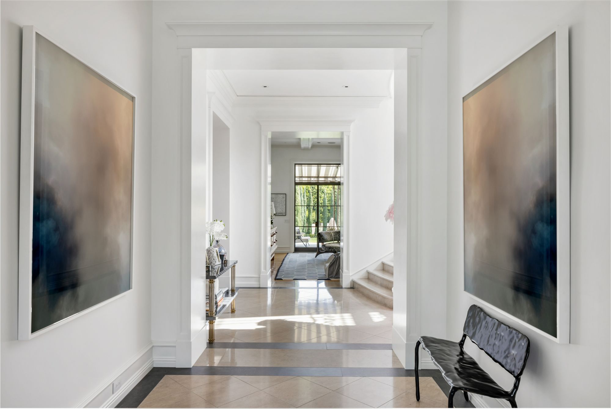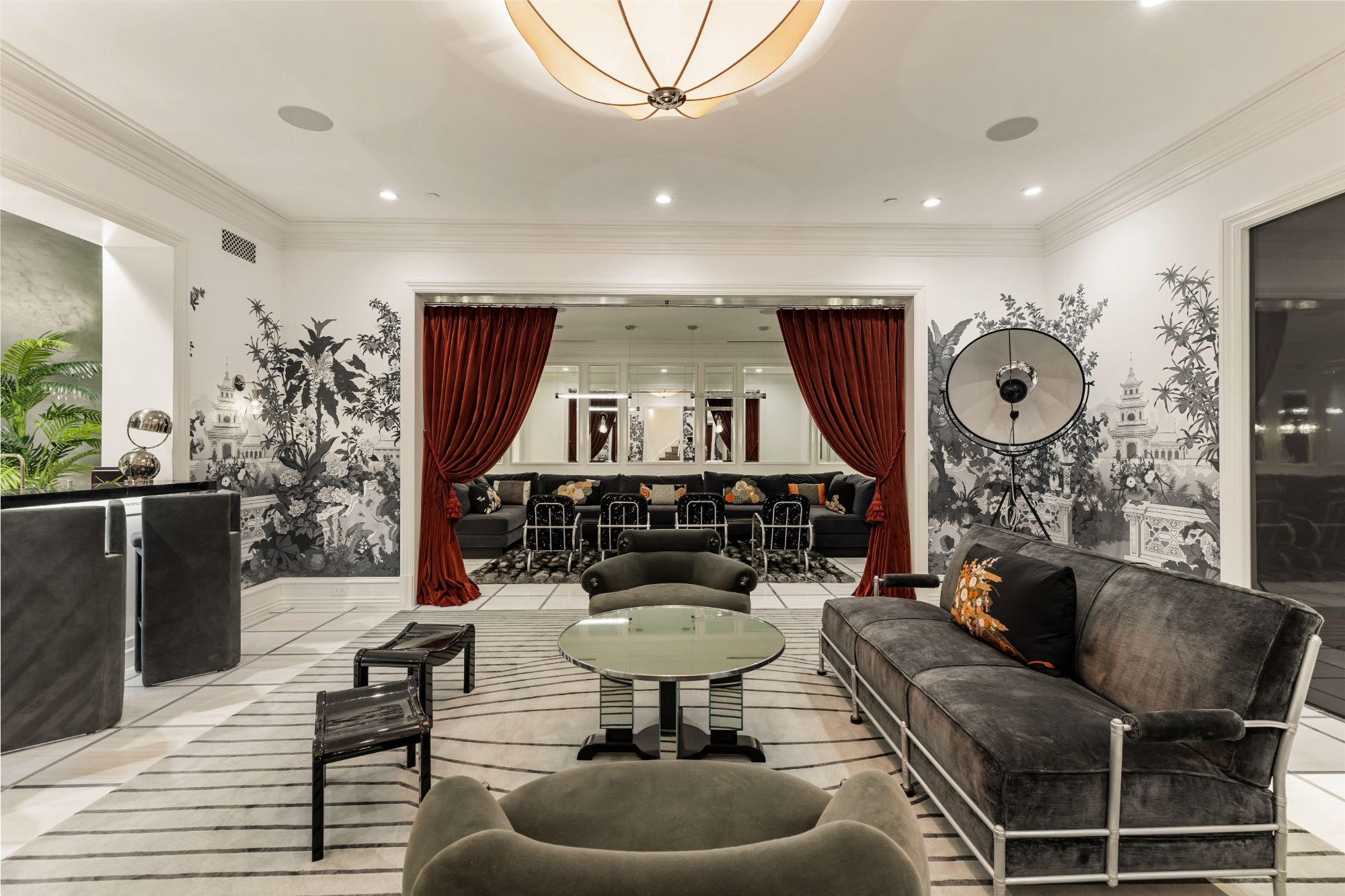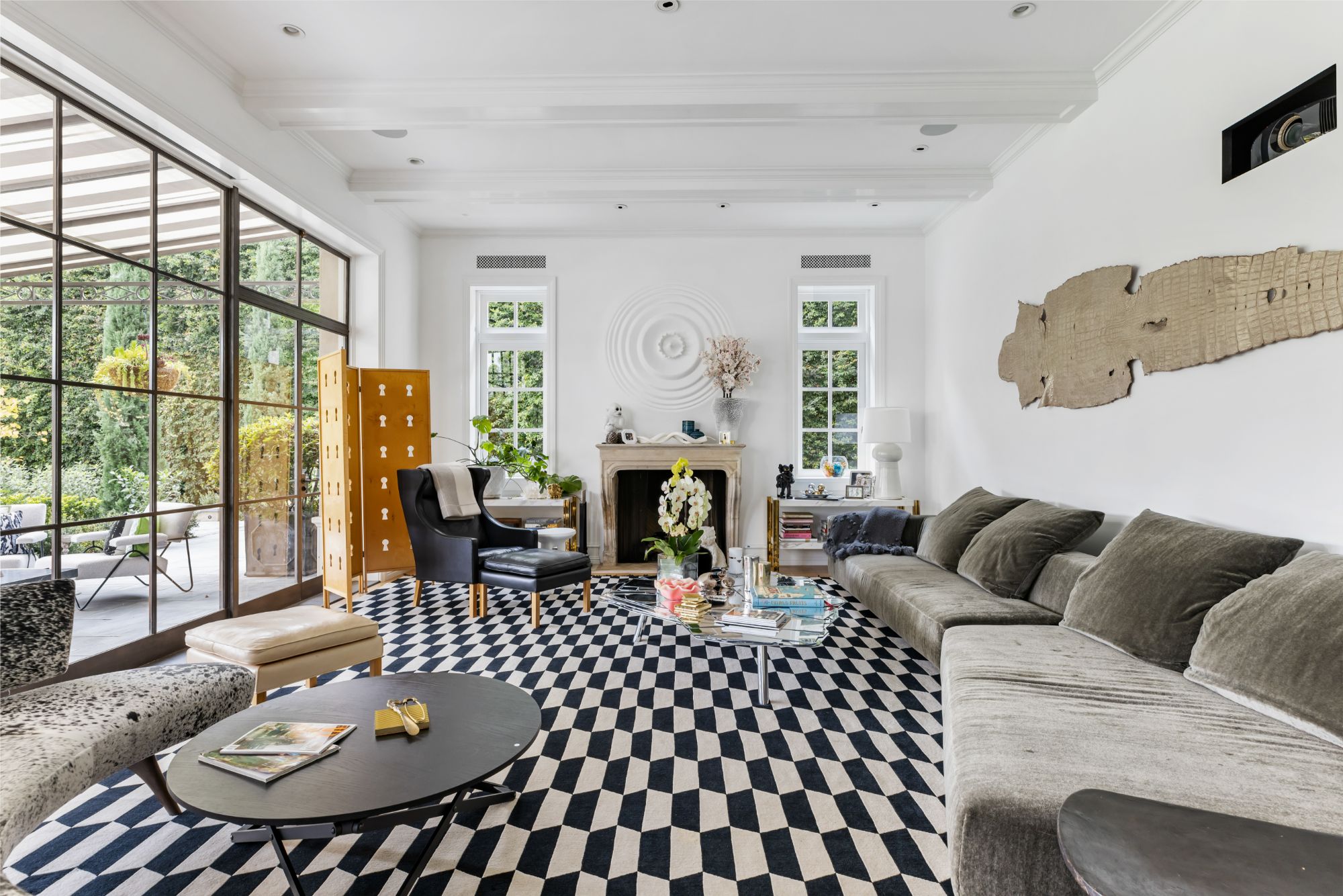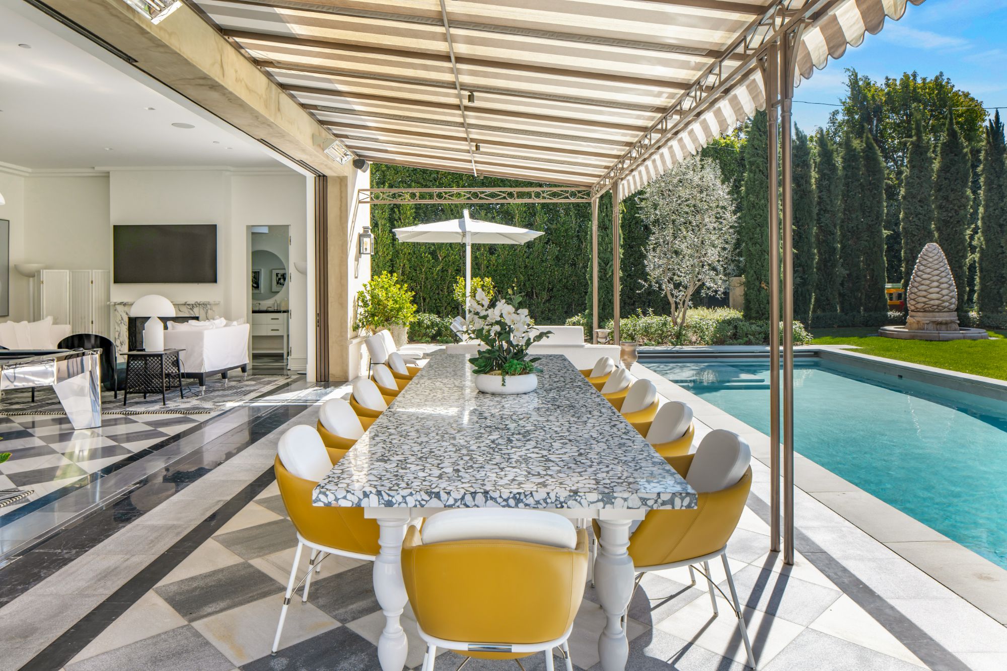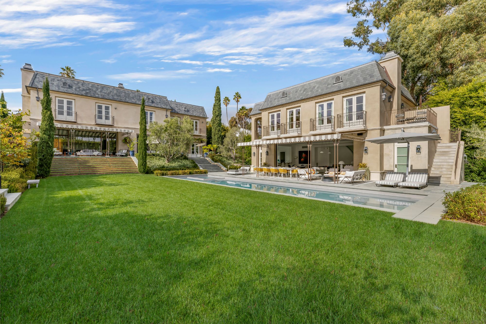 Nestled in the heart of Brentwood Park, Bristol Chateau is a breathtaking residence by the acclaimed Studio William Hefner, a vision of French chateau-inspired grandeur seamlessly infused with modern sophistication. Featured in Architectural Digest (November 2021), this gated retreat whisks you away to a world of bespoke craftsmanship and refined sophistication where every detail has been meticulously designed to create an atmosphere of serene beauty and elegant living. This residence is defined by craftsmanship and beauty from the moment you step inside, exquisite custom flooring, intricate stonework, and hand-selected marble speak to the masterful design that defines this manor. The main property unfolds across two expansive levels, where soaring ceilings, rich textures, and floor-to-ceiling French doors bathe each space in natural light. On the upper level, the magnificent primary suite is a private sanctuary boasting his-and-hers marble-clad baths, dual walk-in closets, a cozy sitting room, a fireplace, and a private den. Three additional spacious bedrooms provide an elegant retreat, each crafted with attention to refined comfort. The main level is a showcase of architectural brilliance, where the lacquered library, stately formal dining room, and a built-in office overlook the lush, verdant grounds. At the heart of the home, a chef's dream kitchen appointed with La Cornue appliances flows effortlessly into the inviting family room, leading out to a sun-drenched upper terrace. Step outside and experience a sanctuary of natural beauty, where impeccably landscaped gardens, an opulent resort-style pool and spa, and a charming bocce ball court create a setting of harmonious elegance. The estate is designed for seamless indoor-outdoor living, offering multiple terraces and romantic garden paths that shift with the seasons. Beyond the main residence, a newly constructed three-story guest house, also designed by Hefner, features a full gym and is an entertainer's paradise. A full kitchen makes hosting effortless, leading out to the expansive backyard designed for grand celebrations. A secret pocket door leads to a hidden speakeasy, where a full bar, state-of-the-art theater, and private wine cellar create unforgettable moments for family and guests. The upper-level features two full en-suite bedrooms, each with its own private balcony, one currently transformed into a sophisticated office space. Gated and setback for ultimate privacy, Bristol Chateau is a world apart from the ordinary, offering a European-inspired haven just minutes from Brentwood's finest shopping, dining, and top-rated schools. Strolling through this enchanting enclave, one feels embraced by its timeless charm where time slows, grandeur reigns, and every moment is imbued with refined beauty. This is more than a home--it's an experience of artistry, craftsmanship, and sophisticated living at its finest.