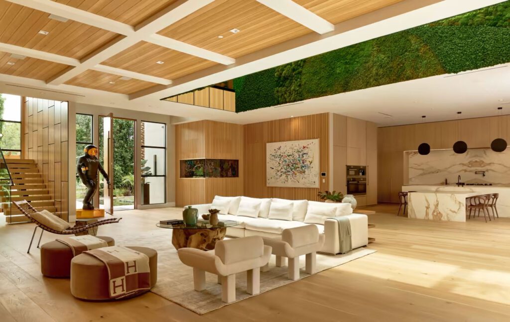 Sited on the prestigious Chalon Rd in one of Brentwood's most coveted enclaves, discover Allure, crafted by world-class developer and designer Ramtin Ray Nosrati. Set on over 1.3 acres behind private gates and flourishing California flora, this timeless estate commands mesmerizing city and canyon views and offers every imaginable amenity. Upon entry, uncover an interior palette both elegant and elevated, complemented by a lush wall of greenery manifesting the ultimate sanctuary for exceptional living. Artfully framed by soaring ceilings and automatic Fleetwood doors, the inviting family room welcomes an abundance of natural light and effortlessly flows to the gourmet chef's kitchen. The culinary space highlights bookmatched stone slabs, a triple waterfall island, and state-of-the-art Miele appliances. The bar and wine room offer an ideal setting for memorable gatherings, while the theater delivers a truly immersive cinematic experience. Upstairs find the opulent primary wing emulating a 5-star hotel suite, encompassing 3,000 square feet and showcasing a lounge, contemporary two-sided fireplace, luxurious spa-inspired bathroom with imported European stone, and dual walk-in closets. Your resort-like outdoor oasis presents a rare and intimate environment where nature's allure seamlessly aligns with architectural splendor. The expansive outdoor grounds enveloped by verdant greenery feature a pickleball court, a Michael Jordan-inspired basketball/sports court, a putting green, a cabana, a pool, a spa, a fully-equipped outdoor kitchen and bar, and a 16-person sunken fire pit. An entertainer's paradise, the 3,000-square-foot rooftop deck provides captivating views and an exceptional space to host unforgettable gatherings. No detail has been spared with additional amenities including an office, gym, sauna, mudroom, ten-car motor court, and complete Control4 home automation tailored for the most discerning admirers. Mandeville Canyon is renowned for its tranquil atmosphere and exclusivity, drawing those who desire privacy without compromising on city conveniences. Allure presents a rare opportunity to enjoy endless city offerings while relishing in the luxury you deserve.