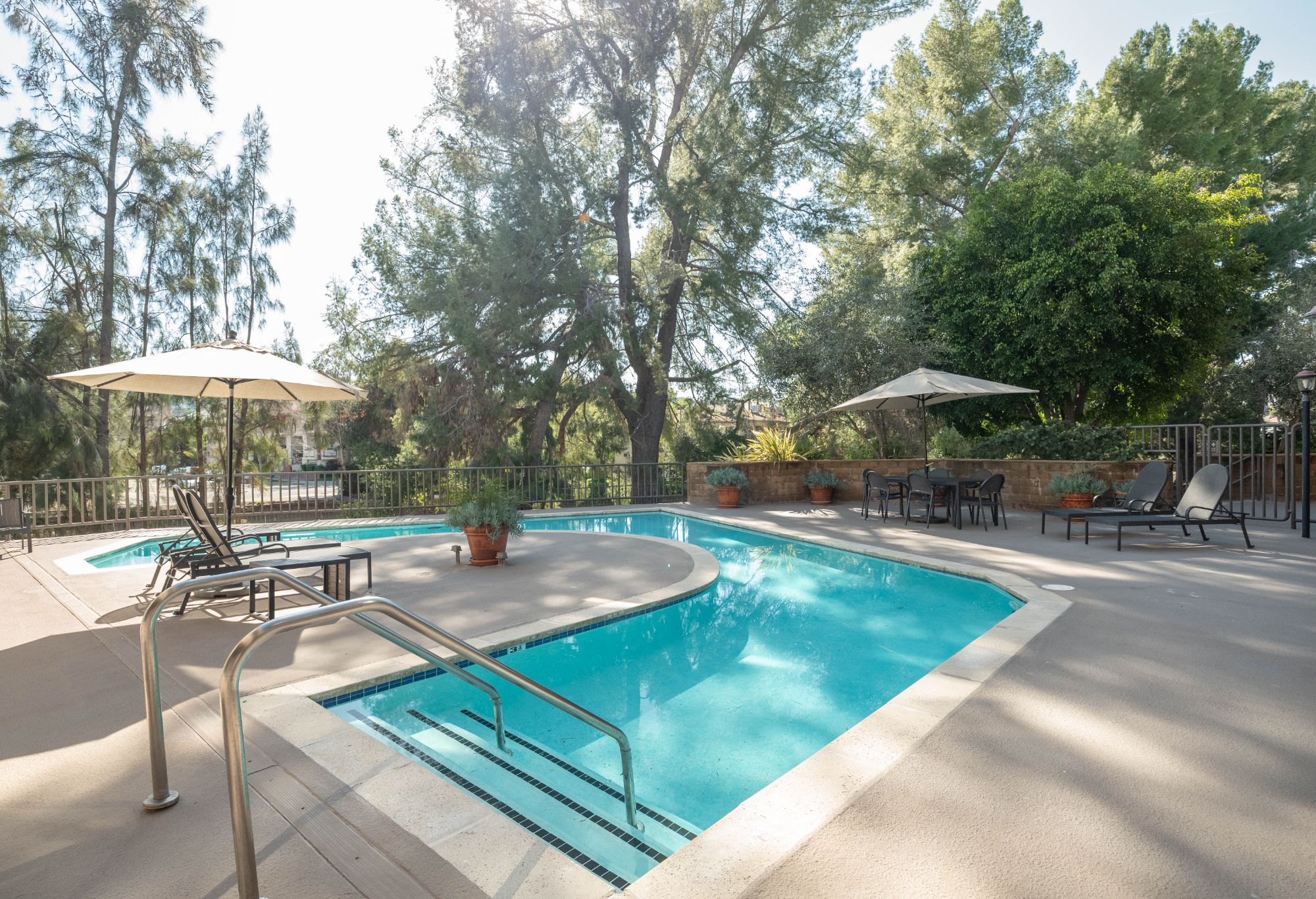 Nestled in the heart of Sherman Oaks, this beautiful two-bedroom, two-bathroom condo is situated within the coveted Sherman Village community. Bathed in natural light, the unit boasts contemporary flooring, sleek recessed lighting, and a decorative fireplace. The thoughtfully designed floor plan includes a large living room, dining room, eat-in kitchen, and features in-unit side-by-side washer/dryer. A generous double patio spans the length of the unit perfect for indoor/outdoor living. The primary suite is a tranquil retreat, featuring a spacious walk-in closet and en-suite bathroom. The unit also includes two dedicated parking spaces in the gated garage with generous guest parking. Situated in proximity to top-rated schools and trendy Ventura Boulevard, this condo is ideally positioned for both tranquility and city living. The building itself offers an array of amenities including two pools, a fitness room, a recreation room, and a sauna. HOA fees includes internet, basic cable from DirectTV, a dry sauna, gym access, a recreation room, trash services, and meticulous building maintenance.