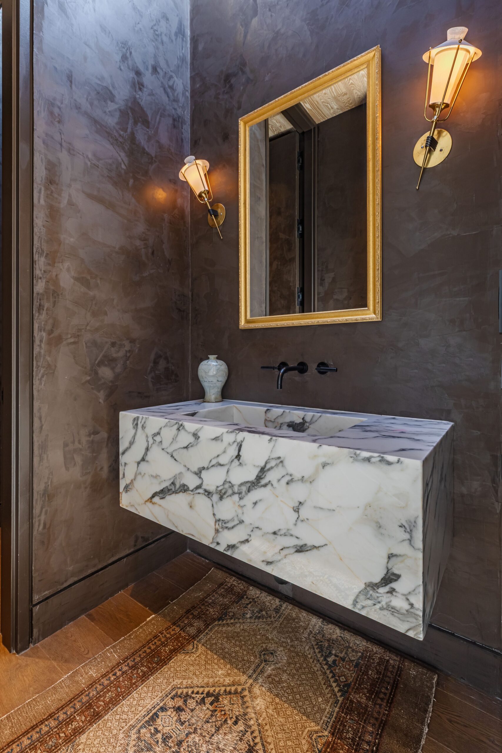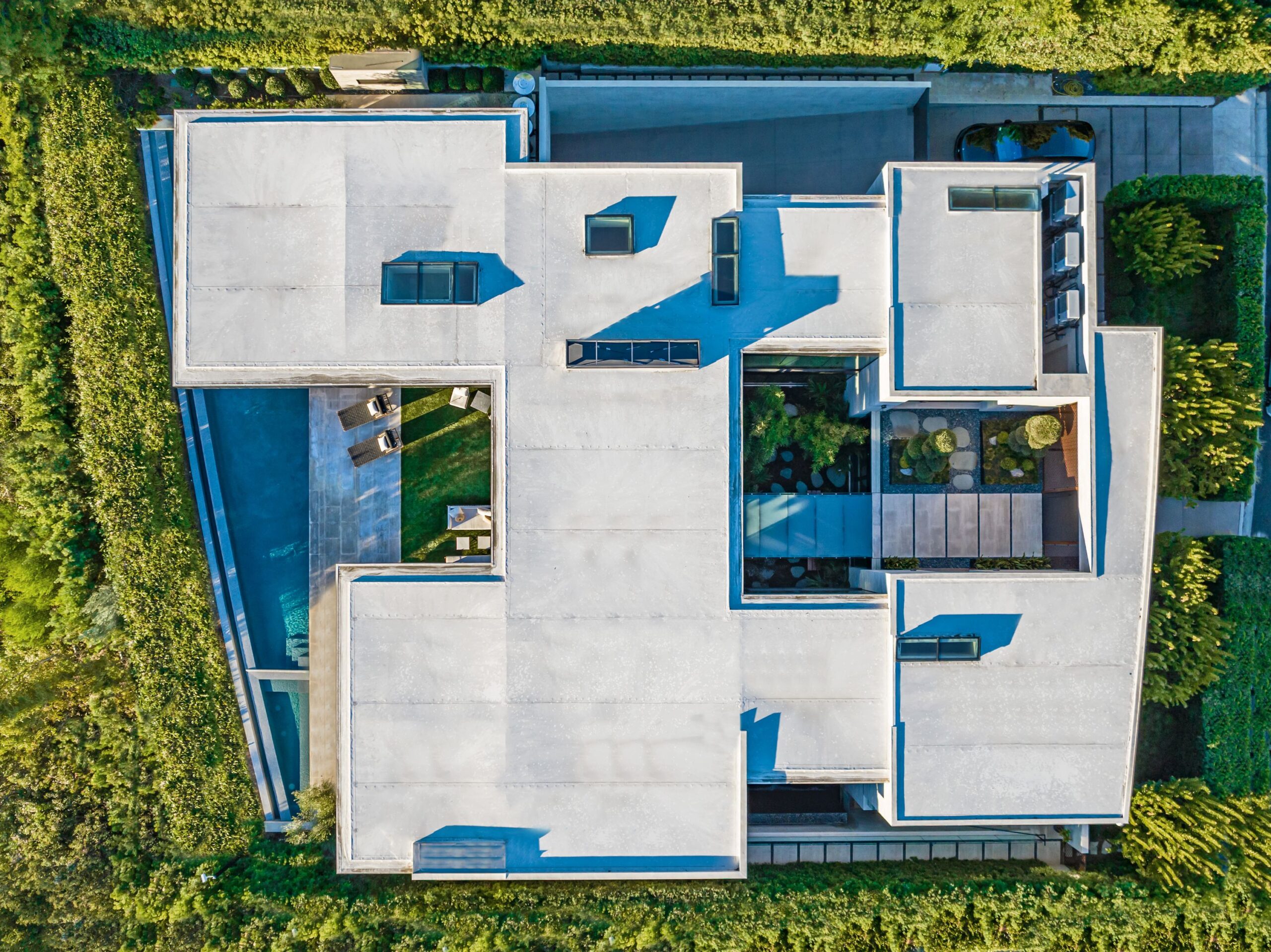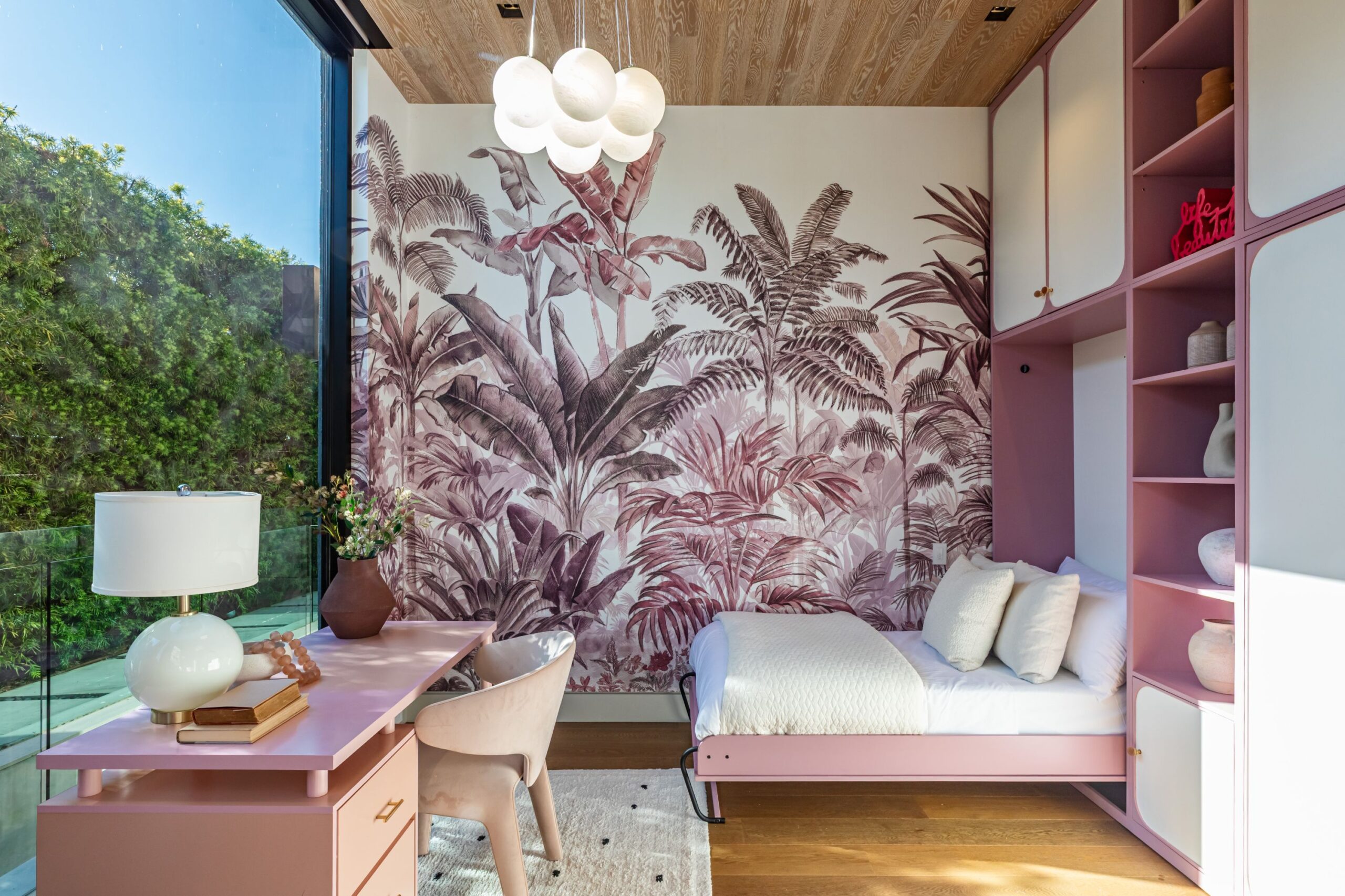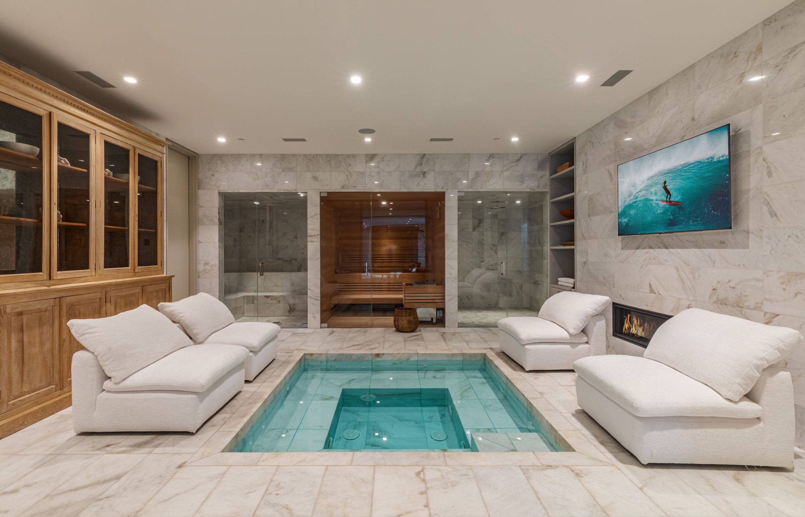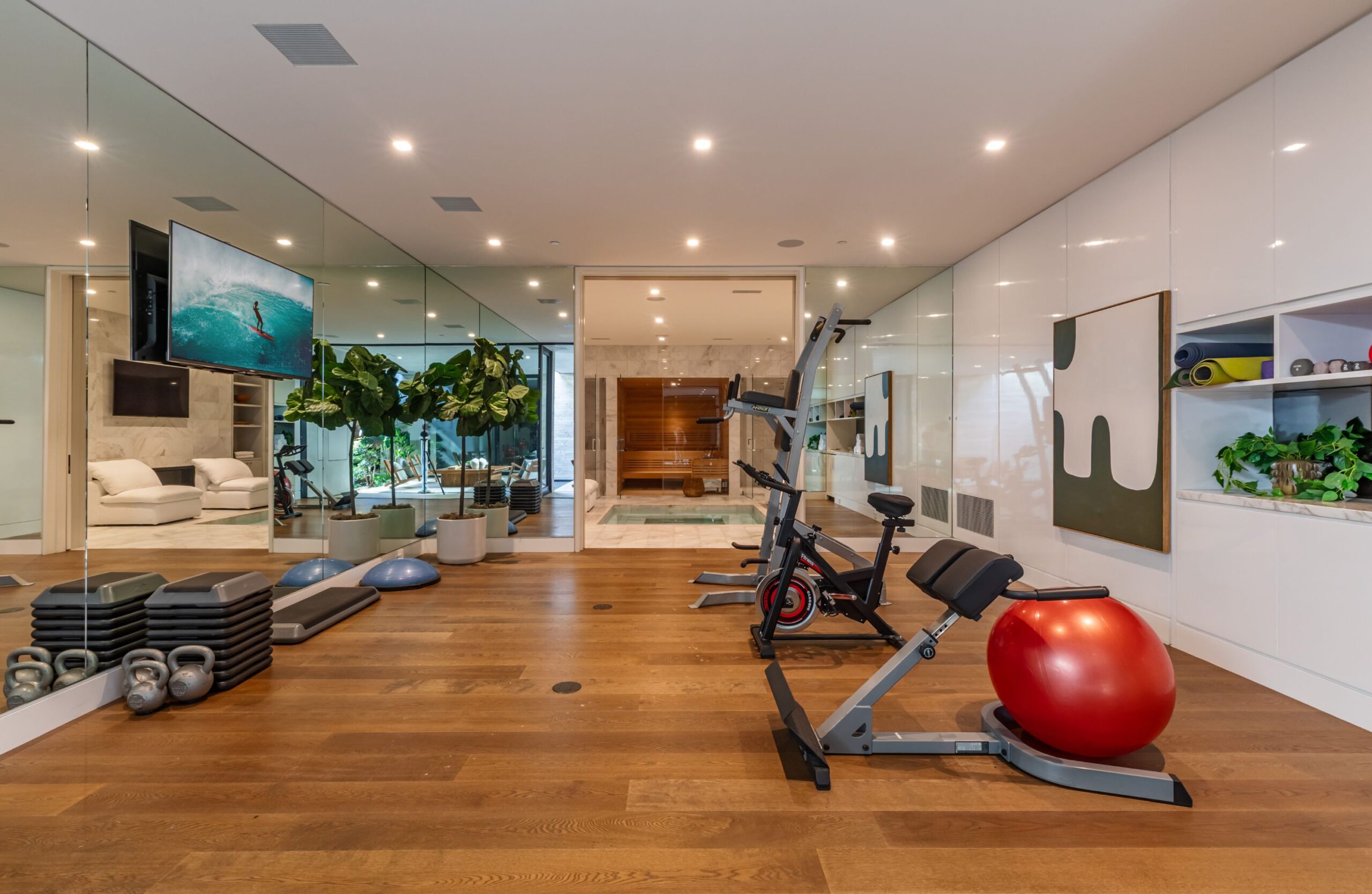 Discover world-class design and luxury in this organic contemporary Trousdale masterpiece crafted by award-winning architect Paul McClean and designer Lindsay Chambers and reimagined by Nate Berkus & Jeremiah Brent. Set on a prestigious, quiet cul-de-sac, this 11,000 SF home boasts an architectural exterior with custom Italian stonework. Mid-century-inspired steel grillwork surround the front door that opens to a showstopping glass bridge entrance. The two-story courtyard and walls of glass allow sunlight to fill the home and highlight the beautiful oak ceilings and Travertine walls. Glass walls open to a spectacular outdoor space featuring an expansive infinity pool with city and ocean views and a tranquil Japanese garden. The primary suite sits beside the pool as if it's floating above the water and offers a custom walk-in closet, and spa-like bathroom. Rejuvenate in the marble-clad indoor wellness center with hot and cold plunge, cedar sauna, and gym. Additional amenities include a stunning Nero Marquina-clad bar, home theater, subterranean auto gallery, and fairytale pink playroom. This architecturally significant home is a rare offering, even among the most discerning tastemakers in the city.