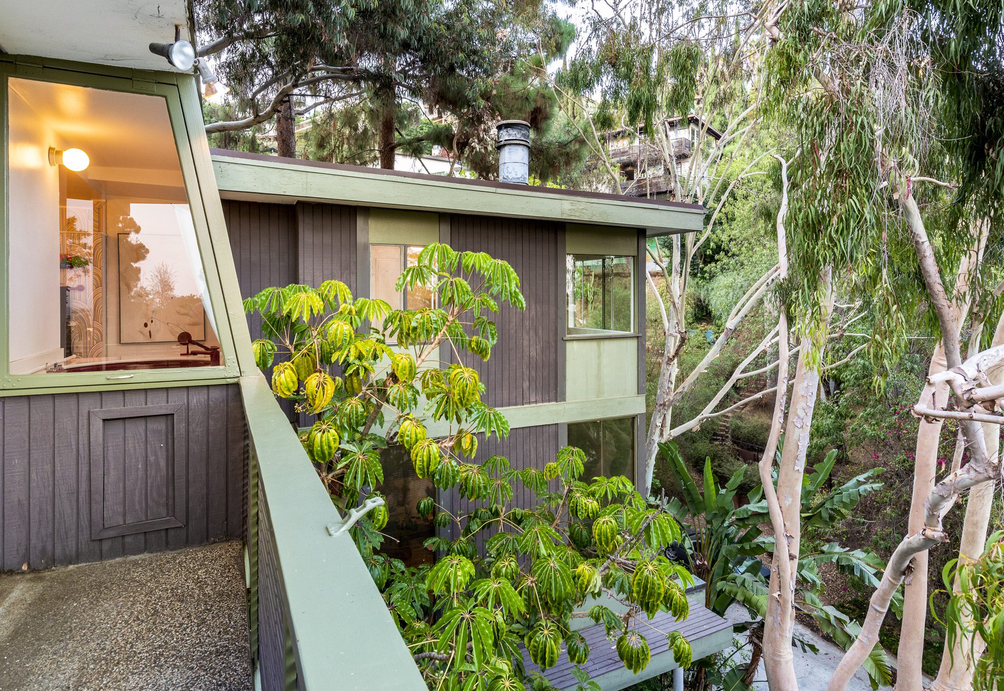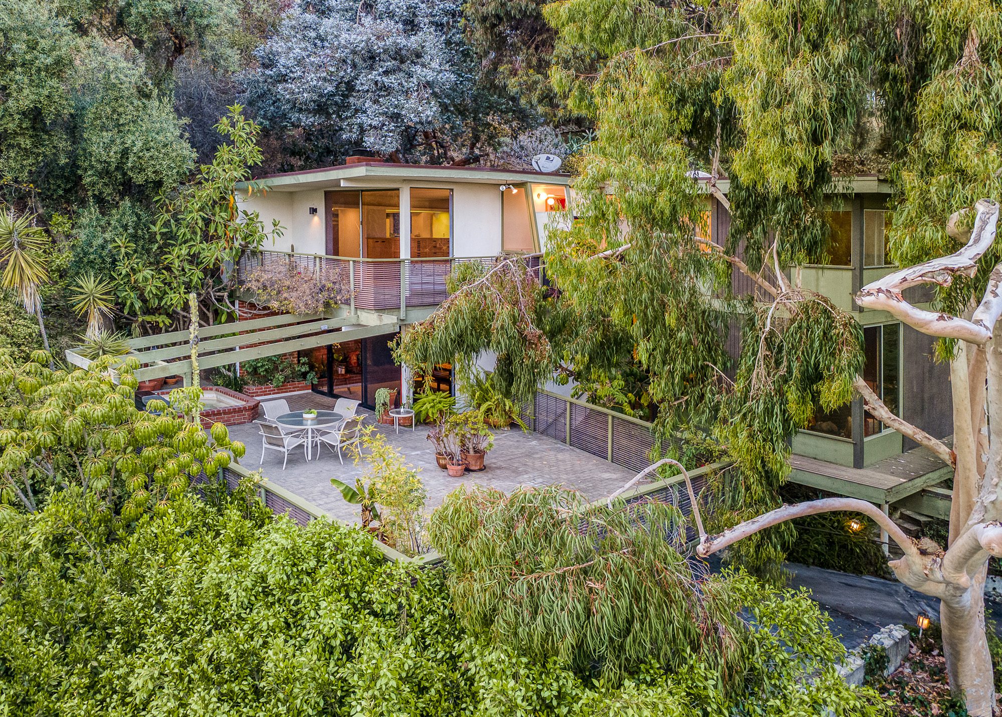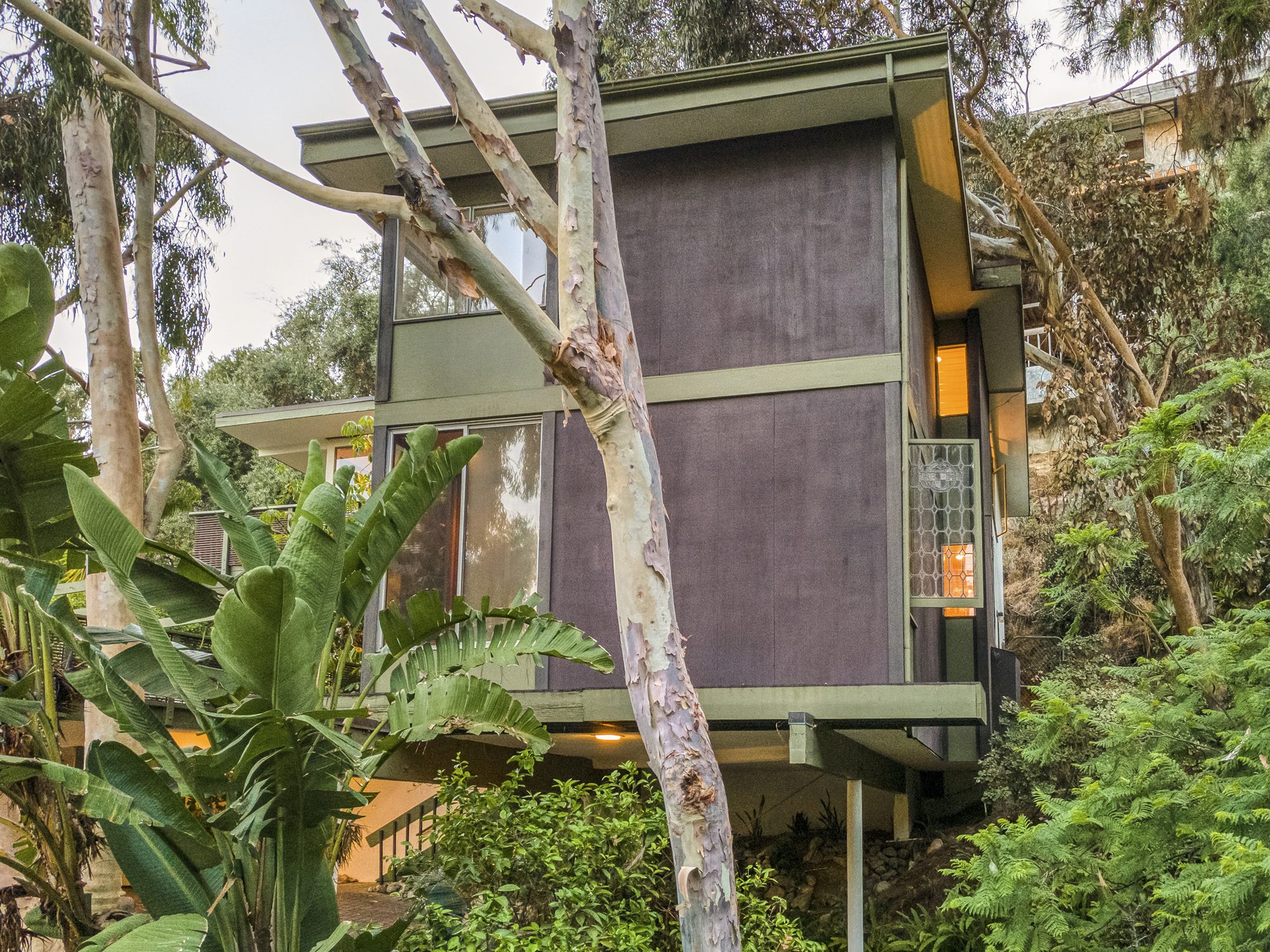 A pure 1952 midcentury modern tucked into the hillside at the end of a quiet cul-de-sac perched above Sunset Strip. 3 bedrooms, 3 1/2 baths with city views, and an abundance of natural light from floor-to-ceiling windows. The cantilevered formal living room features a tiled fireplace and a drop-down screen, perfect for projecting films. Large primary bedroom with views, large open floorplan closet, and classic nostalgic bathroom. Enjoy indoor/outdoor living while entertaining guests on the large deck alongside spa plus beautiful tree top views of the canyon. The house offers many vintage details, including original tile, built-ins, and artisan stained glass. Now is your chance to make this classic midcentury your home. Convenient location set between the Bird Streets and Trousdale.