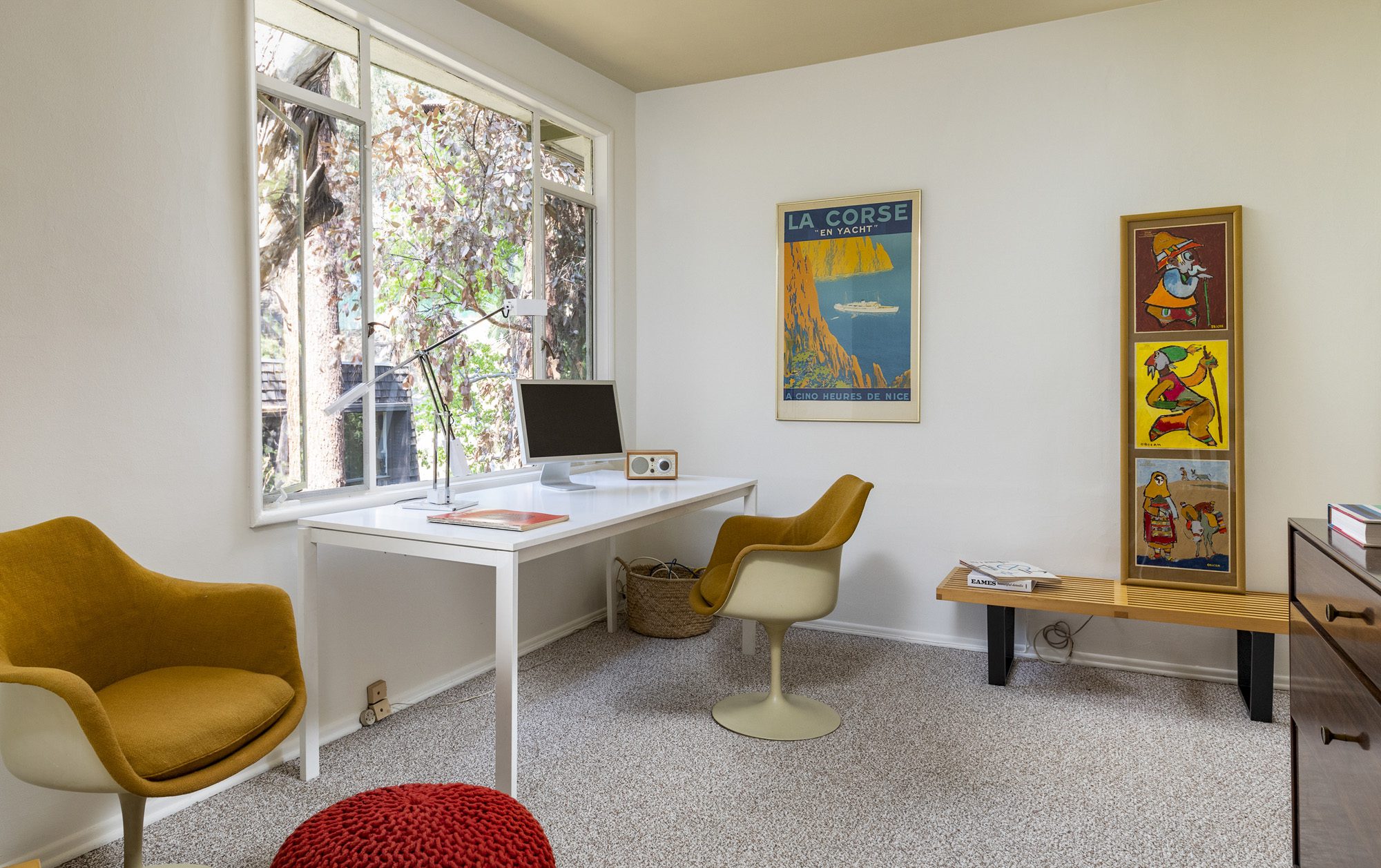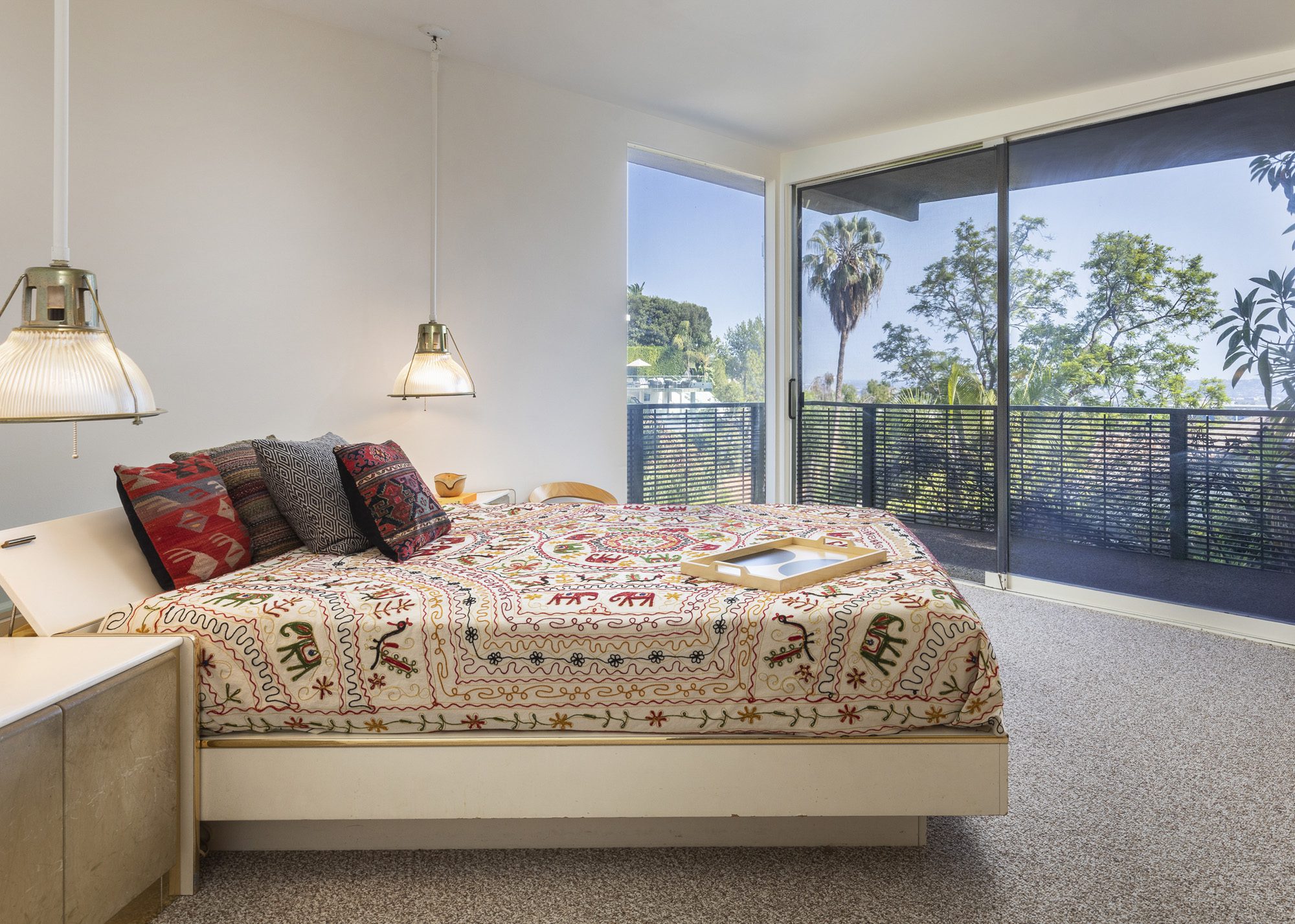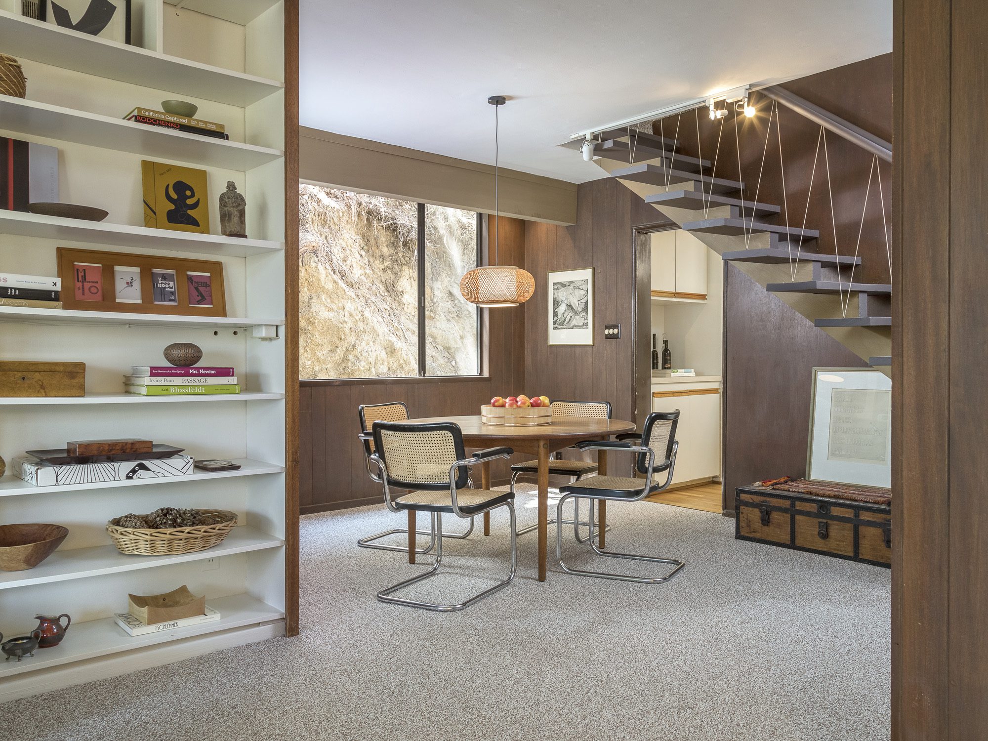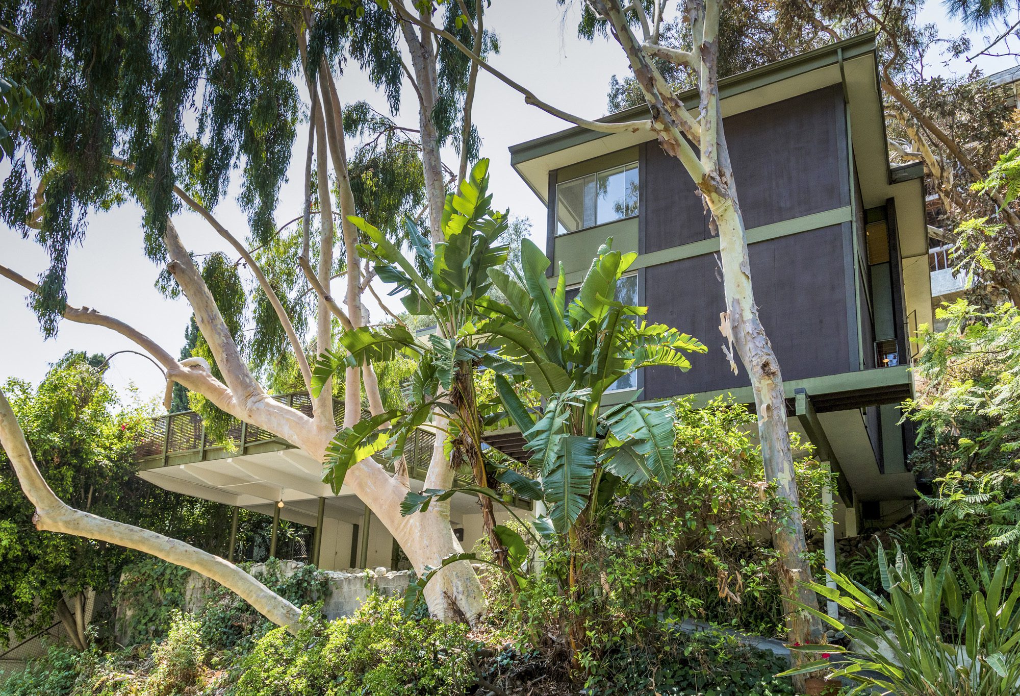 A pure 1952 midcentury modern tucked into the hillside at the end of a quiet cul-de-sac perched above Sunset Strip. 3 bedrooms, 3 1/2 baths with city views, and an abundance of natural light from floor-to-ceiling windows. The cantilevered formal living room features a tiled fireplace and a drop-down screen, perfect for projecting films. Large primary bedroom with views, large open floorplan closet, and classic nostalgic bathroom. Enjoy indoor/outdoor living while entertaining guests on the large deck alongside spa plus beautiful tree top views of the canyon. The house offers many vintage details, including original tile, built-ins, and artisan stained glass. Now is your chance to make this classic midcentury your home. Convenient location set between the Bird Streets and Trousdale.