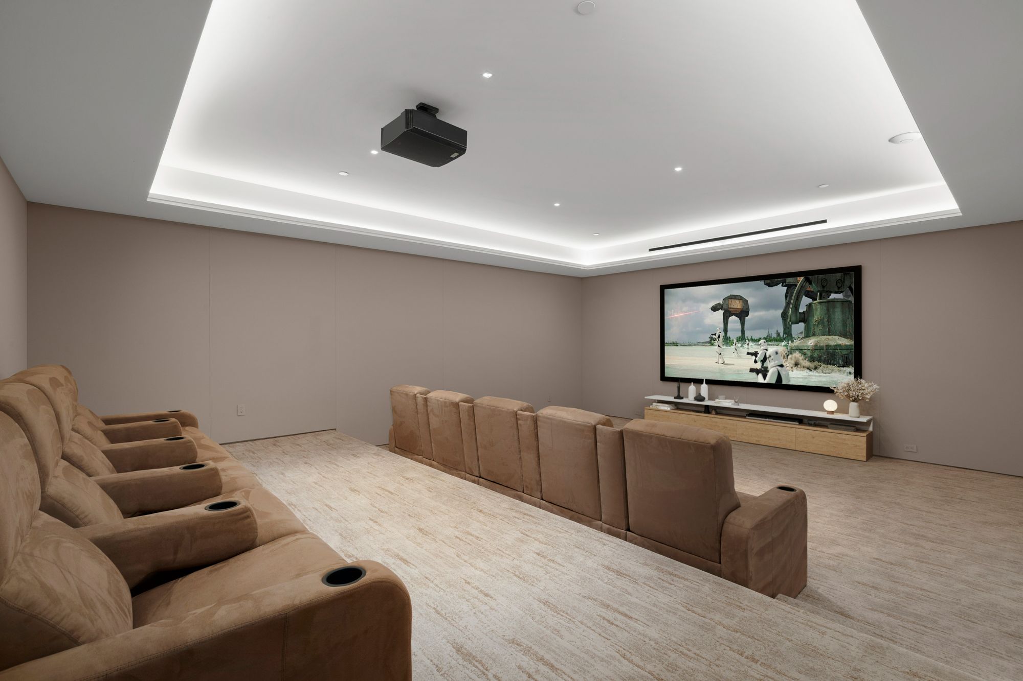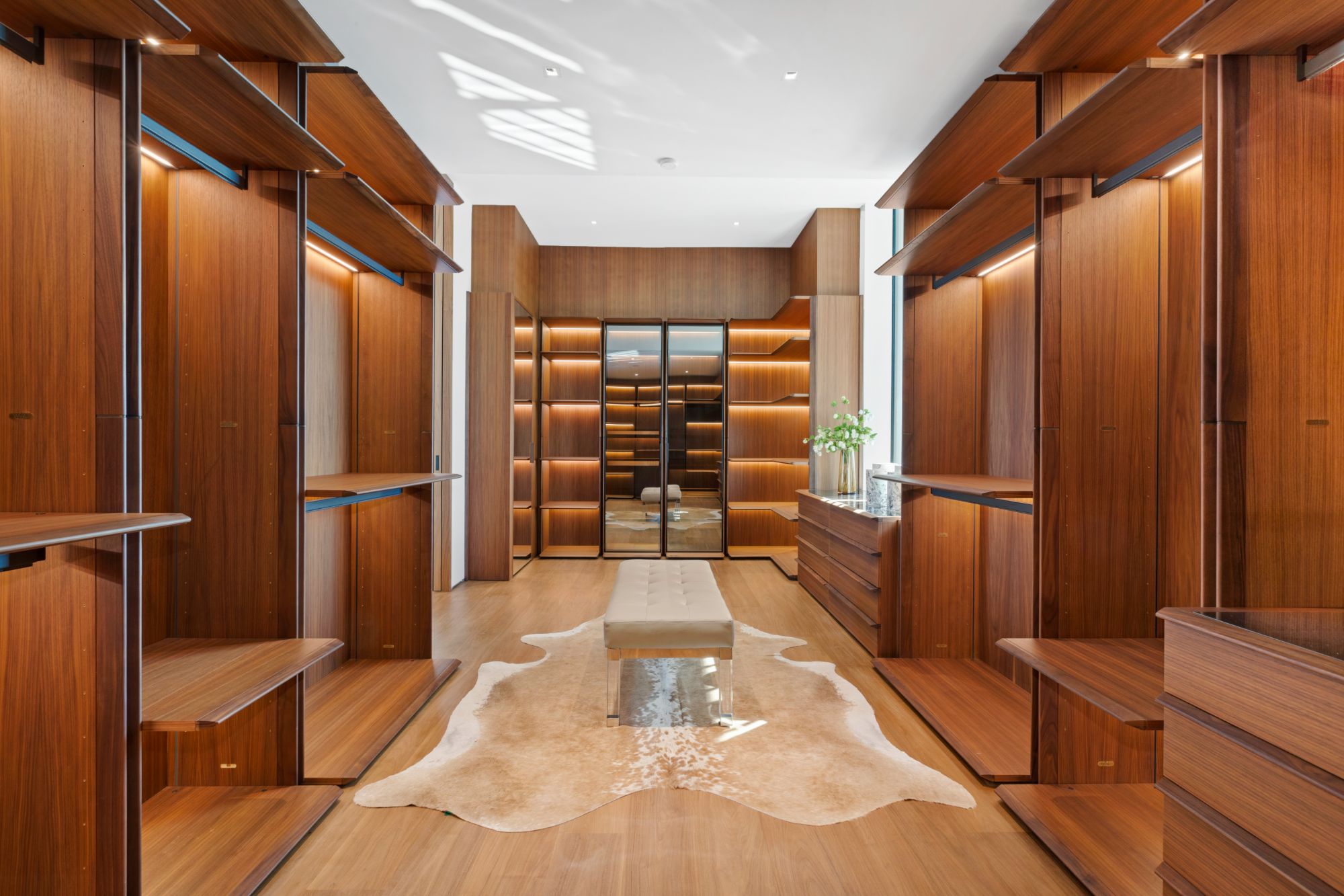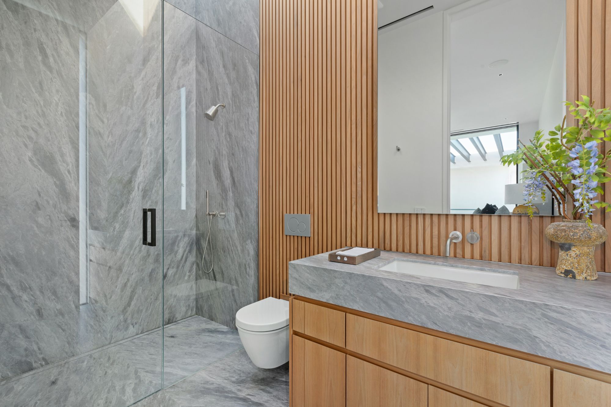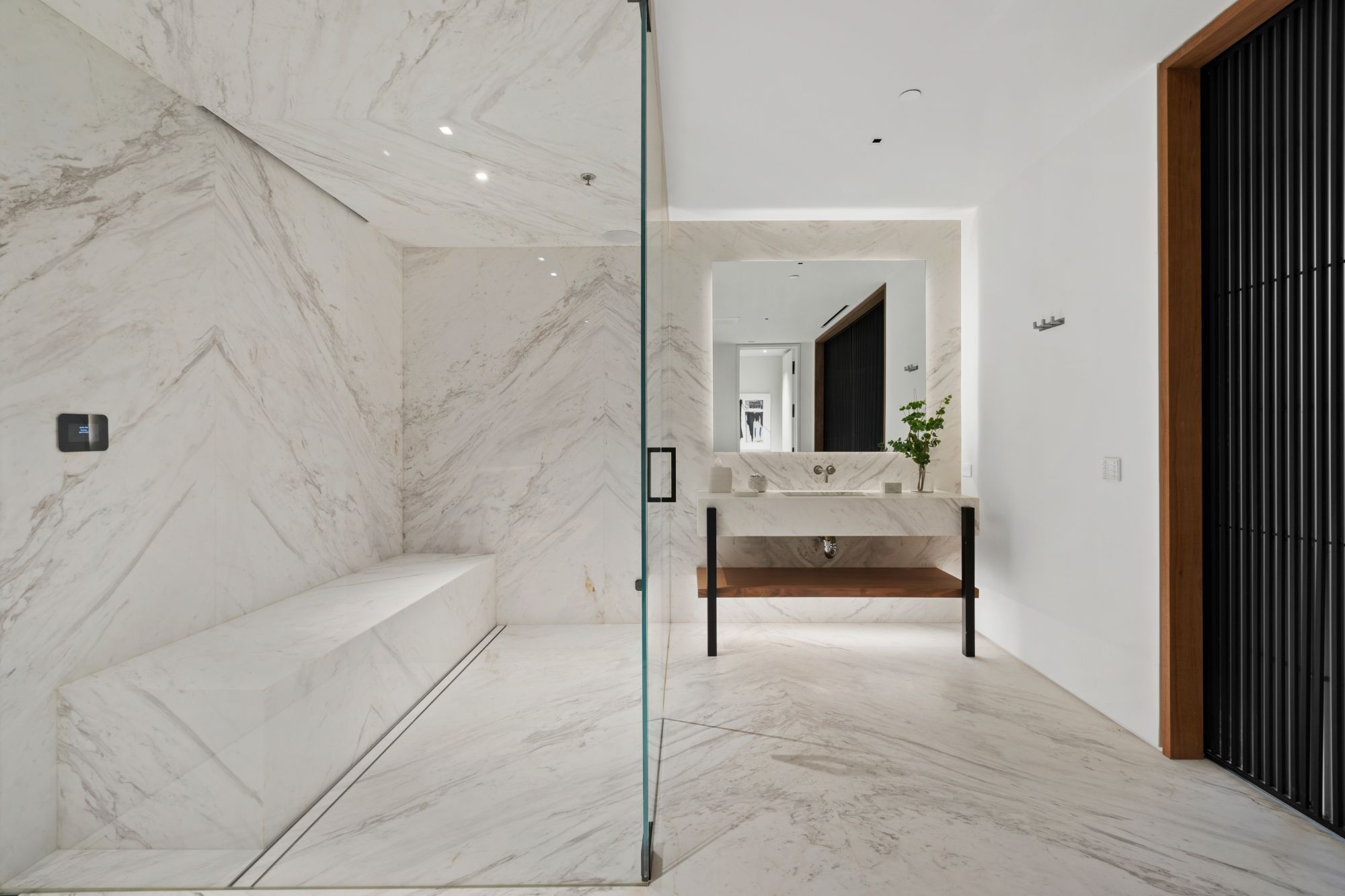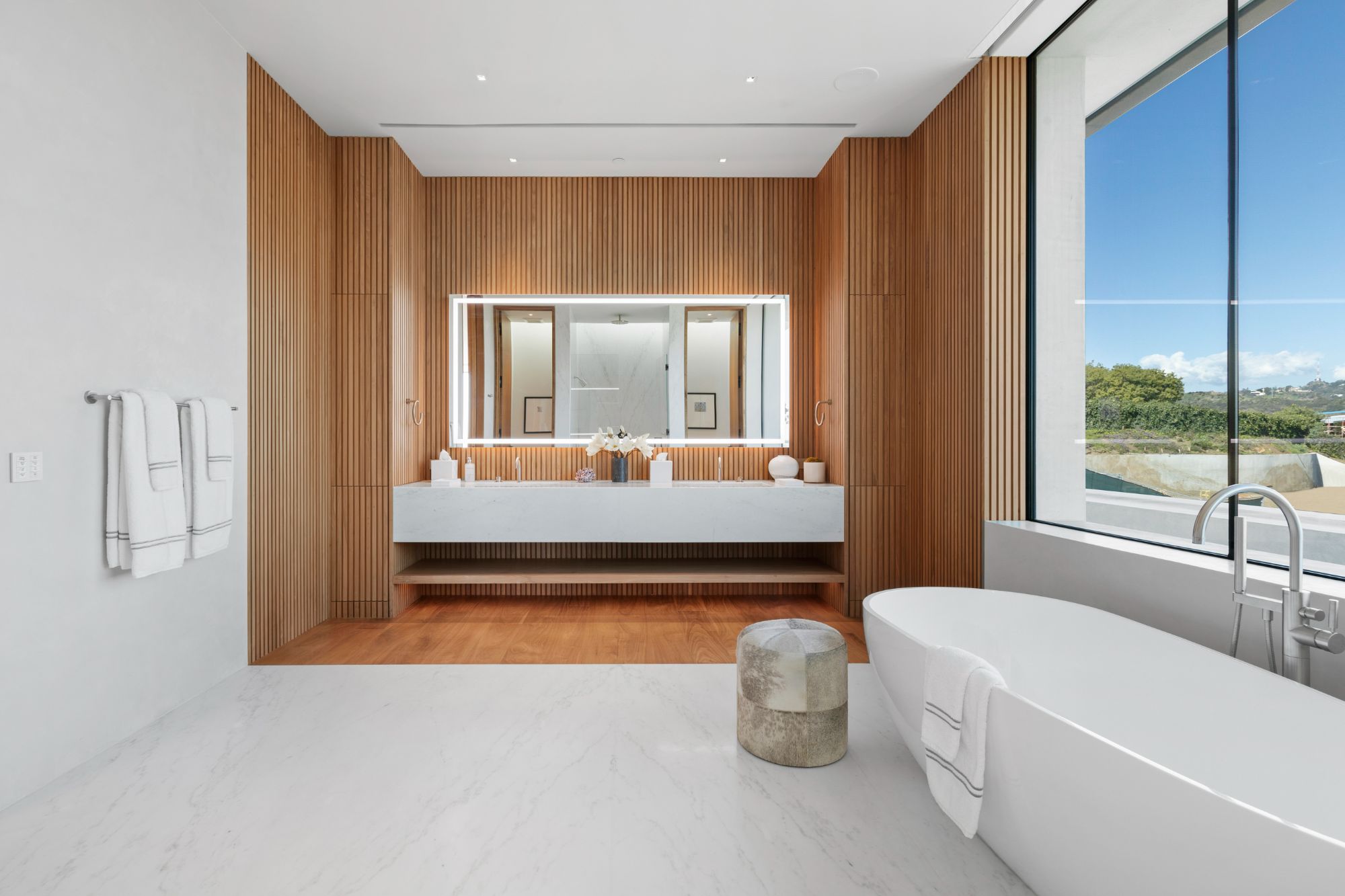 Discover contemporary elegance in this modern estate by McClean Design. A bridge, overlooking a lounge area with waterfall and living wall, welcomes you to this approx. 11,225 SF home. The formal living room features a beautiful herringbone floor, custom bar, fireplace, and walls of glass that showcase the view and open to create an unforgettable indoor/outdoor living experience. The gourmet kitchen offers top-of-the-line appliances, massive dual islands, and seamlessly blends into the dining room and secondary living room. Boasting 5 bedrooms and 9 bathrooms, this home offers ample space for family, friends, and guests. The spacious primary suite offers walk-in closet, spa-like bathroom, sitting area with fireplace, and glass walls that open to a private balcony overlooking the City of Angels. The daylit lower-level amenities include a fitness studio with sauna, a bar with walk-in wine cellar, billiards table, and movie theater. The beautifully landscaped outdoor oasis offers a large deck for dining al fresco, multiple seating areas, sunken fire pit, pool with spa, and sweeping views. Experience the pinnacle of luxury living in Beverly Hills.