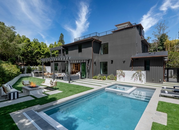Enjoy the ultimate in Southern California living in this brand-new construction Modern Farmhouse, built by Shelter Homes! Ideally located near Palisades Village, yet with privacy and an oversized lot (13,000+ sq ft), this 6 bedroom and 9 bath home is everything you have been looking for and more. Exceptionally designed with every detail in mind, you will find stunning finishes and custom fixtures throughout. The main floor features a gourmet kitchen and breakfast area, living room with private patio, dining room and family room, walk-in pantry, butlers pantry, laundry & 1 en-suite bedroom that open out to the large yard. The yard is expansive & perfect for entertaining with a large pool and spa, tons of grass, BBQ, fire pit, and an outdoor lounge and dining area. Upstairs you will find 4 en-suite bedrooms including the master suite with 2 walk-in closets, a fireplace, and a balcony. This home features entertaining areas abound, from the sprawling backyard to the rooftop deck (with elevator access) where you can enjoy the ocean view or a starry night sky and a lower basement level with movie theatre, gym, wine cellar, mudroom, powder bath with steam shower and 1 additional en-suite bedroom. 1371 Marinette strikes the perfect balance between private oasis and convenience. A true one-of-a-kind, can't miss property in the best location in the Palisades
