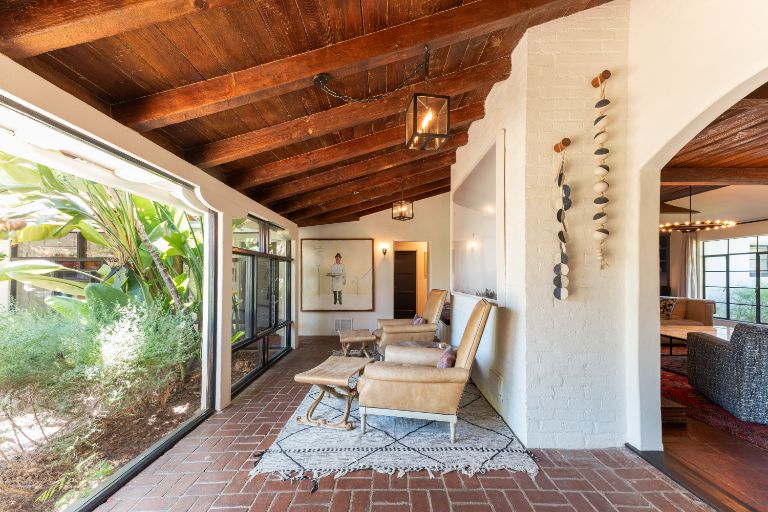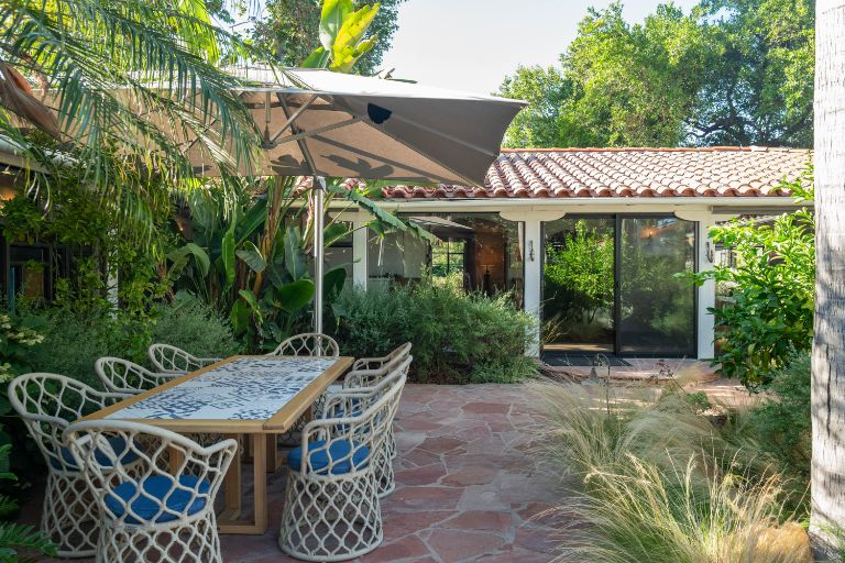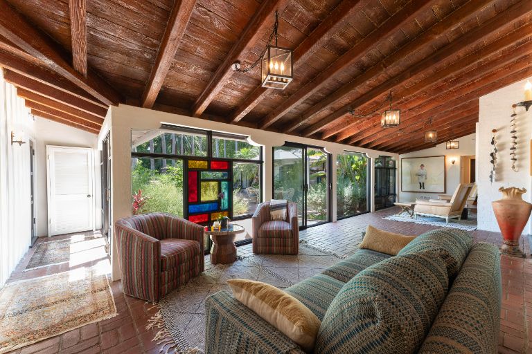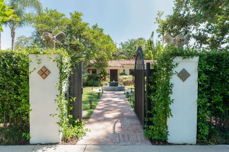 Unparalleled land, privacy & luxury in the heart of L. A. Situated on a very private 2/3 acre flat lot, this 1937 one-of-a-kind Historic Spanish Revival Estate & guesthouse was designed by architect Kenneth B. Worthen. The lush, tropical gardens are featured in the book, Secret Gardens of Hollywood, L. A. Times and Spa magazine and located on the most prestigious block in the Chandler Estates area. The remodeled, large primary bedroom has a custom designed walk-in closet & huge primary bath. Jack & Jill bedrooms in the main house have been reconfigured to add 2 fully remodeled en suites and a beautifully designed powder bath for all guests to enjoy. The backyard opens up to a beautiful pool, brand new sports court & thatched roof palapa with wood burning fireplace that will have your guests thinking they are at the Four Seasons! The guesthouse, w/ approx 1,600 sq. ft (included), features 2 bedrooms, kitchen w/ breakfast bar & full bath. Perfect for an artist's retreat, studio, parents or visiting friends. Do not miss this opportunity to own one of the best Spanish compound style properties in the valley!