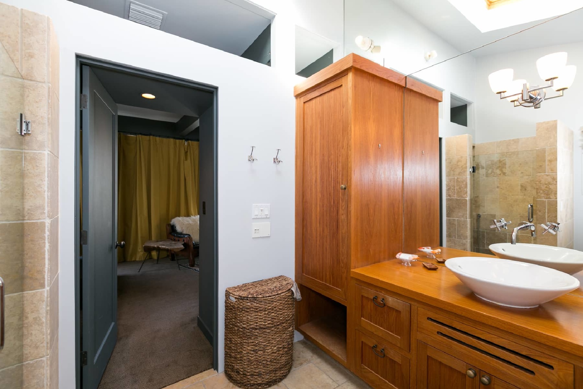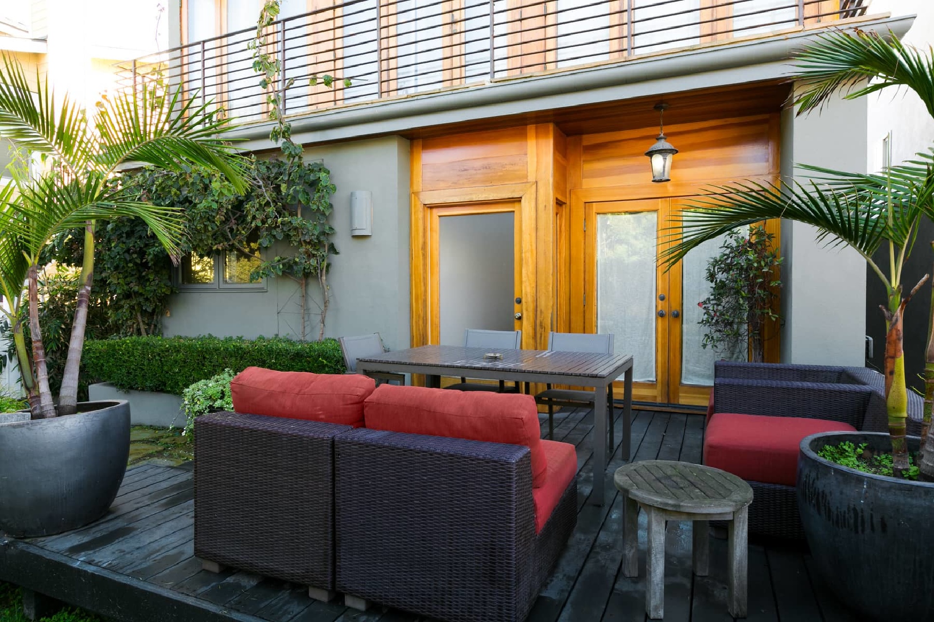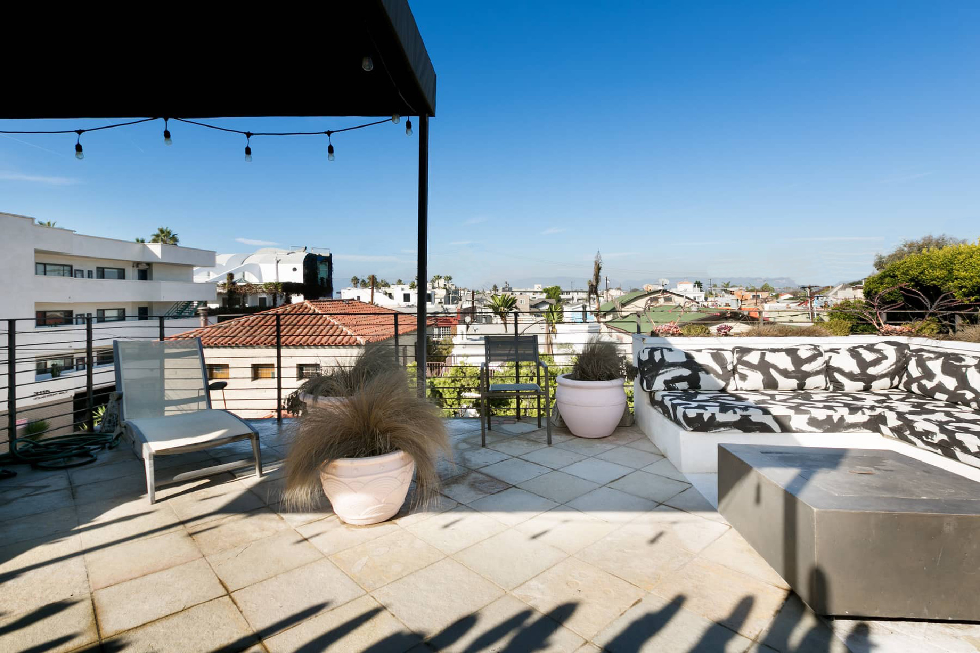 An incredible beach retreat just three houses in from the sand, this designer done contemporary by Studio Hus exudes quintessential Venice Beach living. Ideally located near the Venice Fishing Pier, the famous Venice Canals, and the best restaurants on Washington Blvd, you will never need to leave your private beach oasis. A vibrant Zen garden lined with Sticks on Fire succulents welcomes you with a finished deck on your front porch to enjoy the calming sounds of the ocean waves. Over 1,800 SF of interiors comprise this 3 bed 2 bath residence with the entire second floor dedicated to the master suite. The expansive rooftop deck includes a built-in bar, sectional sofa and a gas fire-pit, which creates the perfect ambience for entertaining while taking in the ocean breeze and unobstructed city views. This house is perfect for as a primary home, a weekend beach getaway, or an income property, this Peninsula contemporary offers the best of LA's coastal living.