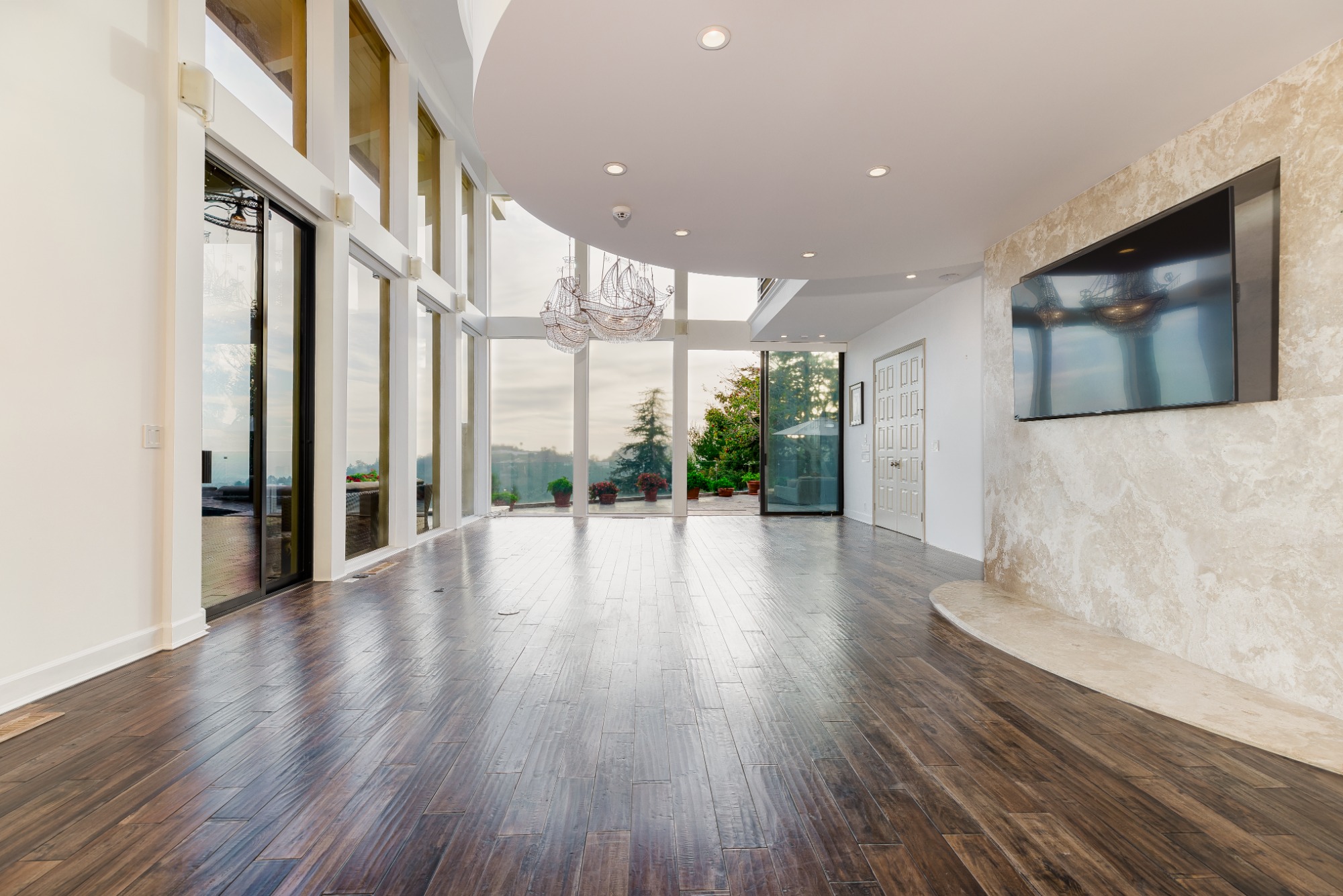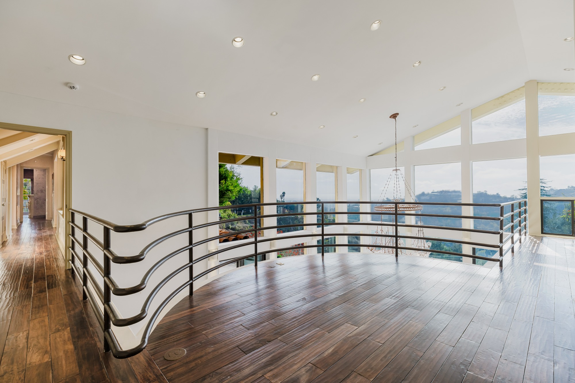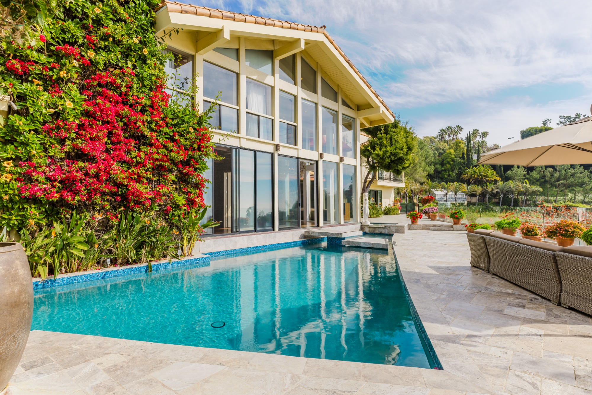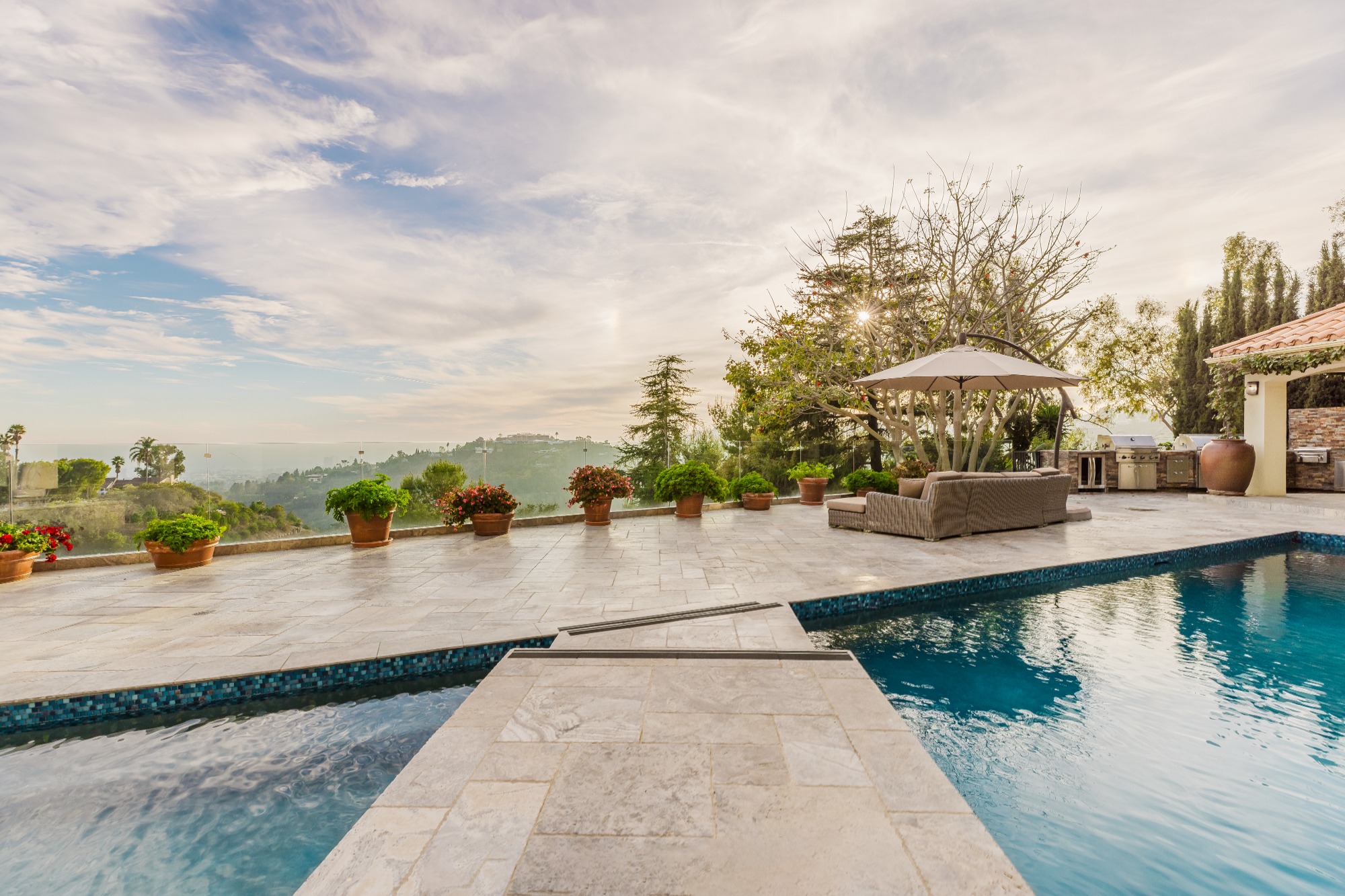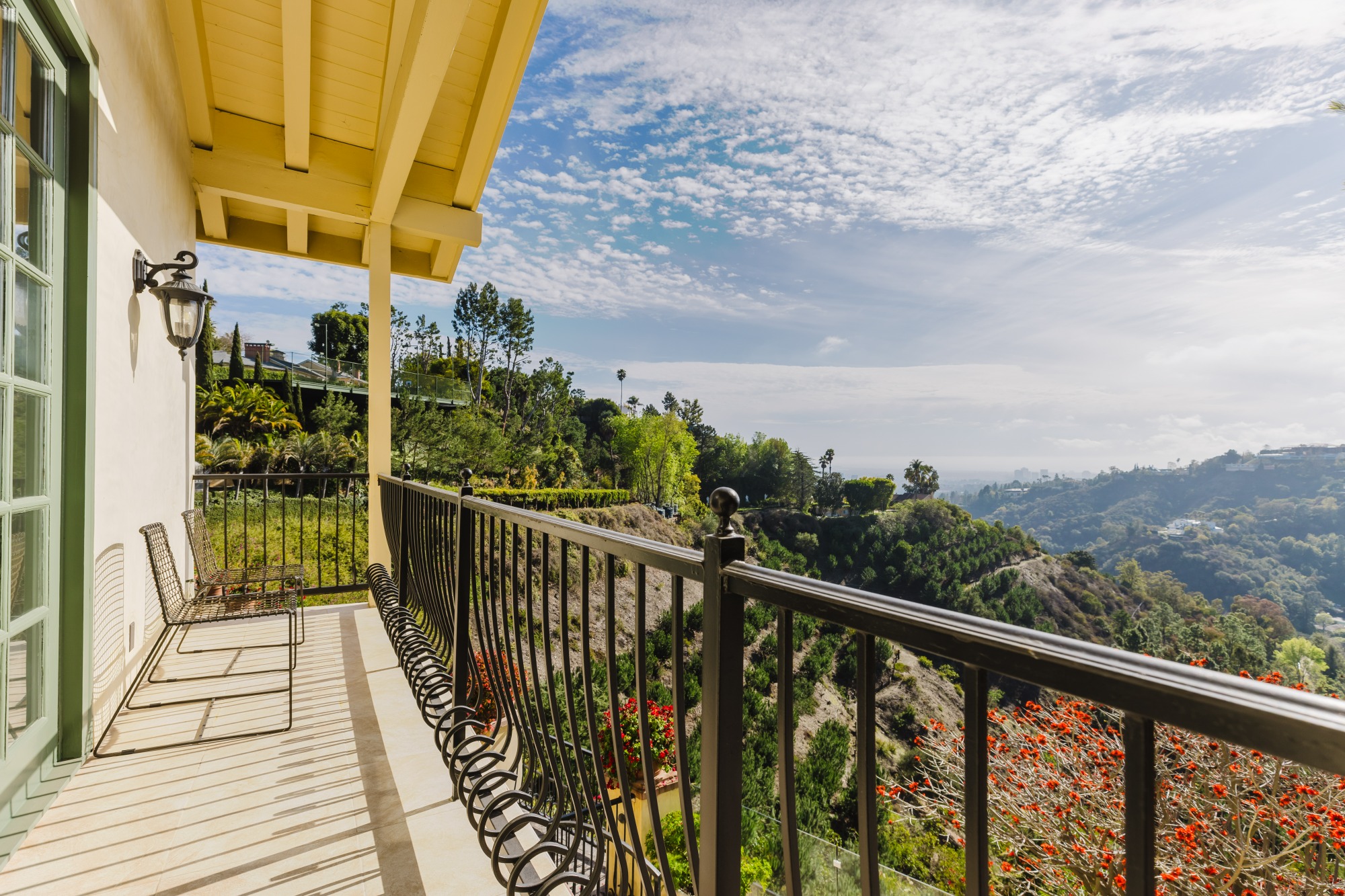 Set atop a prime Bel Air hilltop, this classic estate offers a serene escape with unobstructed ocean, city, and canyon views. Spanning almost an acre, the home blends mid-century charm with timeless appeal. A stunning cantilevered tennis court, sparkling pool and spa, and expansive grassy yard invite relaxation while enjoying the spectacular blue-sky vistas.The light-filled residence features spacious, well-appointed living areas, including a formal dining room, family room, and a vast bonus room perfect for entertainment. Hardwood floors flow throughout, enhancing the home's elegant atmosphere. The gourmet kitchen, complete with a sunny breakfast nook, is ideal for gatherings. Four bedrooms, including a luxurious master suite with a marble bath, offer comfort and privacy.Smart home capabilities, multiple fireplaces, and a two-car garage complete the offerings. The private backyard, with a tennis court featuring area lights, creates a resort-like atmosphere perfect for both active play and tranquil retreats. This estate is the epitome of refined living in Bel Air. Set behind the prestigious East Gate of Bel Air, this ultra-private Mediterranean estate offers breathtaking, unobstructed views of the ocean, city skyline, and canyon. Spanning 7,500 square feet, the home is a sanctuary of light and space, designed for both grand entertaining and intimate living. A soaring two-story wall of windows defines the expansive main living and dining areas, flooding the interiors with natural light. The newly renovated chef's kitchen, complete with a sunlit breakfast area, is equipped for everything from casual meals to large-scale gatherings. A wine closet, guest suite, and two powder rooms complete this level. Upstairs, the primary suite is a retreat unto itself, featuring a sitting area with a fireplace, an oversized walk-in closet, and a spa-like bathroom. Three additional bedrooms, each with en-suite baths, offer comfort and privacy. Two dedicated fitness rooms and a separate maid's quarters with a kitchenette and private entrance enhance the home's functionality. Designed for seamless indoor-outdoor living, the exterior showcases a shimmering pool and spa, a spacious viewing deck, and a covered outdoor dining area with a built-in BBQ, perfect for entertaining against a stunning backdrop.Fully gated and secure, this estate offers the utmost privacy in one of Los Angeles' most coveted enclaves, making it a rare and prestigious offering.