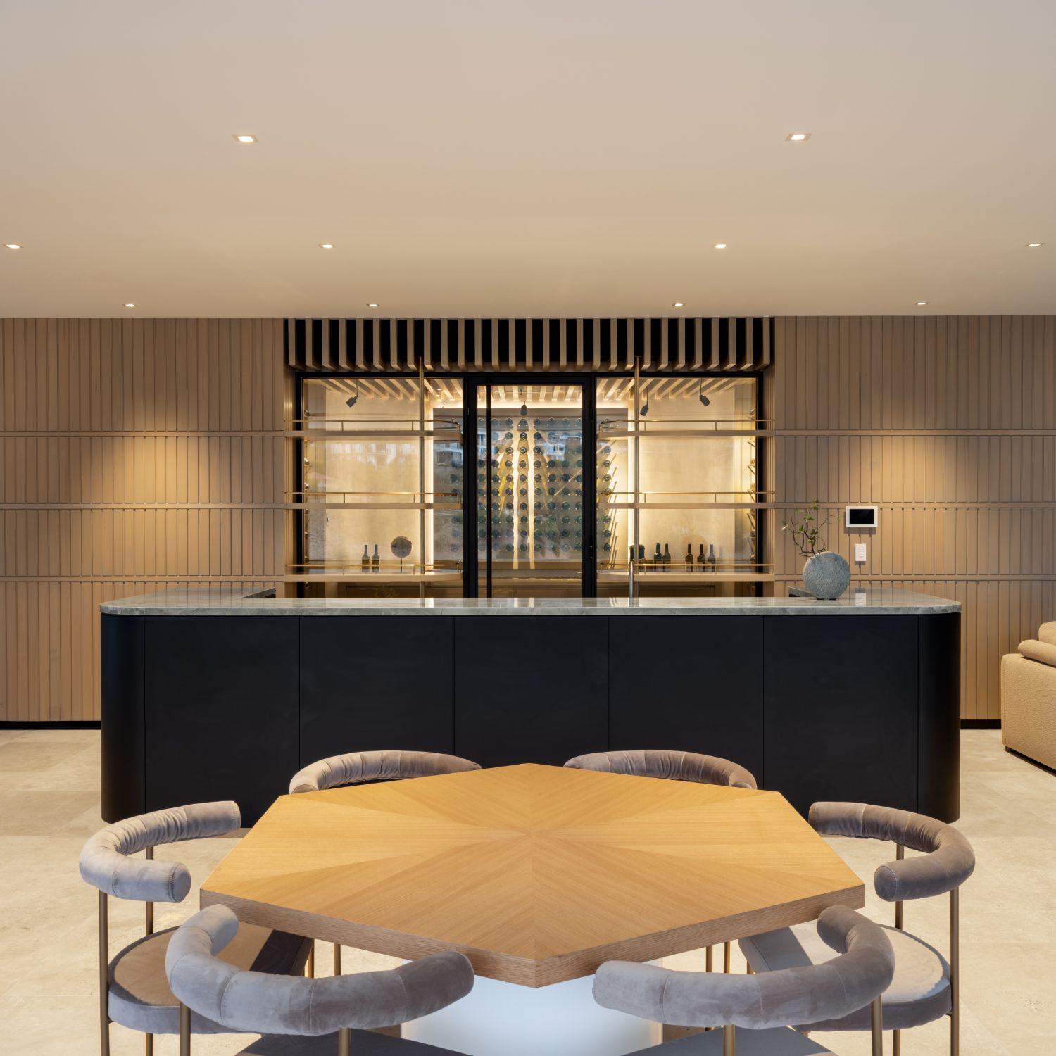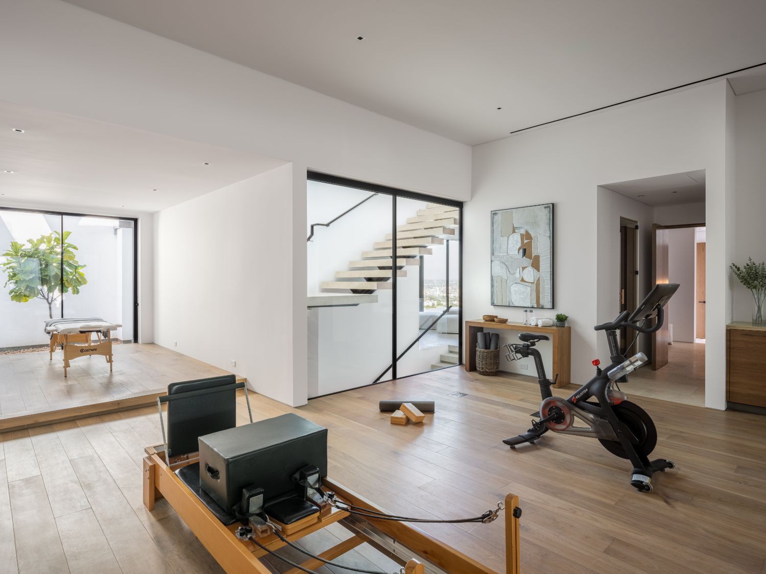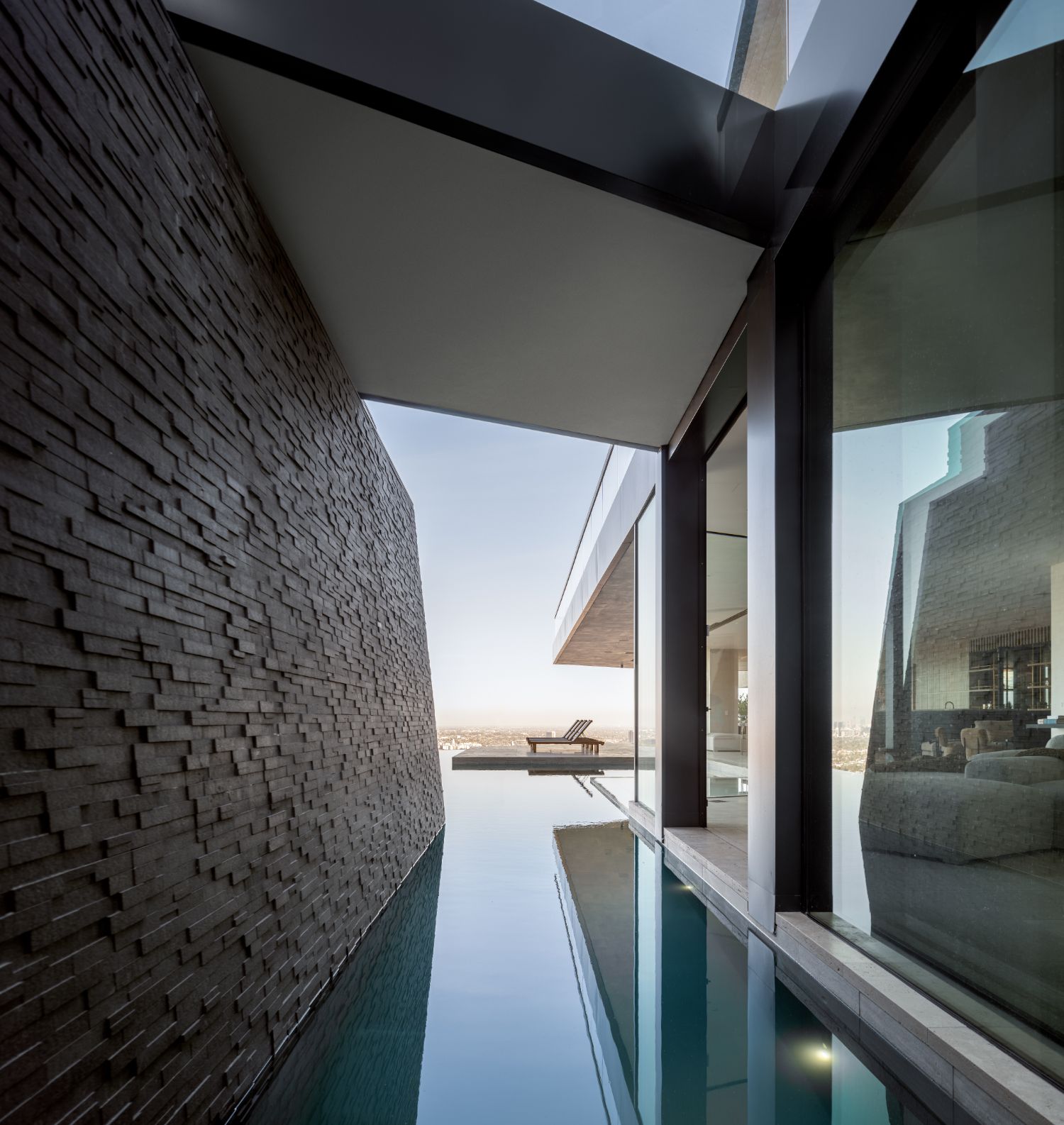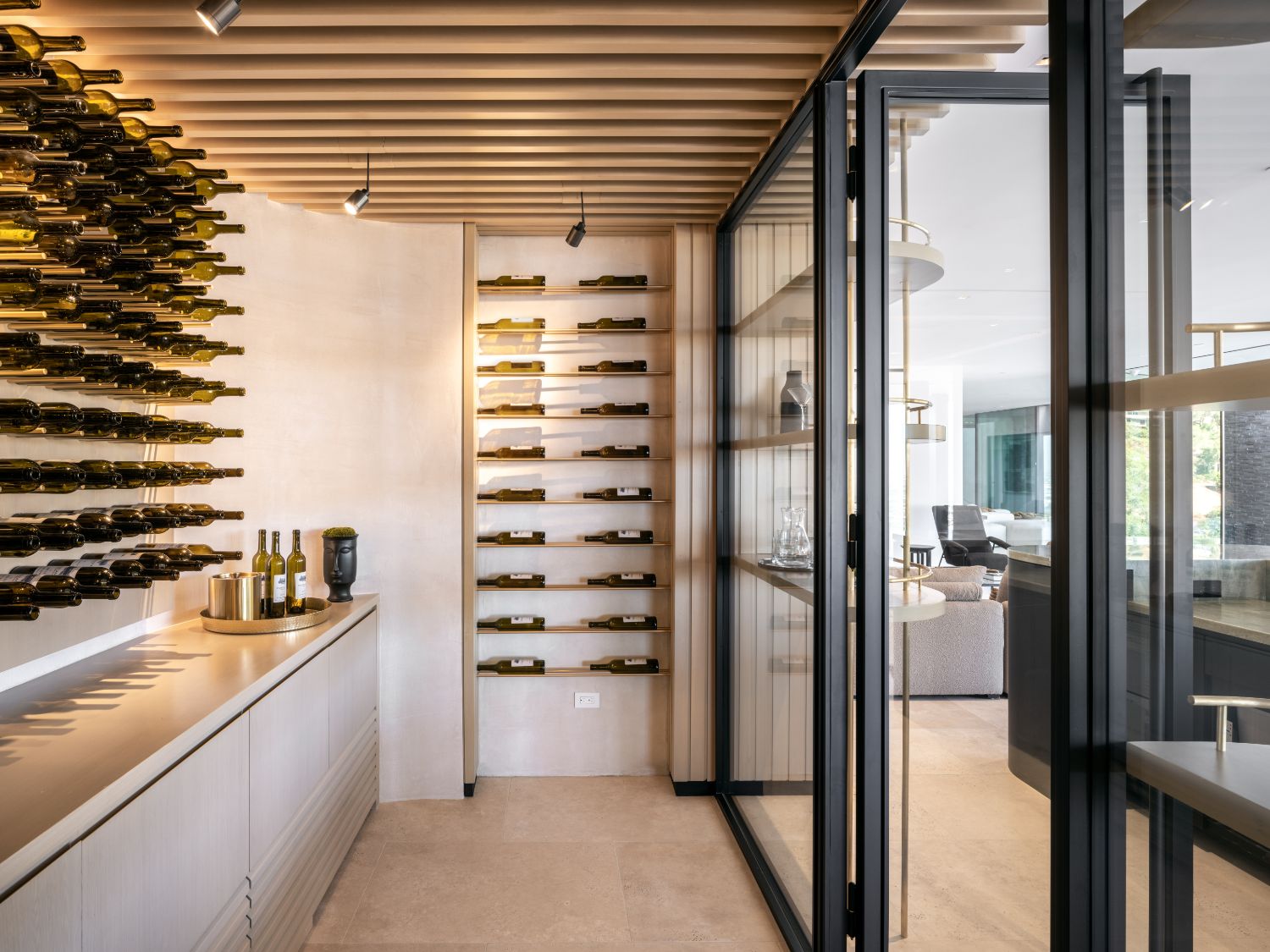 Sited on the most prestigious cul-de-sac in the famed Bird Streets, this remarkable modern home designed by Vantage Design Group features the finest finishes, incredible volume, and jetliner views over the Los Angeles basin. A discreet facade leads to the upper level via a skylit foyer framing the perfect entry to a dramatic living space. Disappearing walls of glass create an idyllic indoor/outdoor entertainment area with panoramic views. Honed travertine, walnut millwork, and natural materials create a warm aesthetic blending seamlessly to the expansive outdoor deck. The home features a bar, spa, and multiple seating areas. The second level entertaining area is framed by a jaw-dropping infinity pool featuring a baja shelf, a cascading water wall, and a spa where one can soak amongst the sparkling city lights. A gorgeous Jade bar sits in front of a beautiful walk-in wine room, perfect for entertaining guests. The spacious private primary suite features a generous walk-in closet and opens to its own lounging deck with an outdoor fire pit. Lower level guest suites and a maid's quarter all feature stunning bathrooms and sweeping city views. Additional amenities include an elevator, smart home system, large gym with yoga area overlooking an atrium, steam room, dry sauna, outdoor pool bathroom, and bbq. 5+ years in the making, a true trophy in a blue-chip location.
