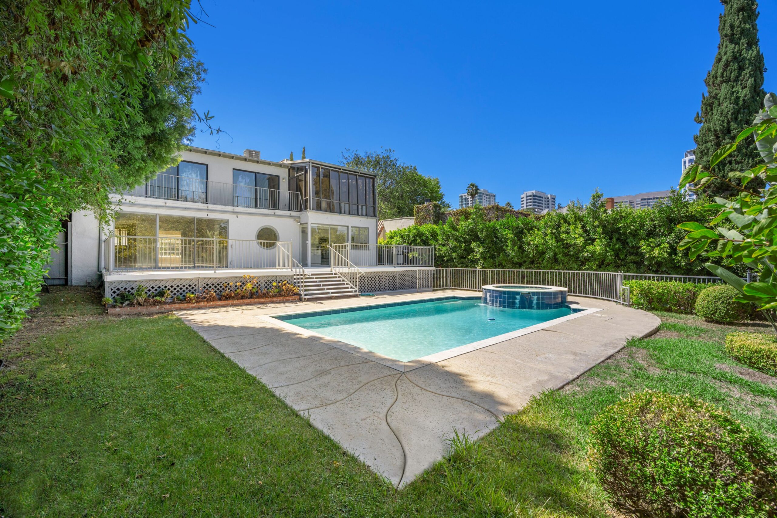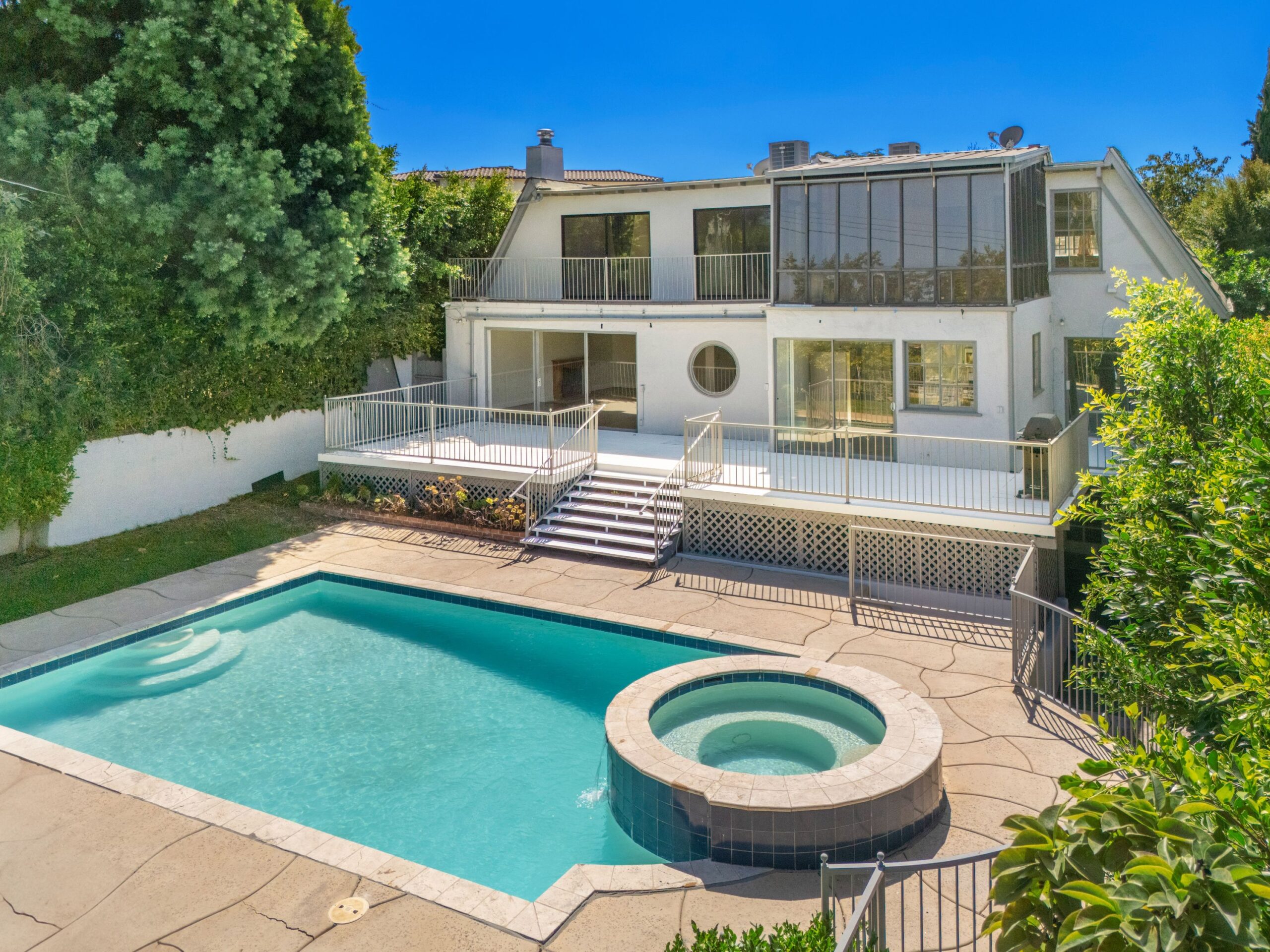 Set directly on the Golf Course of Los Angeles Country Club, this spacious home offers over 4,000 sqft of living space with 4 bedrooms and 4.5 bathrooms. Designed with both everyday living and entertaining in mind, the property blends comfort, convenience, and some of the most scenic surroundings in the city. The main level features a bright living room, formal dining area, and kitchen that flow seamlessly onto a large deck overlooking the backyard, large pool, and the golf course; creating an inviting space for hosting gatherings or simply relaxing outdoors. Upstairs, you will find two large en suite bedrooms and an enclosed glass sunroom with sweeping backyard and golf course views; ideal for an office, studio, or gym. The lower level includes a versatile space with its own entrance, kitchenette, and full bath, great for a guest suite or theater. Situated in an unbeatable location just minutes from Beverly Hills, Century City, and Westwood, this property places you at the center of it all while maintaining the peace and privacy of a golf course setting. Truly one of a kind in this price point.