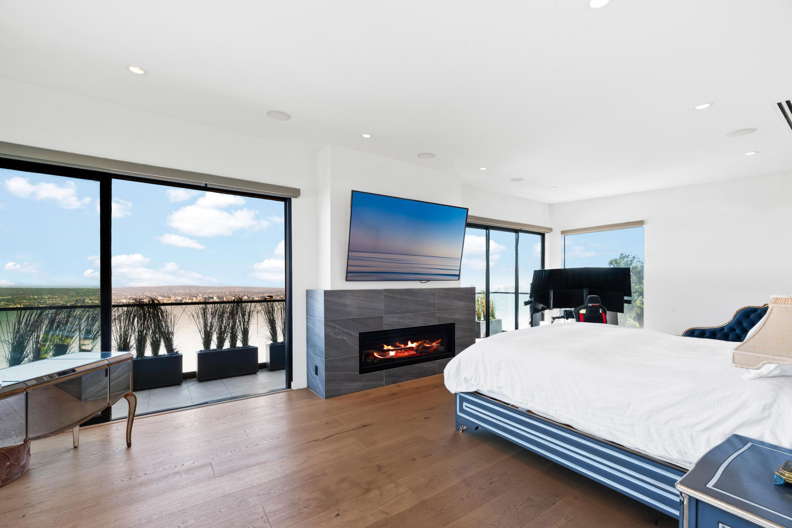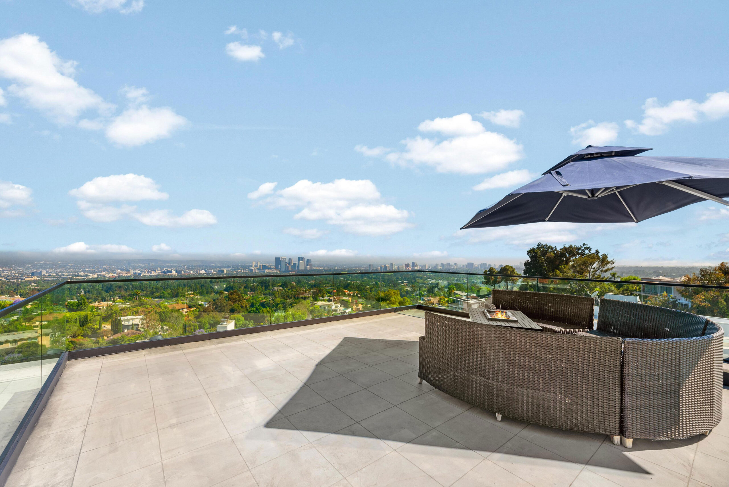 Best Views in Beverly Hills! Nestled in a quiet cul-de-sac just 6 minutes from Sunset Blvd in the prestigious streets of Beverly Hills, this modern masterpiece offers an unparalleled blend of luxury, sophistication, and stunning panoramic views from every room. The crown jewel of this home is its acclaimed 360-degree rooftop deck, voted the best in Beverly Hills. From this unobstructed vantage point, indulge in mountain, city, and ocean views all at once! Inside, the open floor plan seamlessly integrates the living, dining, and kitchen areas, bathed in natural light. The chef's kitchen features Miele appliances, custom cabinetry, and a gorgeous marble island. The 1,000 sq ft primary bedroom occupies its own private floor, offering a serene retreat with a large walk-in closet, a grand primary bathroom, and large sliding doors that lead to a terrace. Imagine waking up to breathtaking views and enjoying your morning coffee in absolute tranquility. The outside includes a spacious patio area perfect for al fresco dining or lounging amidst the peaceful ambiance. Additional highlights include a quiet & private home office/bedroom separate from the rest of the home with a private entrance, bathroom, deck & sitting area. A two-car covered garage, a driveway, oak floors, high ceilings, and high-end finishes throughout. House is unfurnished, freshly painted and ready for move in!
