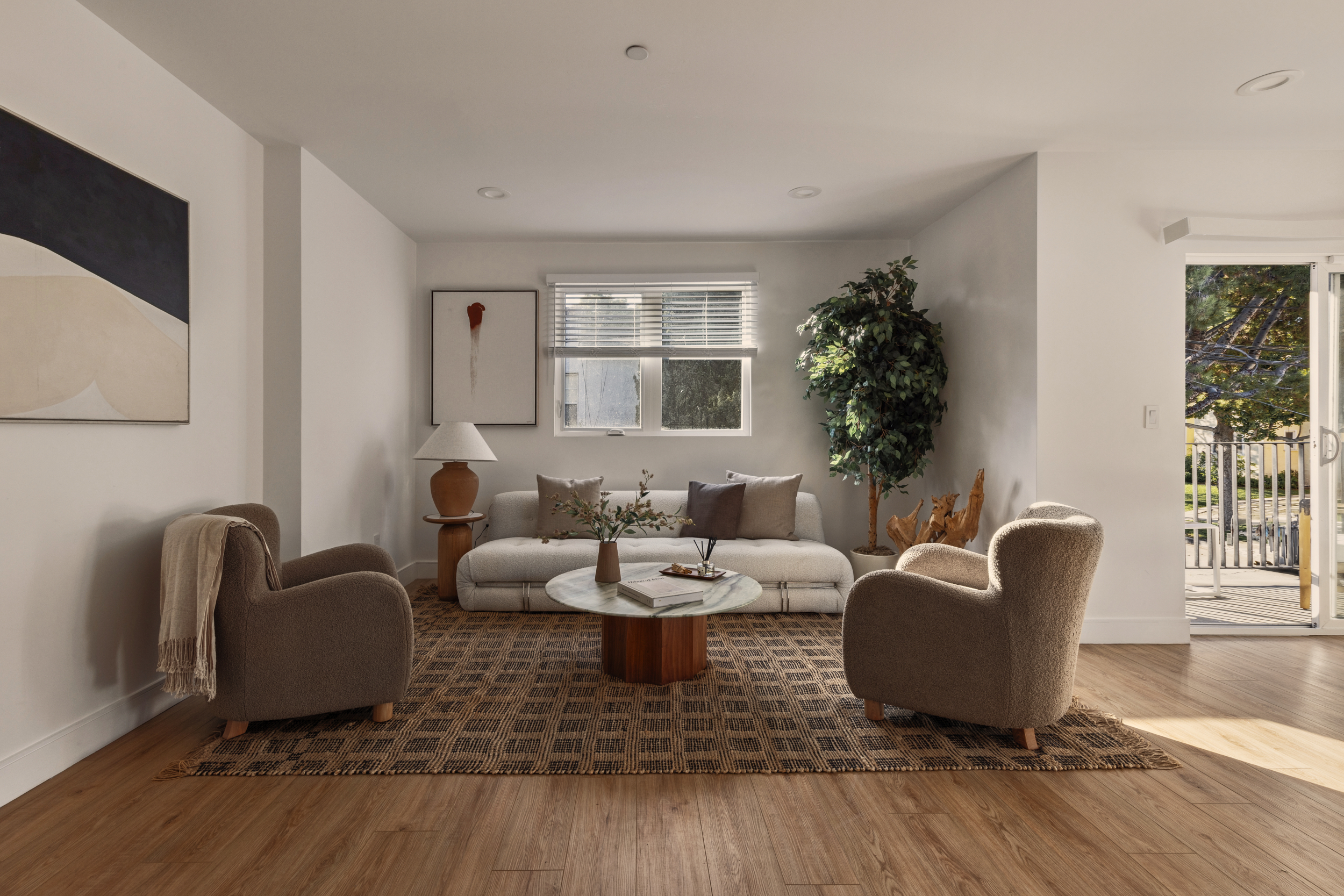 NEW CONSTRUCTION MODERN ARCHITECTURAL TOWNHOUSE; Located in the quaint Faircrest Heights neighborhood just moments from Carthay Square, minutes from Beverly Hills, and centrally positioned to shops, restaurants, nightlife, and freeway access. This sparkling new unit offers privacy, a large primary bedroom with balcony, 3 additional generous sized bedrooms, a gourmet kitchen with gas range and breakfast bar, washer dryer and a spacious private 2 car garage that offers additional storage. This is an affordable alternative to a single family residence and is just completed - all brand new. There's an abundance of natural light and multiple balconies overseeing the tastefully landscaped grounds. The property is securely walled and gated. Enjoy the peace of a single common wall in this compelling new build townhouse. Easy to show!