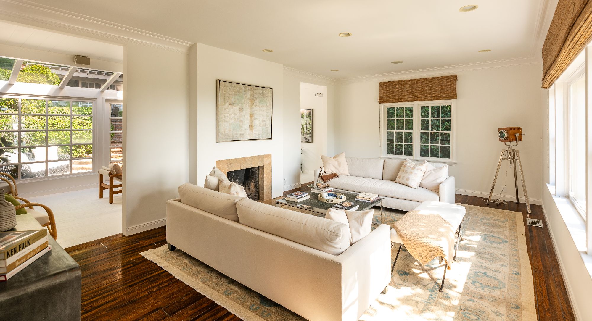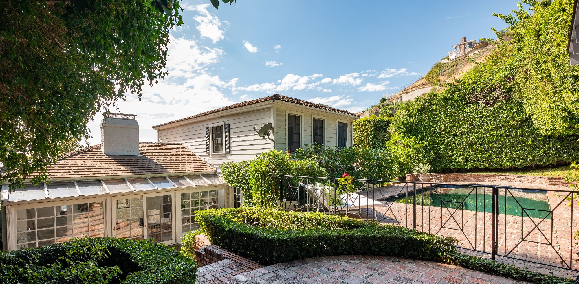 GORGEOUS TRADITIONAL IN PRIME SUNSET PLAZA. Tucked away at the end of a quiet cul-de-sac, this timeless traditional estate blends classic sophistication with modern refinement. A private driveway leads to a sun-drenched residence surrounded by lush greenery and complete privacy just moments from the heart of the Sunset Strip. Inside, a sweeping staircase introduces the home's graceful interiors. The expansive living room captures picturesque city views and flows seamlessly into the formal dining room. A bright sun-room offers the perfect setting for both intimate gatherings and large-scale entertaining. At the heart of the home, a sleek custom Minotti kitchen impresses with concealed appliances, bespoke cabinetry, and abundant storage delivering a clean, contemporary aesthetic. The main level features two bedrooms, while the upper floor hosts two spacious ensuite bedrooms, including a luxurious primary suite with dual walk-in closets and city vistas. Outdoors, discover a private entertainer's paradise - expansive terraces, a resort-style pool with multiple lounging areas, and a chic cabana enveloped by mature landscaping. Perfect for serene relaxation or glamorous entertaining under the stars. A rare offering of elegance, privacy, and comfort in one of Los Angeles' most coveted enclaves, just minutes from world-class dining, shopping, and nightlife on the iconic Sunset Strip.