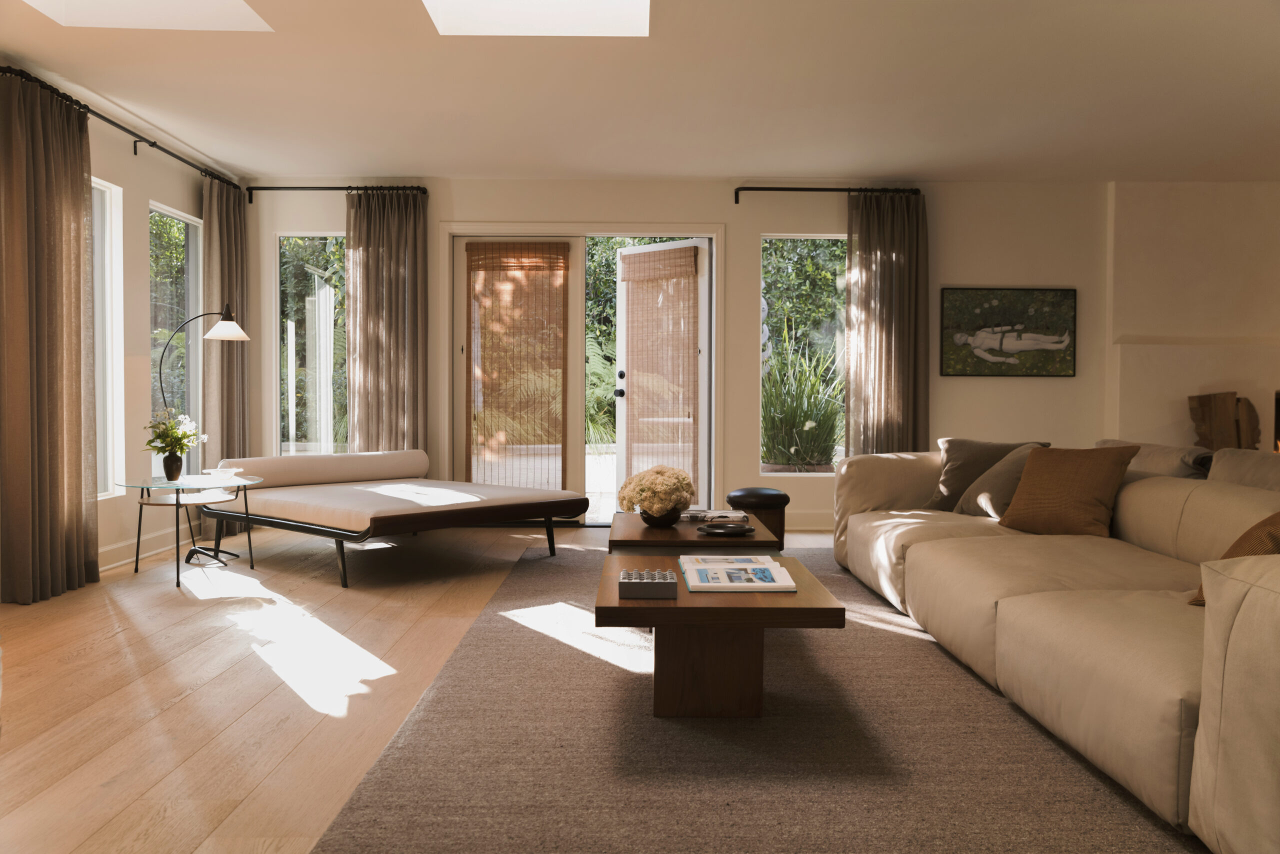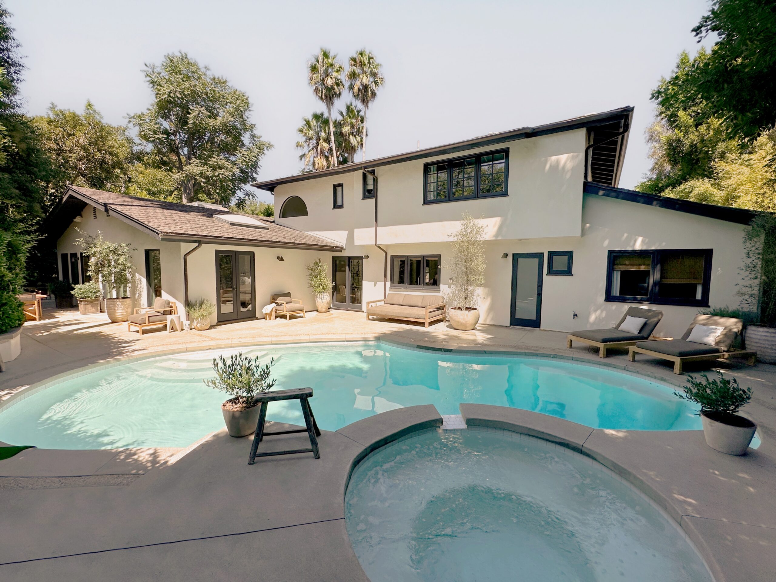 Experience sophisticated design, unparalleled comfort, and privacy at this reimagined celebrity compound in Sherman Oaks, South of the Boulevard. This residence, recently redone to perfection by renowned interior designer Chad Wood, spans approximately 3,400 sqft and features 4 bedrooms and 4 bathrooms on a generous 13,457 sqft flag lot. A 120-foot-long gated driveway and lush greenery ensure ultimate privacy. Pass through two elegant olive trees to discover a home adorned with exquisite finishes, including imported Spanish wide-plank natural oak hardwood floors that exude luxury and refinement. The professional-grade kitchen is equipped with Viking appliances and an oversized hardwood island. The spacious great room boasts a fireplace, skylights, walls of glass, and French doors leading to the backyard. The outdoor oasis features a large patio for al fresco dining, a swimming pool, spa, and a flat lawn, creating a perfect retreat for relaxation and entertainment. This exceptional property provides a private sanctuary that embodies the pinnacle of modern elegance in the heart of Sherman Oaks.