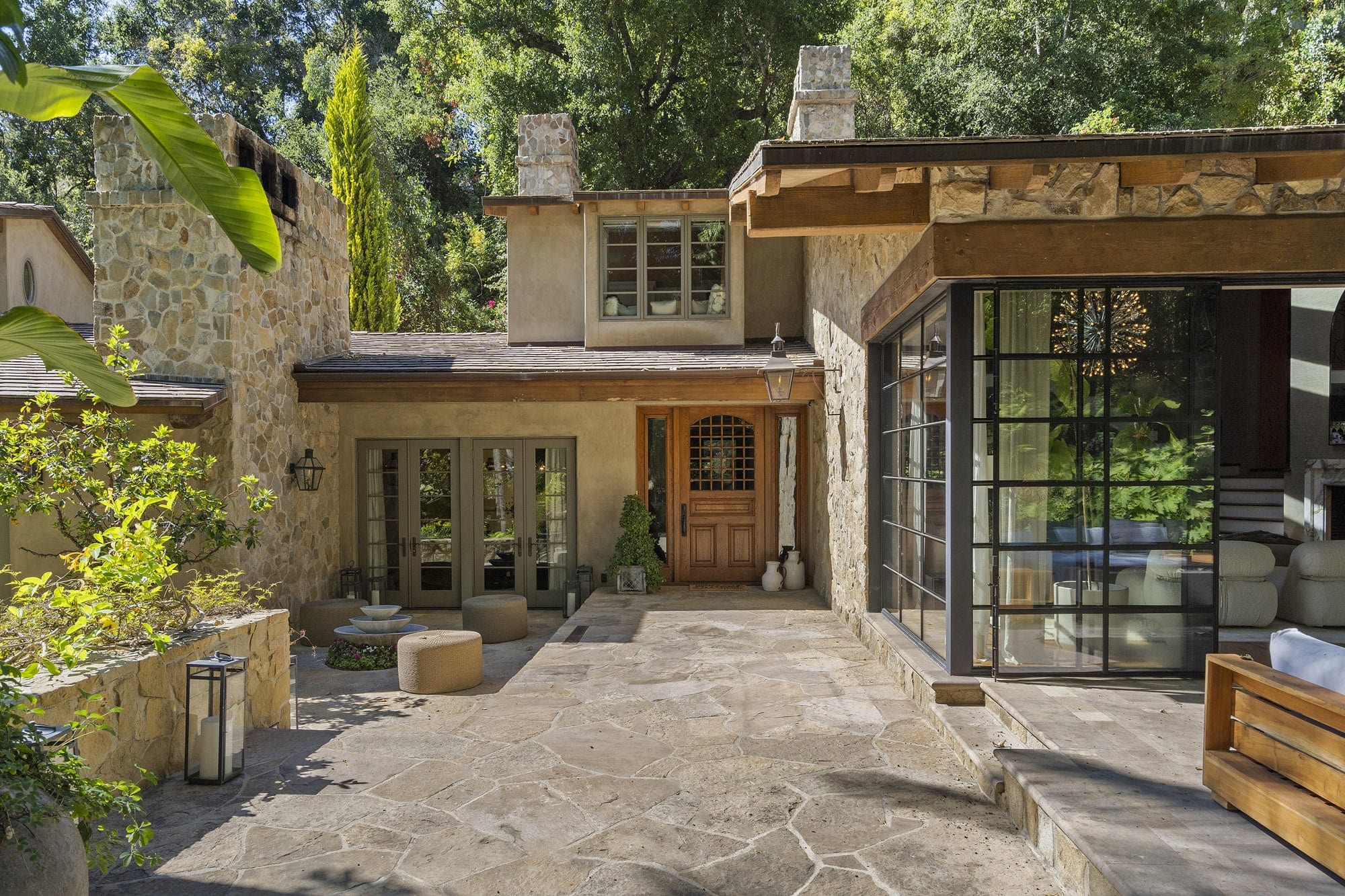 A rare and extraordinary estate moments from the Bel Air Hotel. Set back behind gates on 8 awe-inspiring acres. Originally designed by iconic architect Samuel Marx and re-imagined into a masterful one of a kind multi structure French Country refuge. Incredible use of stone, woods and surrounded by nature elements. The main level has living room with high ceilings, bar, fireplace and steel windows and doors opening to stone terraces.Formal dining room, chefs kitchen with built in breakfast area and stone fireplace. Large family room/game room with bar opens to terrace with 3 sided infinity edge pool. All rooms open to large terraces with lush views. Lower level lounge and 30 seat screening room are perfect for movie nights. Upstairs has beautiful office/study, massage and guest room. The Primary suite wing includes a library/sitting room, fireplace, his & hers dressing rooms and gorgeous baths all opening to private landscaped terraces and tranquil cascading stream. The expansive grounds include a great guest house/studio/gym, 100 seat amphitheater, pogoda with firepit, organic vegetable garden, entertainment pavilion with full kitchen, a private lake with sandy beach & outdoor shower. Another separate guest cottage, large motor court, additional parking, massive lawn area and completely surrounded by specimen plants and mature trees. A one of a kind lifestyle impossible to duplicate! Private hiking trails and destinations. Plans for additional rooms. Plans for another structure. Final approvals are in process for additional square footage/structures. An extraordinary opportunity adding great current and future value!