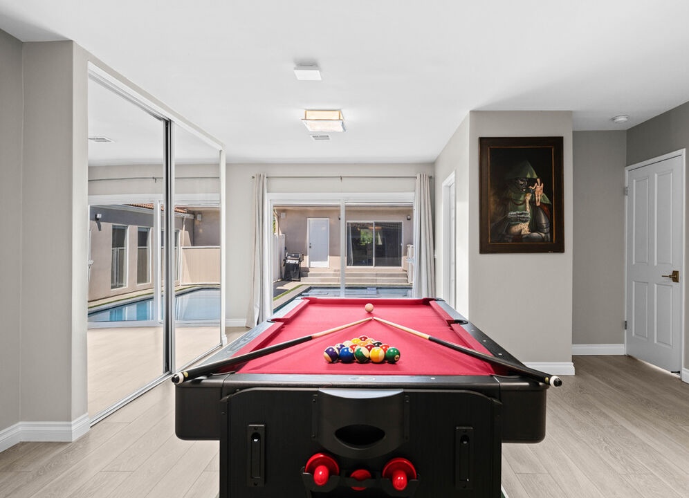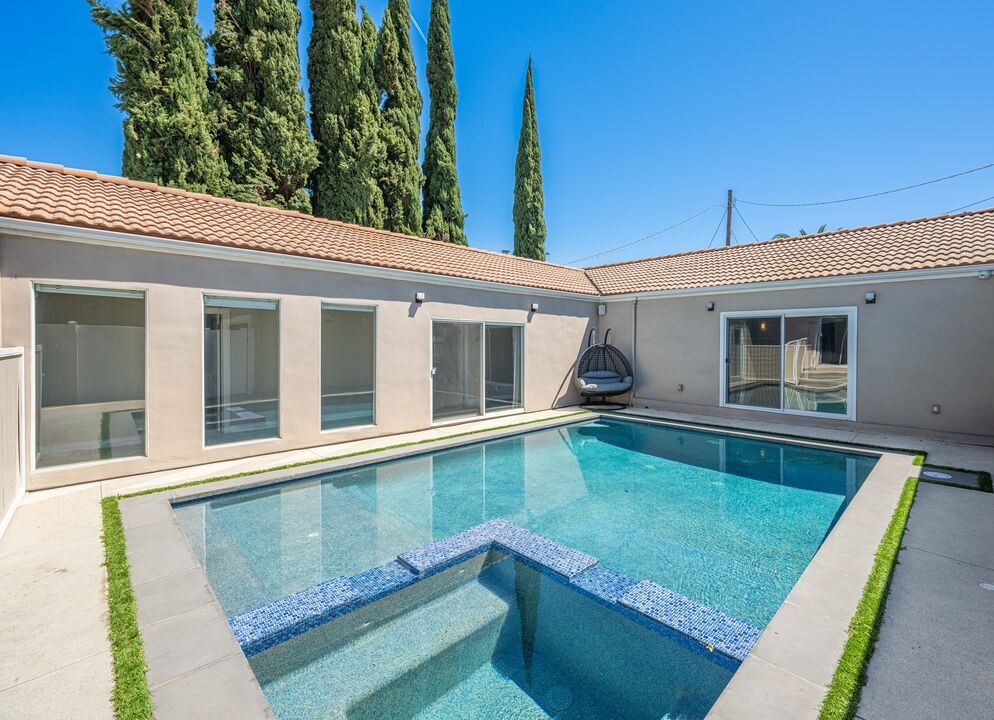 Tucked away in one of the most coveted zip codes of Sherman Oaks, this breathtaking home is a masterpiece of modern luxury! Step inside and be instantly dazzled by the flood of natural light pouring through every window, illuminating a flawlessly designed floor plan that perfectly blends style, functionality, and serenity. At its heart lies a chef's dream kitchen, exquisitely appointed and ready to be the epicenter of lively gatherings and gourmet experiences.The front wing offers a cozy den, two full bathrooms, and two charming guest bedrooms, while the remaining oversized bedrooms, along with the expansive living and dining areas, embrace a private courtyard that features surround sound and a glistening pool, evoking the feel of a five-star retreat. The primary suite is nothing short of extraordinary, boasting a wrap-around walk-in closet and a custom shoe and purse closet that would make any fashion lover swoon.Packed with top-tier amenities, this home takes luxury living to the next level. Enjoy your own private gym, complete with a rejuvenating sauna, challenge friends in the game room with a top-tier gaming table, or unwind by the sun-soaked pool. Whether you're entertaining or simply enjoying the peace and privacy, this stunning home is the ultimate escape where every day feels like a vacation!