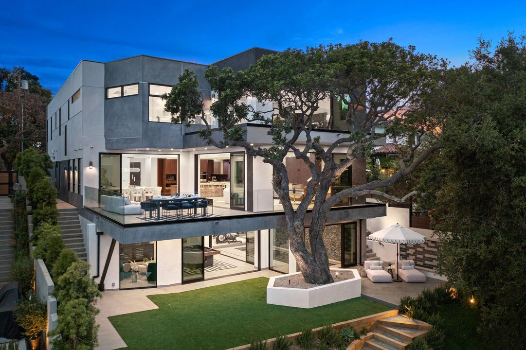 This extraordinary, new residence nestled in the Via Bluffs neighborhood of Pacific Palisades features spacious living, luxe amenities and an amazing outdoor space. Encompassing 7,448 SF, 6 beds and 7 baths, the home displays exquisite views of the Santa Monica Mountains and Potrero Canyon. The home facade is sleek and contemporary with elements of metal, concrete and glass. Inside, the desirable chef's kitchen has a gorgeous Cosentino island and large pantry. Attached is a chic living area with a gas fireplace and indoor/outdoor dining rooms. Opportunities to luxuriate abound with an indoor pool/spa, recreation room, theater and gym. Outside, find an enchanting, terraced yard with a custom fountain, BBQ bar and large deck. The primary suite features dual walk-in closets and a spa-like bathroom. Residents will enjoy a 2-car garage, two laundry rooms and an elevator. This pristine home beckons a life to live to its fullest, setting a scene of immaculate beauty and amenities.