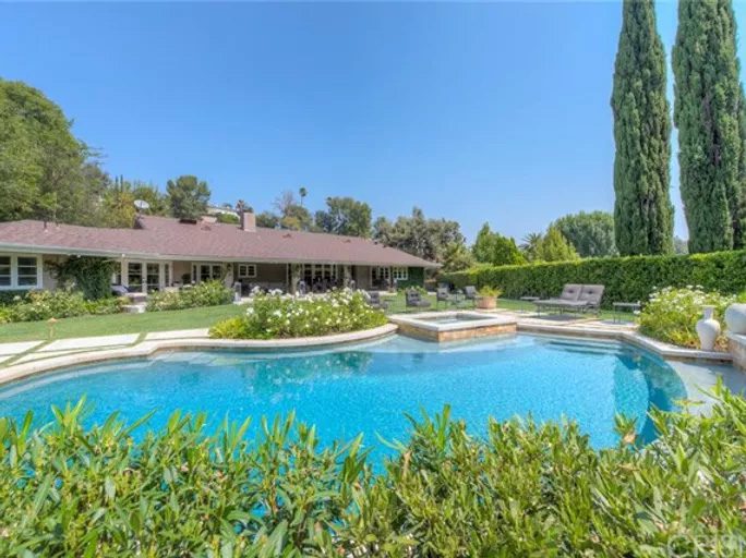 Magnificent resort style 1 level showplace on Royal Oaks cul-de-sac. Impeccable condition with a seamless blend of traditional lines and contemporary improvements and amenities. A sweeping circular drive leads to the impressive front entrance. The gracious formal entry flanks both formal living and dining rooms of exceptional dimensions. Formal dining has built in serving wall/cabinets. True gourmet kitchen boasts a professional Wolf range and ovens among other stainless appliances. Breakfast bar & breakfast room with built-in office area flow to the open beam ceiling great room with french doors to expansive covered veranda with poured Terrazzo floors overlooking the lush private flat grassy yard and pool/spa & water wall. All bedrooms are en-suite including exceptional master with large walk-in closet & spa like bath with rain/steam shower, soaking tub & dual sinks. 4th bedroom with separate entrance & pool bath. Located in the prestigious Lanai Rd/Hesby Oaks School districts, this home is ideally located commuter close to the Westside & just minutes from the finest restaurants.