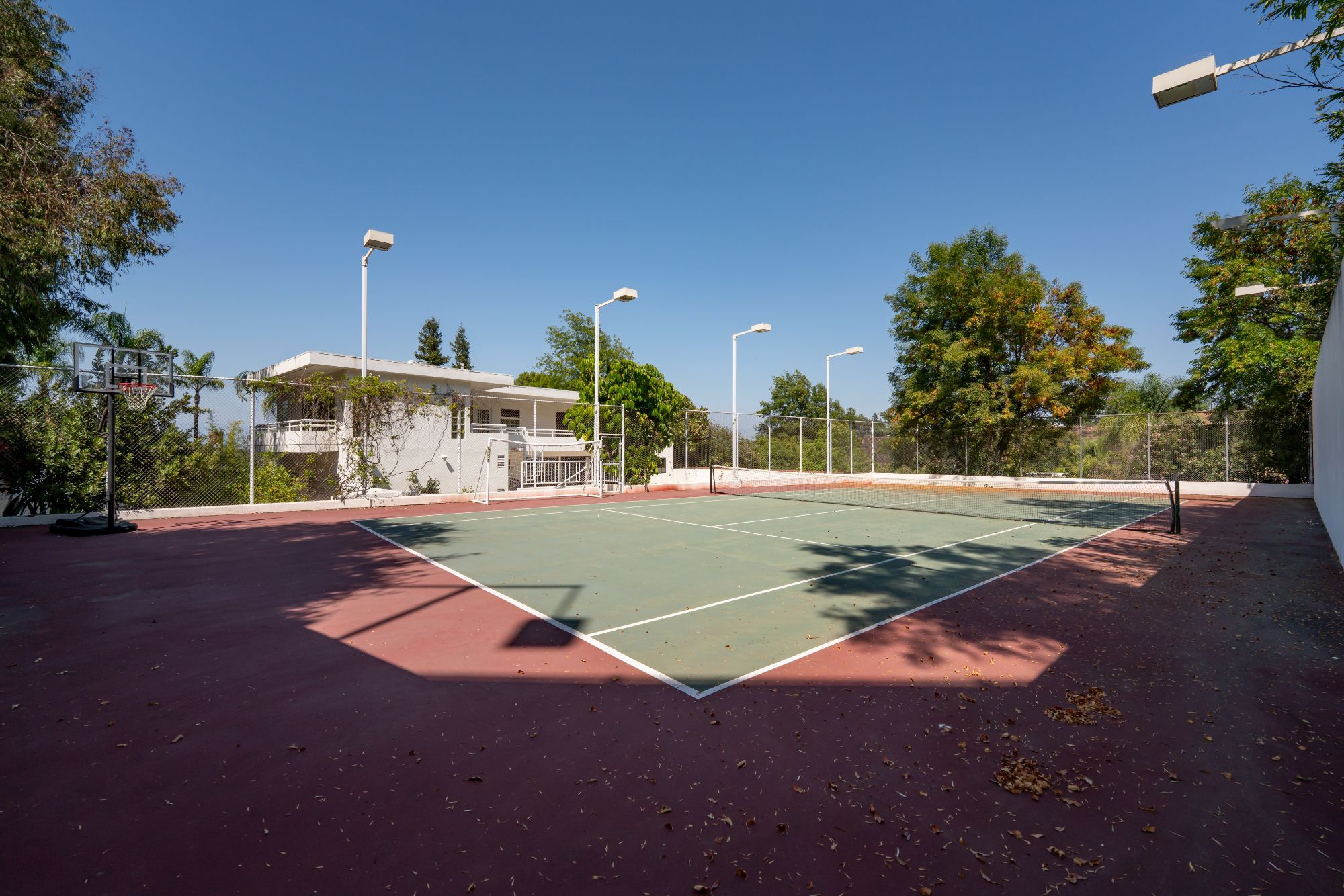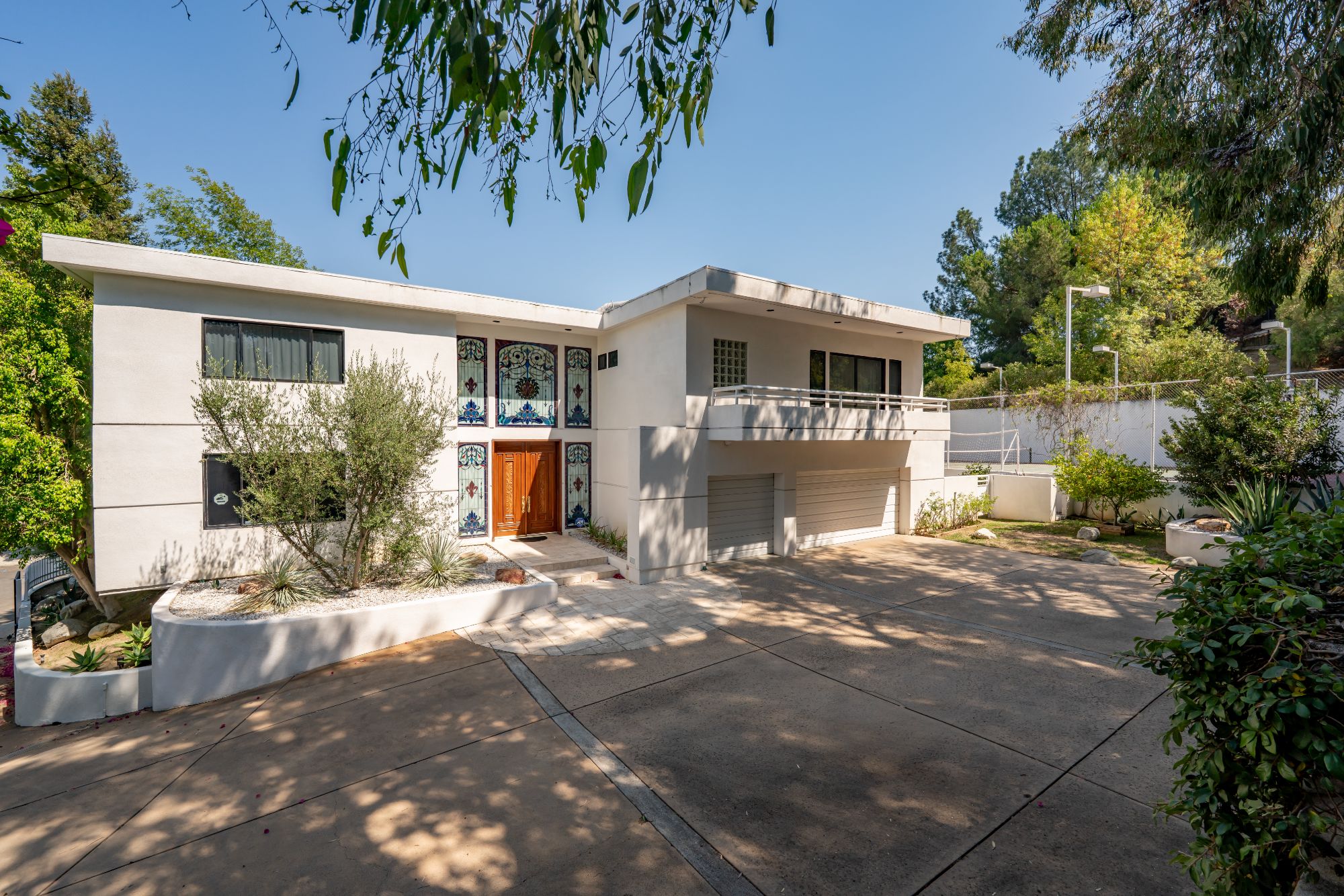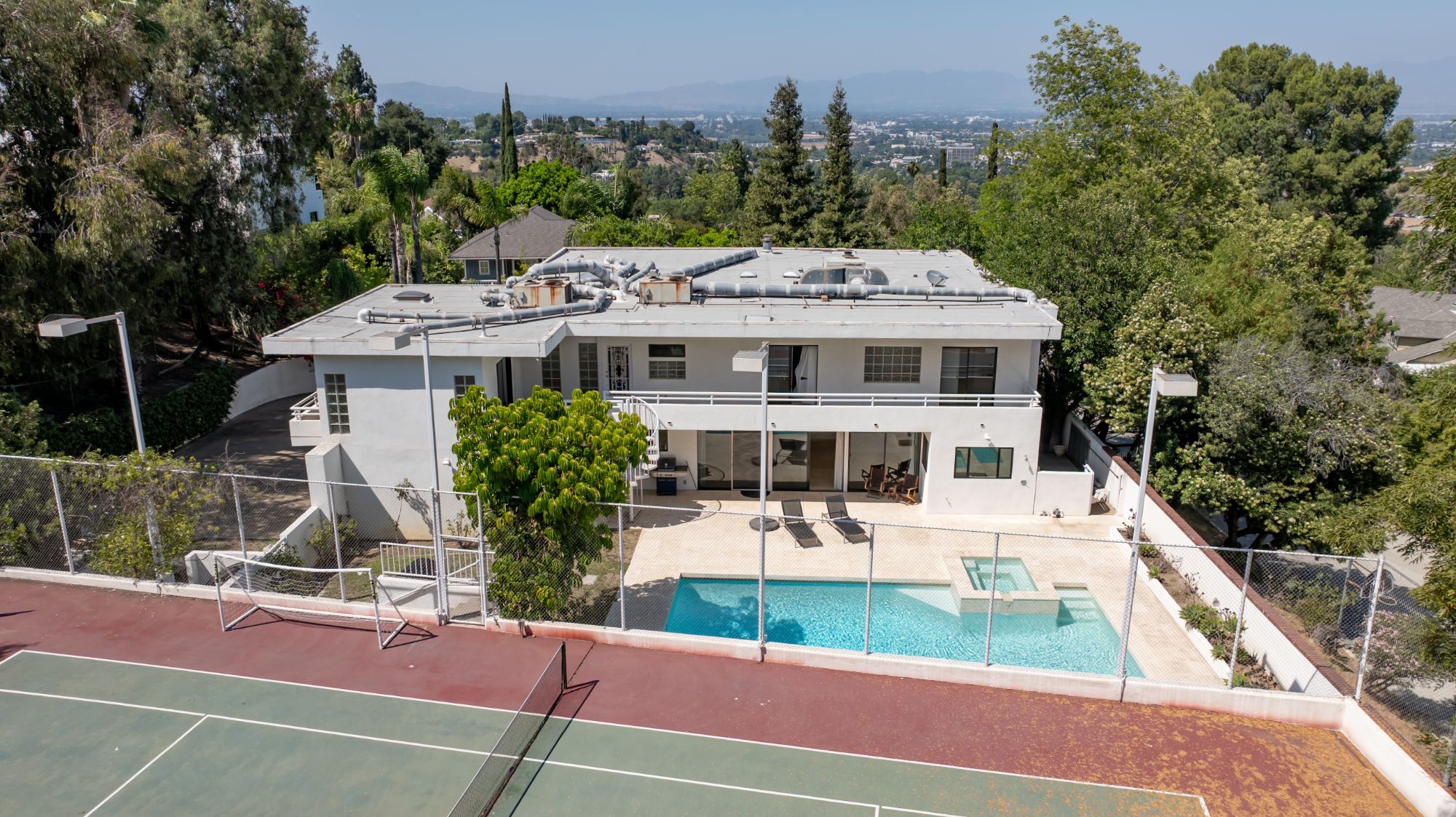 Private Gated Villa with Tennis Court in Royal WoodsTucked away on a quiet cul-de-sac in the coveted Royal Woods of Sherman Oaks, this gated villa offers the perfect blend of privacy, scale, and lifestyle. A true urban oasis and entertainer's dream, the nearly 20,000 sq ft lot features an elevated flat pad with unmatched seclusion, hillside views, and endless opportunities for gatherings. The grounds include a motor court, 3-car garage, sparkling pool, and private tennis court.Inside, approximately 5,000 sq ft of light-filled living space is defined by soaring ceilings, wide hallways, and expansive rooms. The open family room with wet bar flows seamlessly outdoors to the pool and tennis court, ideal for entertaining. Upstairs, the luxurious primary suite is joined by three spacious en suite bedrooms. On the main level, a den/office and fifth bedroom sit just off the entry, perfect for work-from-home or guests.With easy Westside access via Sepulveda or the 405, this high-impact estate combines convenience with complete serenity.