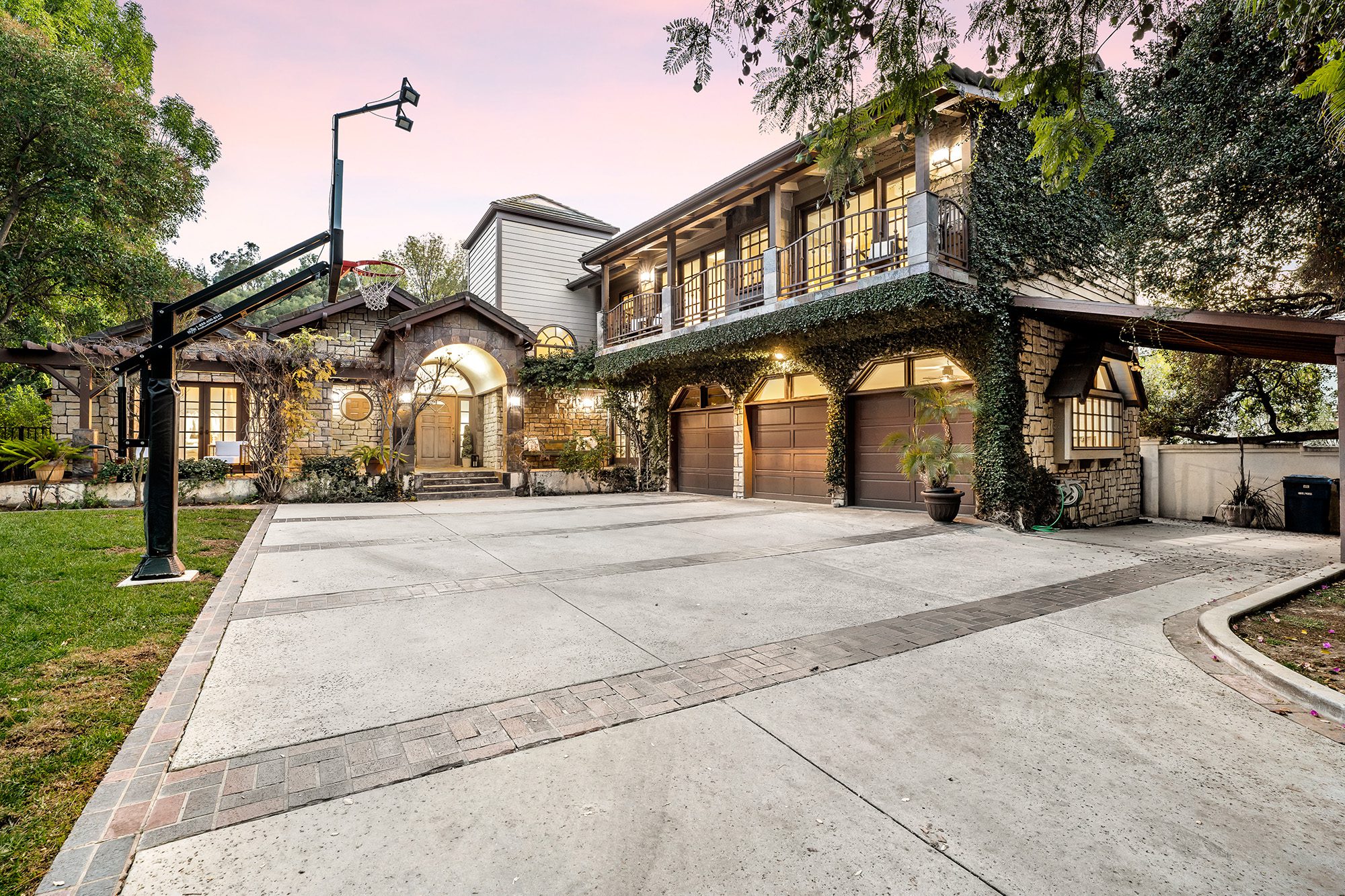 Lovely interior, lush exterior 15952 Valley Vista Boulevard has it all. With 5 bedrooms, 4 full bathrooms, and 2 half-bathrooms, enjoy a thoughtful 4,687-square-foot floorplan. The residence is gated and private, curating a life of ease. Surrounded by greenery, the elegant facade immediately makes an impression with a long driveway and vine-covered stonework. A grand arched entryway welcomes guests to a spacious stone porch and into the sophisticated home. Inside, high ceilings and recessed lighting create a bright, airy space. Wood floors glisten and dual living areas feature glass doors that open to the outdoor oasis. Outside, enjoy a heated pool and spa, covered dining area, lawn, an outdoor barbeque, and an impressive stone fireplace. Greenery provides a private screen. A dining area neighbors a spacious kitchen with granite countertops, Viking appliances, an island with bar seating, and floor-to-ceiling white cabinetry. A family room beckons relaxed evenings spent at home. A curved stairway leads upstairs. Each bedroom provides its own charm and beautiful design details. Balcony spaces offer the perfect places for a morning cup of coffee. A laundry room with cabinetry makes chores a breeze. Within the Lanai school district, the prime location is near Ventura Boulevard s shopping, restaurants, and entertainment.