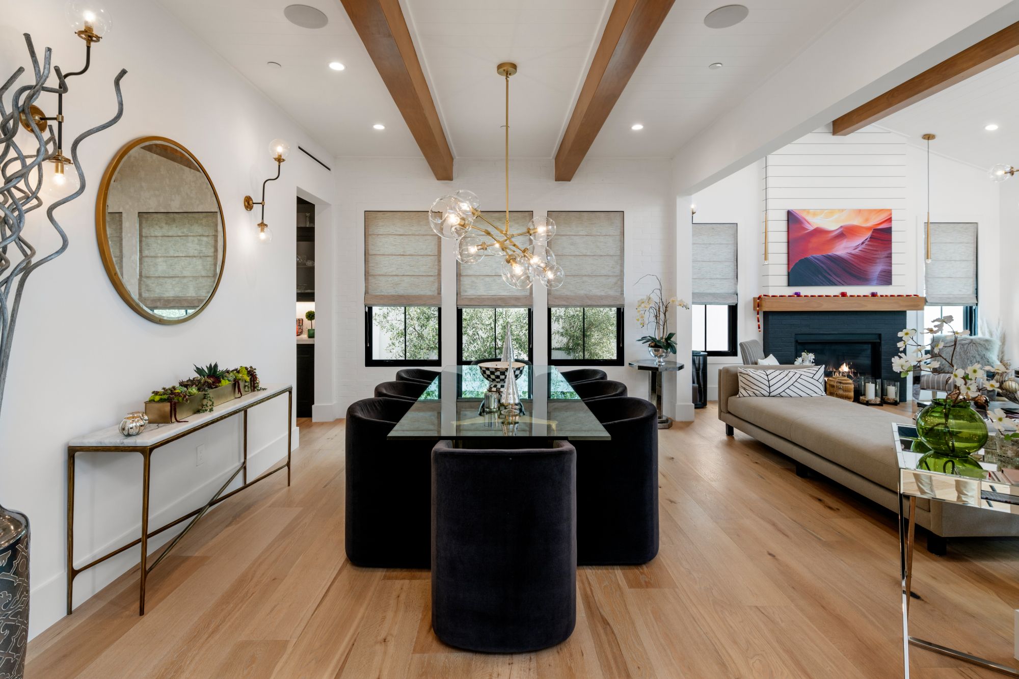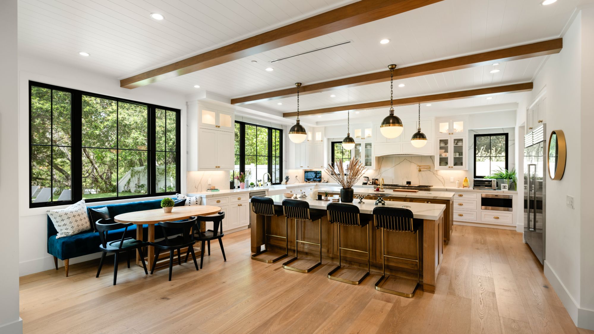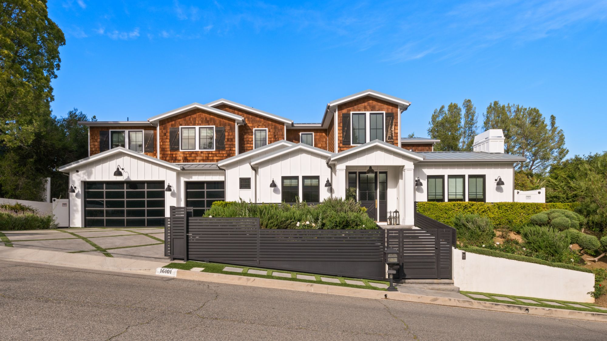Welcome to this stunning modern-traditional home ideally situated on a quiet cul-de-sac in the highly sought-after enclave of Royal Oaks, Encino. Built in 2018, this newer construction (not a remodel) offers a limited builder warranty and is designed for the discerning buyer who values both elegance and modern conveniences. With impeccable curb appeal, the gated property immediately captures attention, inviting guests into a soaring foyer with high ceilings and European oak floors throughout. The elegant living room features a grand fireplace, seamlessly flowing into a formal dining room perfect for hosting. A glass-enclosed private office with custom built-ins provides a refined workspace with exquisite finishes. The heart of the home is the chef's gourmet kitchen, a true masterpiece. It boasts double islands with Calcutta quartz counters, a 60-inch Wolf range, a 72-inch built-in Sub-Zero fridge, a large walk-in pantry, and a butler's pantry. The spacious breakfast area is adjacent to a cozy family room, which showcases beautiful built-ins and a fireplace. Floor-to-ceiling pocket glass doors open to a sprawling entertainer's yard, creating a perfect indoor-outdoor flow. The main floor also offers a state-of-the-art home theater, a stunning powder room, a mudroom, and a wrought-iron, glass-enclosed wine cellar.Upstairs, the romantic master suite is a true retreat, featuring a sitting area and a dual-sided fireplace. The two expansive walk-in closets and a spa-like master bath complete with a soaking tub, glass rain shower, dual sinks, makeup vanity, and two water closets offer ultimate comfort and luxury. The entertainer's yard is a spectacular oasis with a zero-edge sparkling pool and spa, a fire pit, a built-in barbecue, and a pool house with its own bathroom. Thoughtfully designed for modern living, this home includes a full metal roof throughout, all underground utilities, a whole-house water filtration system, and smart home technology with integrated Control4. Additional features include a three-car garage and the option to purchase the home partially furnished. This exceptional residence offers a luxurious lifestyle just moments away from Encino's finest shops, dining, and more.