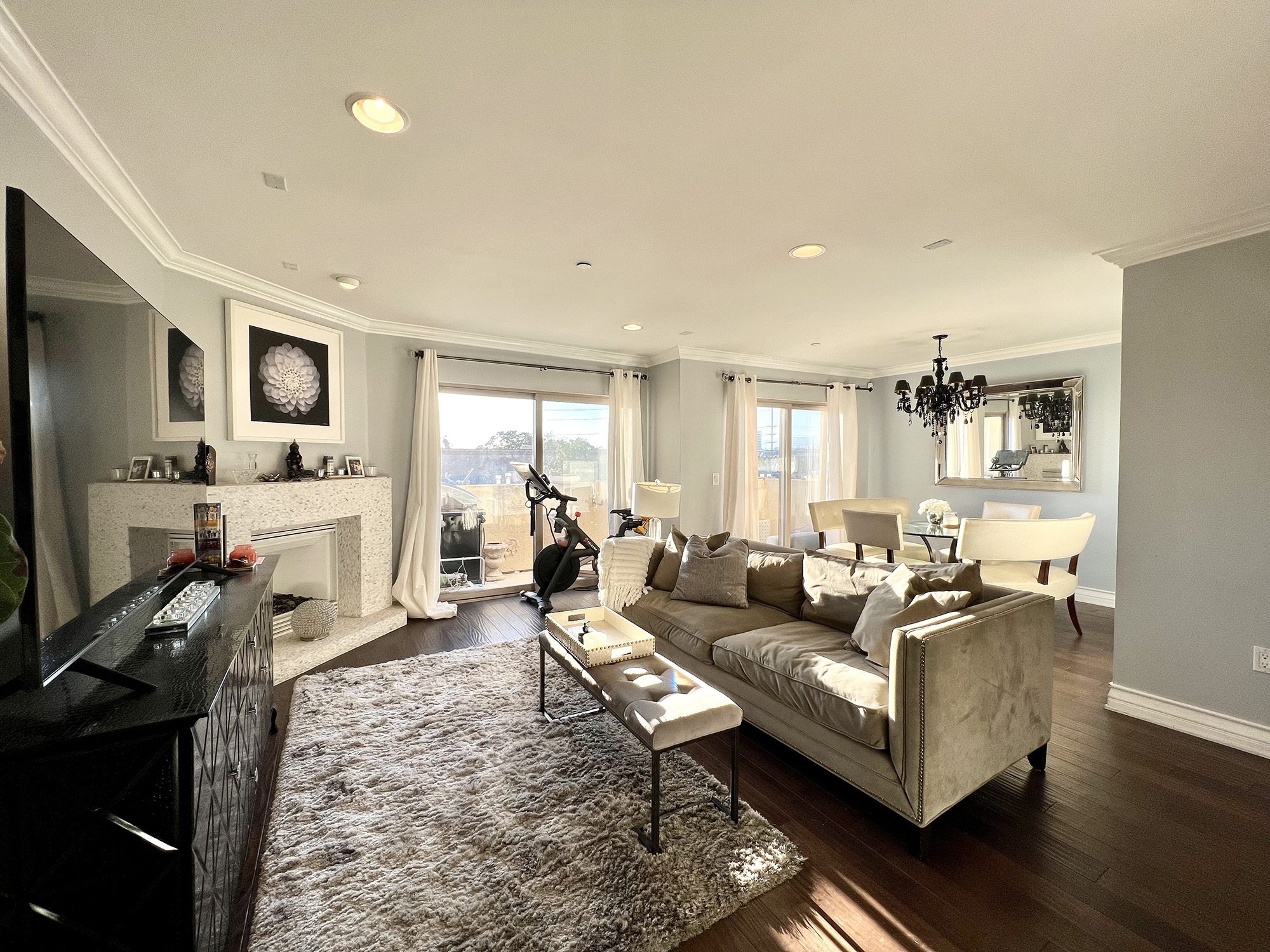Gorgeous PENTHOUSE unit with amazing light and views in a central location. 2 BALCONIES, open living room and FIREPLACE. 3 Bedroom 2.5 Bath with a great kitchen and warm finishes. 2 tandem parking spaces in a gated underground garage with 4 guest spots. Getty views to the north and from the primary suite. Primary suite includes standing shower and large bath with walk-in closet. In-unit, stacked laundry. Fully functioning elevator and gym. This is a great family condo, single couple or roommate living situation.