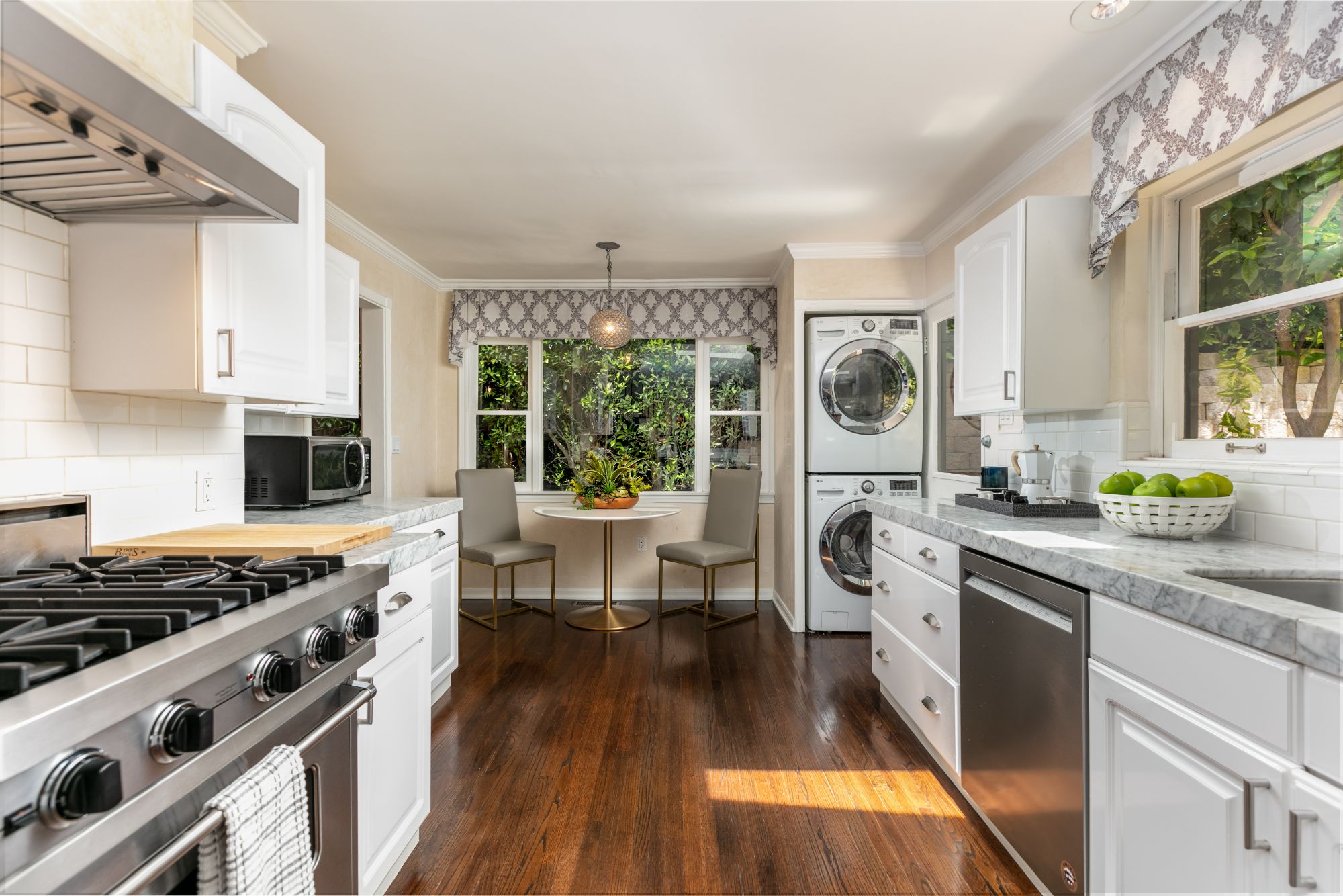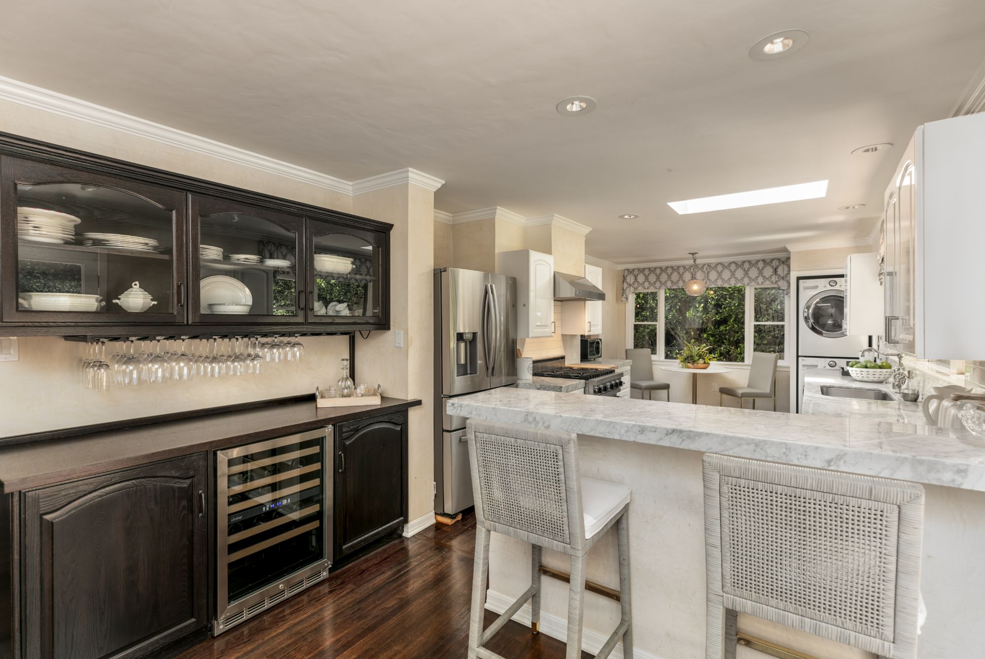 Wonderful opportunity to own a beautiful home with an incredible potential for adding value! Quotes are available for adding a pool/spa, 700+ SQFT of additional living space or a spectacular rooftop deck with sweeping views! Blending timeless charm with modern elegance, the expansive primary suite spans the entire upper level and includes a spacious sitting area, private balcony, and luxurious en-suite recently remodeled bathroom, 3 custom closets, and captivating views! Downstairs offers two generously sized bedrooms and a full bathroom with separate tub and shower. The home features rich dark hardwood flooring, some walls with Venetian plaster, crown moldings throughout, and a chef's kitchen with Carrera marble countertops and breakfast bar, eating area, and stainless steel appliances with Viking range. The private, grassy backyard is perfect for relaxing or entertaining and offers ample space for a pool and spa. Mature landscaping surrounds the entire home. The front is gated, walled, and hedged for complete privacy.! A truly special home at a competitive price! Owner is ready to sell!