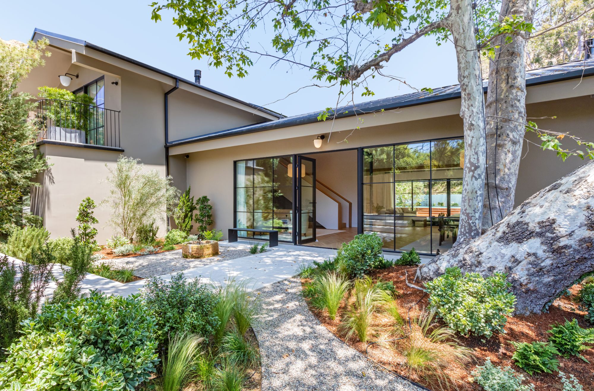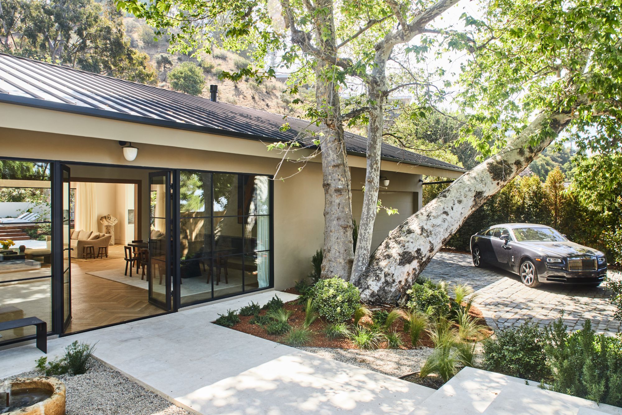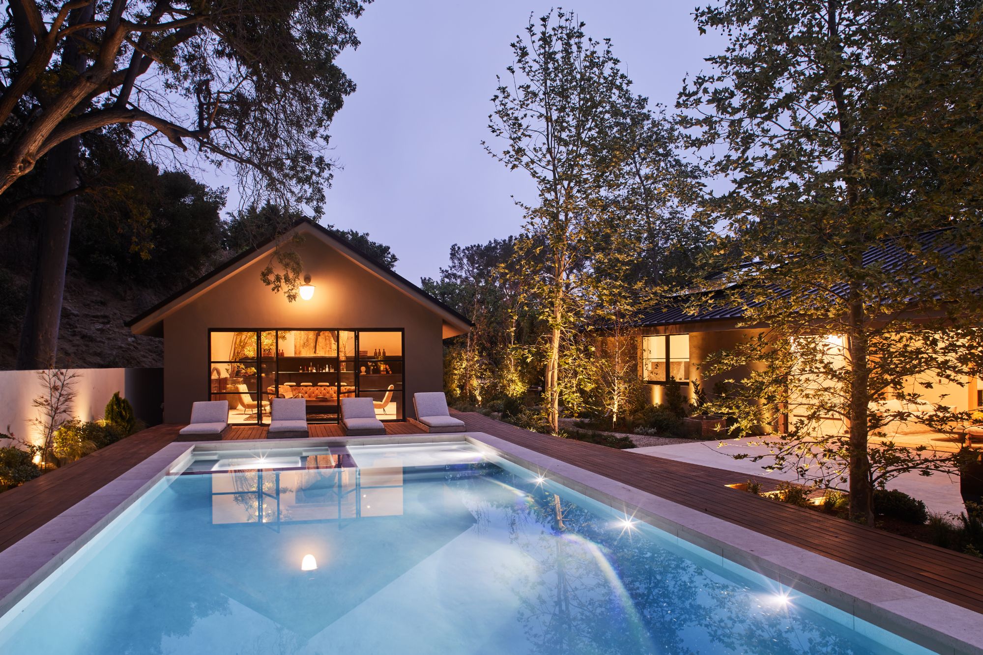 Designed and built by OSKLO, this ultra-private and tranquil Belgian-inspired farmhouse in a forested setting of 100-year old Sycamore trees with city light views on a vast, exclusive flat lot in the famed Bird Streets. A one-of-a-kind compound set behind cedar gates and mature hedging, a cobblestone driveway leads to a stunning 7,620-SF retreat containing the foremost of interior and architectural design including dramatic custom stonework, herringbone white oak floors and custom metal windows. A warm and welcoming entertainer’s home, exceptional indoor-outdoor architecture is set between a living and dining room with 25-ft. ceiling and full-height windows framing formal, manicured gardens. An ethereal white paneled kitchen features butler’s pantry, chef’s pantry and pocket-windows facing a rear garden. The backyard is one of the biggest in Doheny Estates, stretching from a formal courtyard leading to a private outdoor dining room with pizza oven and outdoor kitchen to a sprawling lap pool, spa and magnificent 15-ft. outdoor fireplace. A separate pool house doubles as a screening room with 1,000-SF bar with blackened-steel pivot windows and views overlooking the main house and pool. Upstairs, a full-floor master suite with office features double balconies, fireplace, breakfast bar, his-hers custom bathroom vanities, soaking tub and perhaps one of the most magnificent showers in LA under a 20-ft. sky dome. Downstairs, 3 oversized bedrooms each features its own bathroom suite with floral views and private outdoor terraces. A design achievement to be treasured for generations in one of the few private compounds in Doheny Estates.