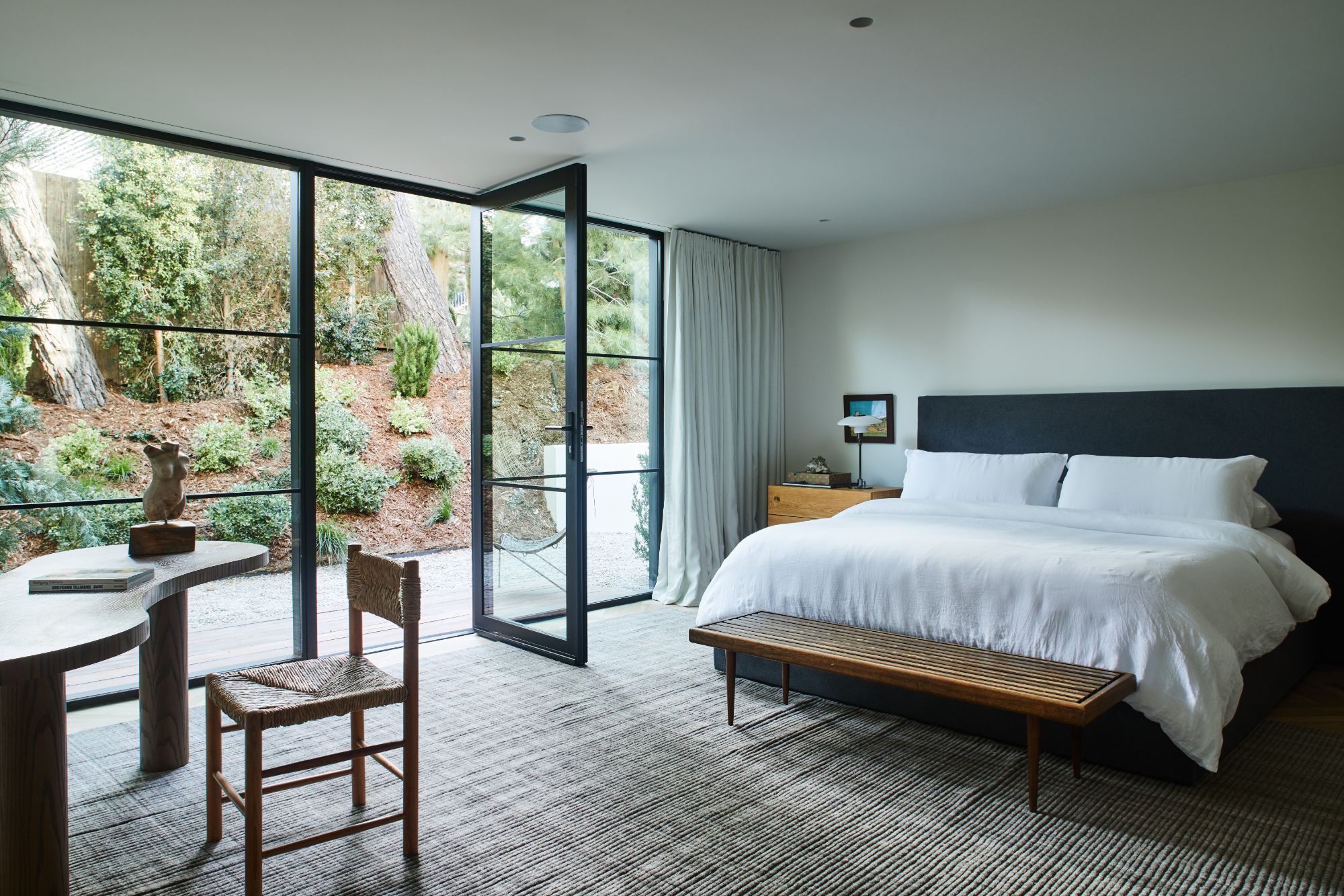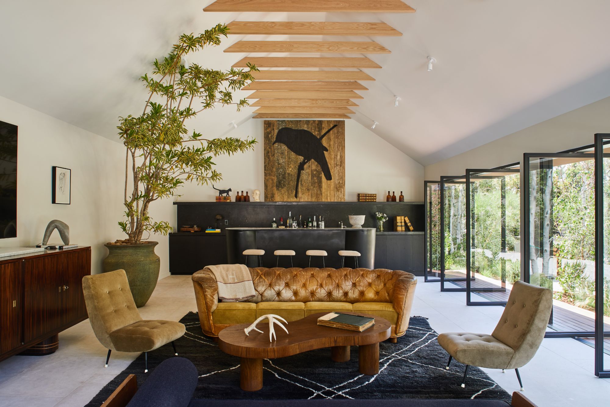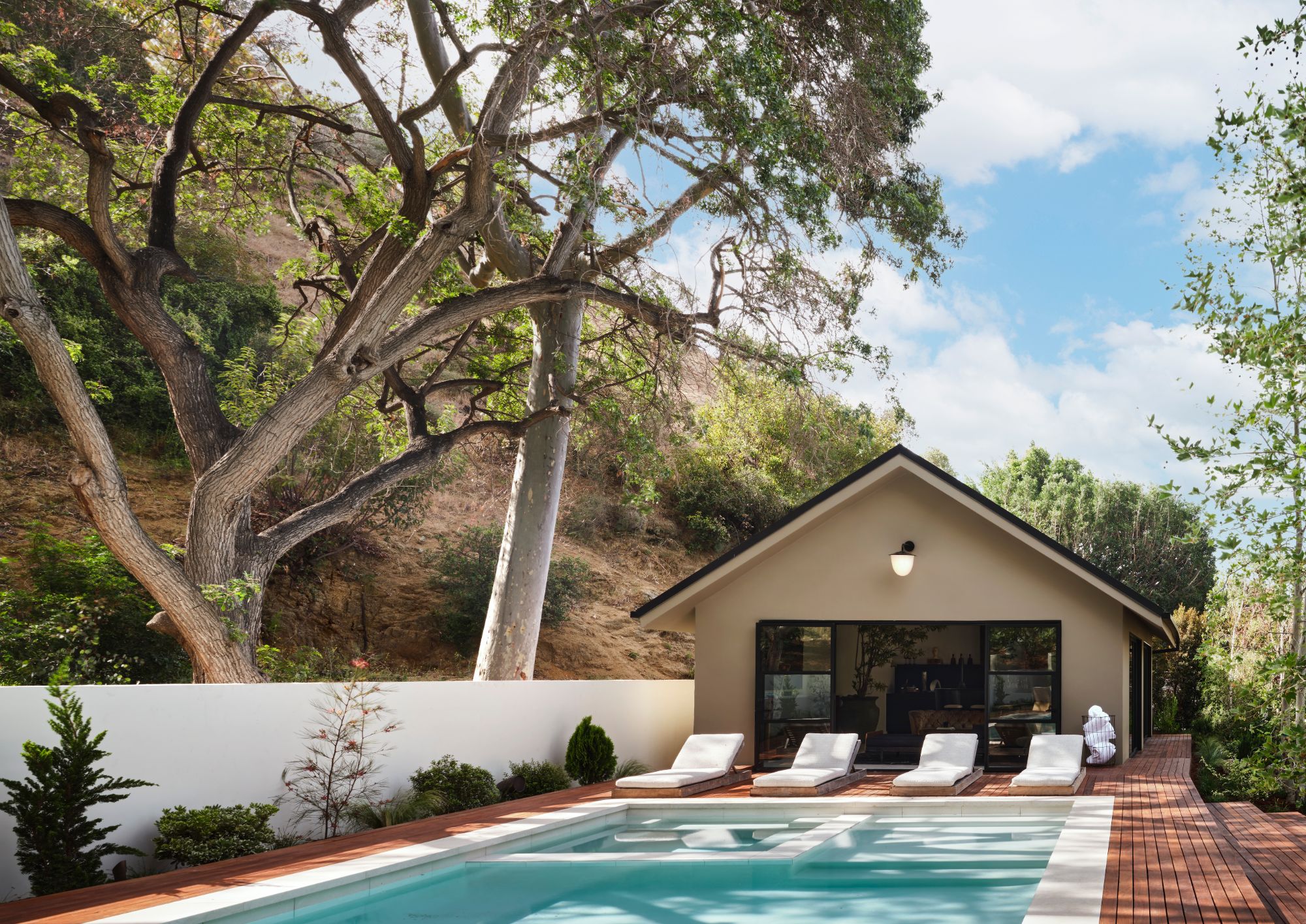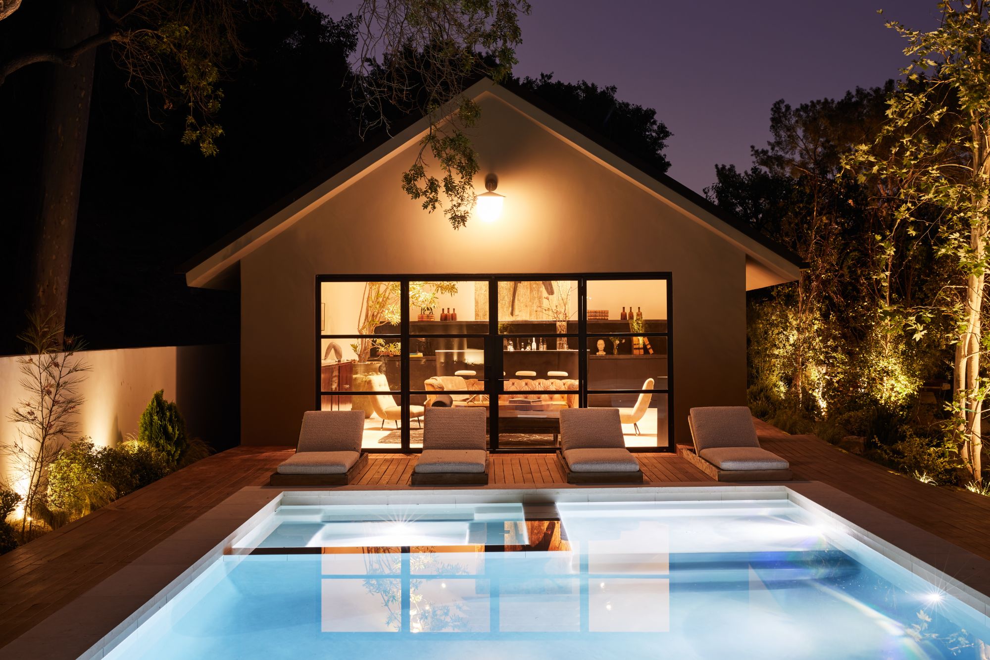 Designed and built by OSKLO, this ultra-private and tranquil Belgian-inspired farmhouse in a forested setting of 100-year old Sycamore trees with city light views on a vast, exclusive flat lot in the famed Bird Streets. A one-of-a-kind compound set behind cedar gates and mature hedging, a cobblestone driveway leads to a stunning 7,620-SF retreat containing the foremost of interior and architectural design including dramatic custom stonework, herringbone white oak floors and custom metal windows. A warm and welcoming entertainer’s home, exceptional indoor-outdoor architecture is set between a living and dining room with 25-ft. ceiling and full-height windows framing formal, manicured gardens. An ethereal white paneled kitchen features butler’s pantry, chef’s pantry and pocket-windows facing a rear garden. The backyard is one of the biggest in Doheny Estates, stretching from a formal courtyard leading to a private outdoor dining room with pizza oven and outdoor kitchen to a sprawling lap pool, spa and magnificent 15-ft. outdoor fireplace. A separate pool house doubles as a screening room with 1,000-SF bar with blackened-steel pivot windows and views overlooking the main house and pool. Upstairs, a full-floor master suite with office features double balconies, fireplace, breakfast bar, his-hers custom bathroom vanities, soaking tub and perhaps one of the most magnificent showers in LA under a 20-ft. sky dome. Downstairs, 3 oversized bedrooms each features its own bathroom suite with floral views and private outdoor terraces. A design achievement to be treasured for generations in one of the few private compounds in Doheny Estates.