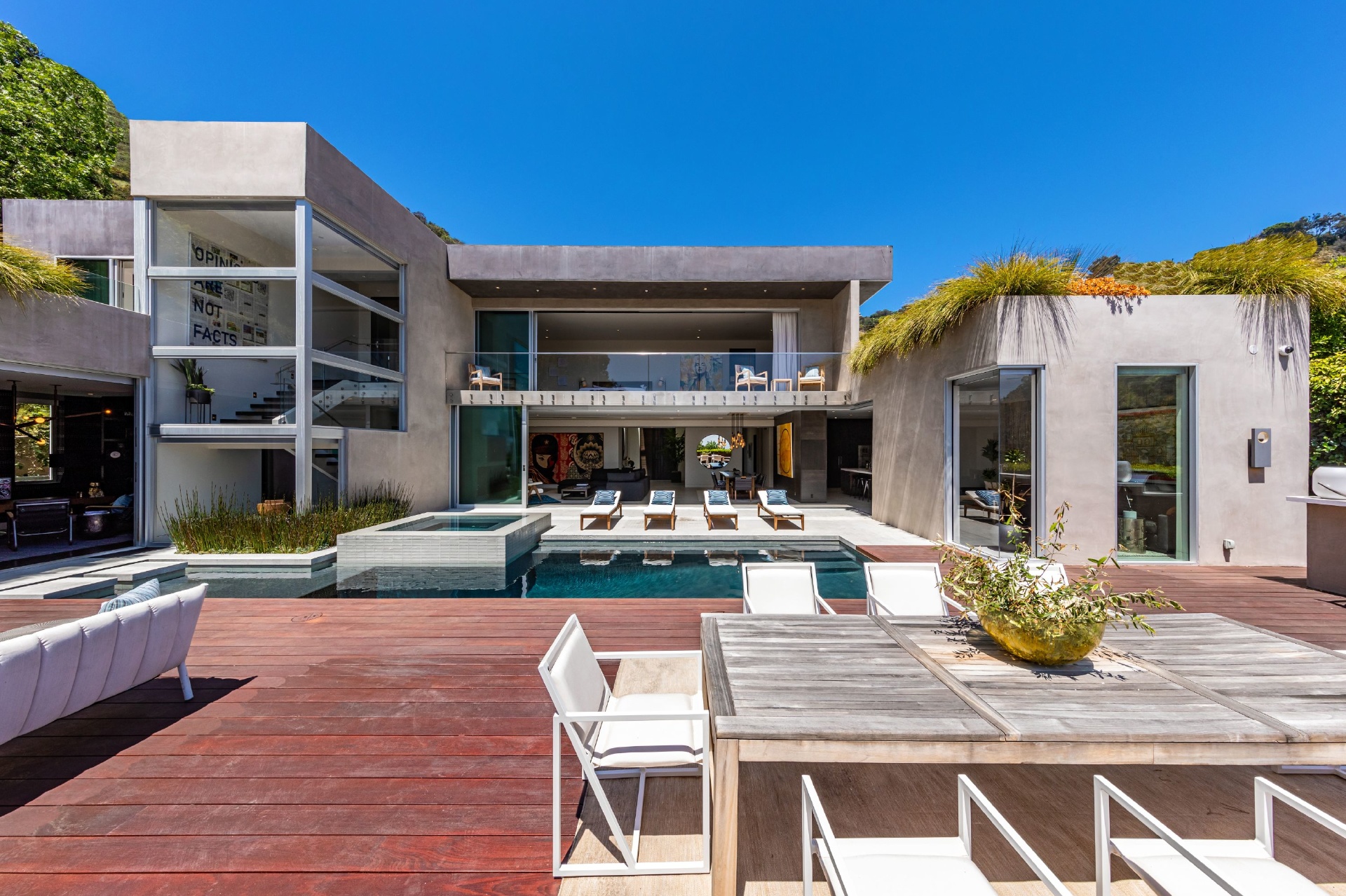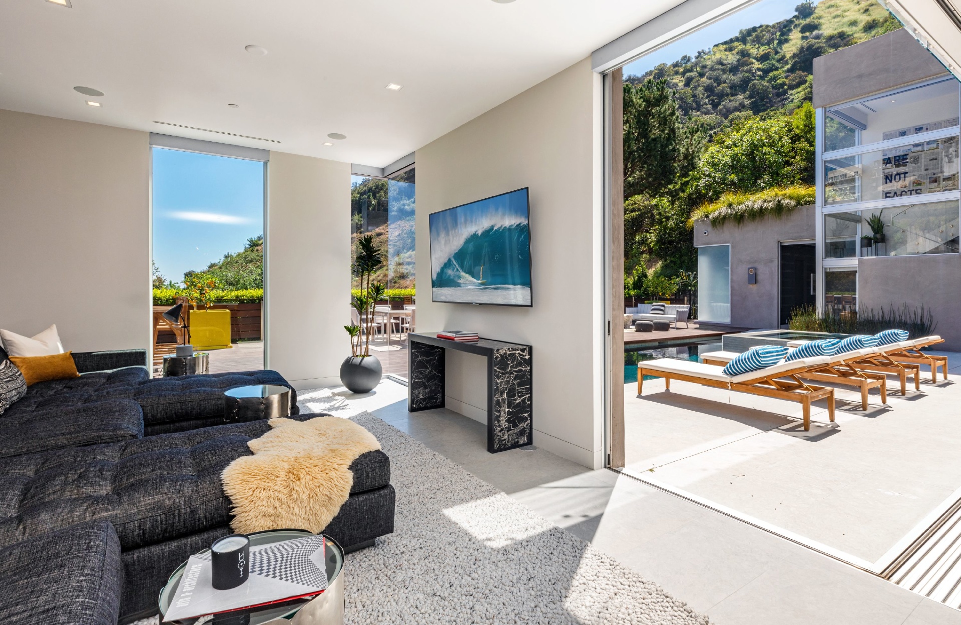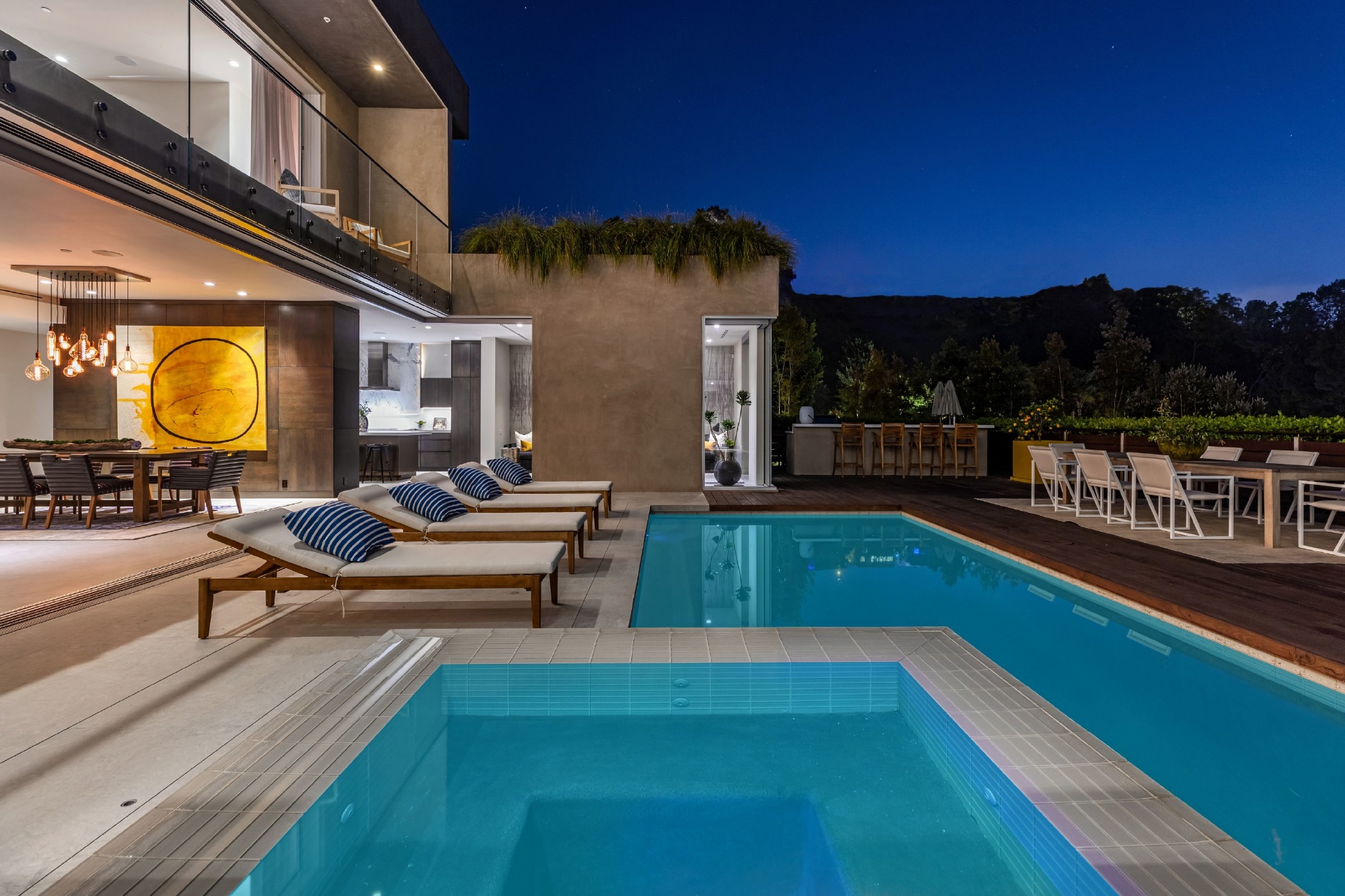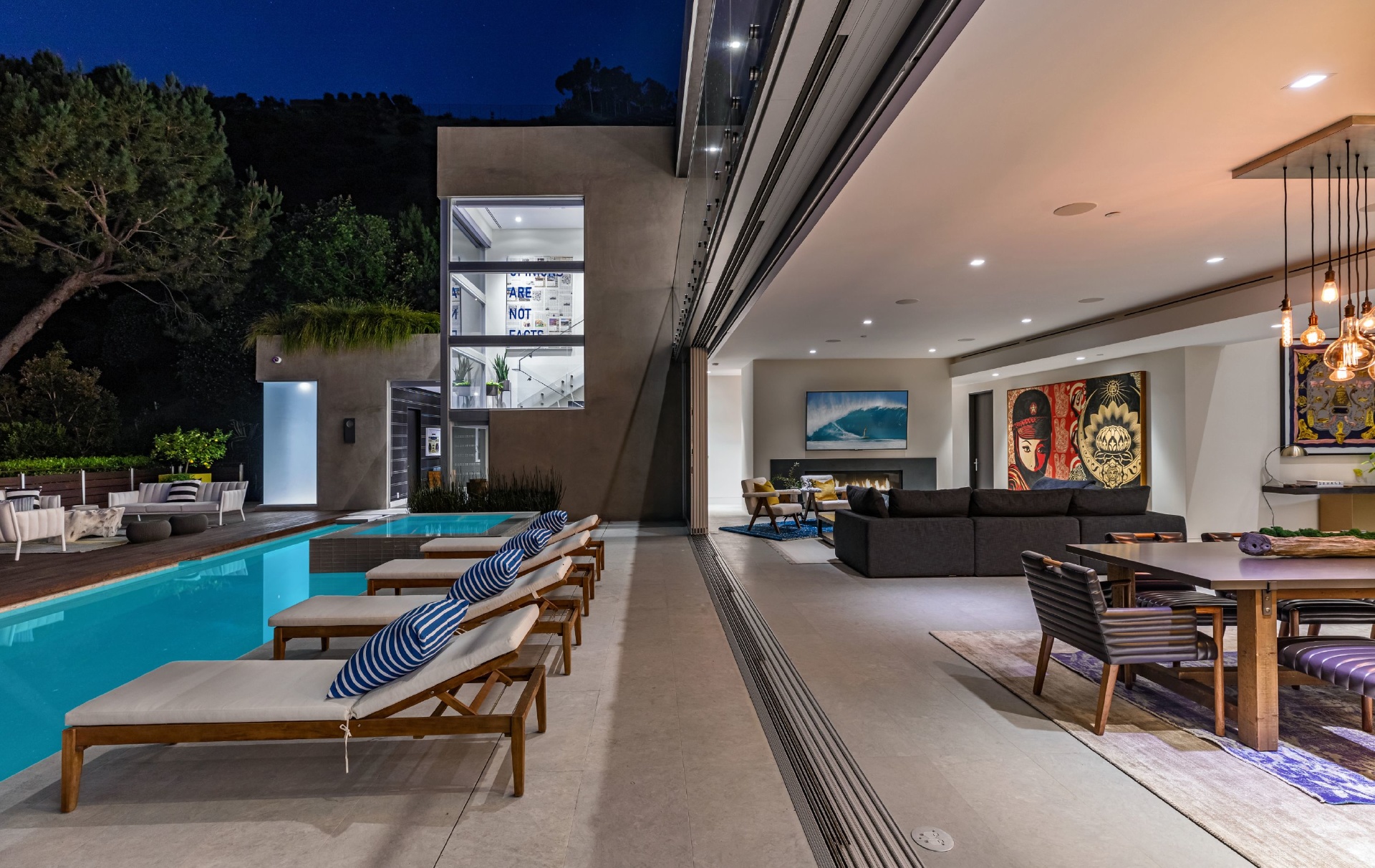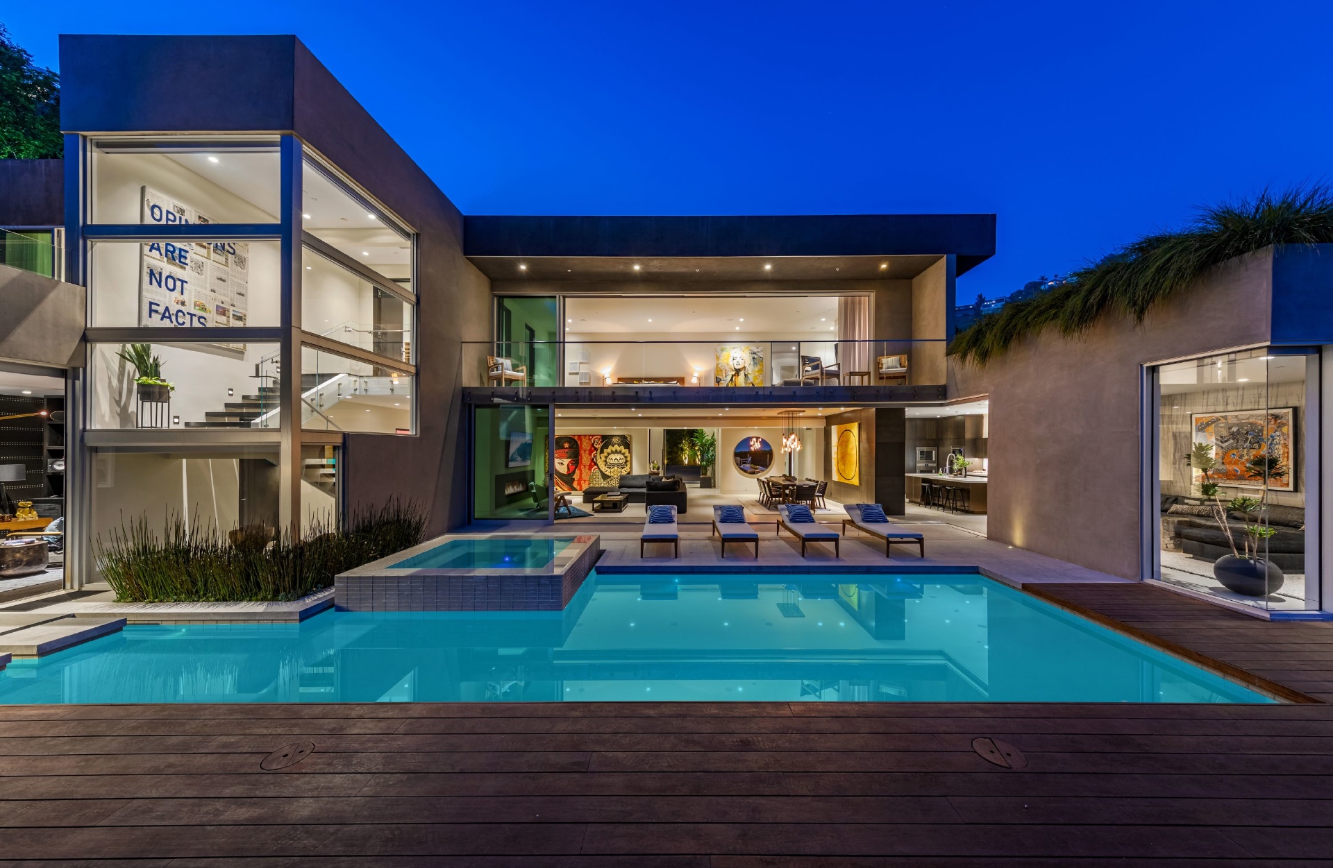 Enter 1709 Rising Glen: A modern estate set in the hills just above Sunset Plaza & the world famous Sunset Strip, minutes from the best shopping, dining & entertainment that LA has to offer. Enter a private & gated driveway to oversized motor court w/room for 10 cars & two-car garage. Step through the front door to a large open concept floor plan living & dining room w/honed limestone floors & Fleetwood glass sliders that open to the pool & entertainment deck. This is quintessential Southern California indoor/outdoor living at its finest. A sleek & modern, gourmet chef's kitchen includes top of the line appliances & adjoining lounge area. A modern floating staircase leads to the second story luxury master suite w/city and canyon views & includes a massive walk in closet, oversized bathroom, 2 private balconies & gym. Lower level includes 4 additional guest suites, a recording studio & large grassy yard/dog run. Experience the pinnacle of style & design and live among the stars.
