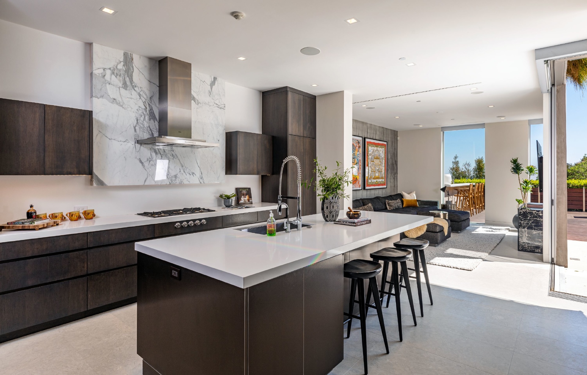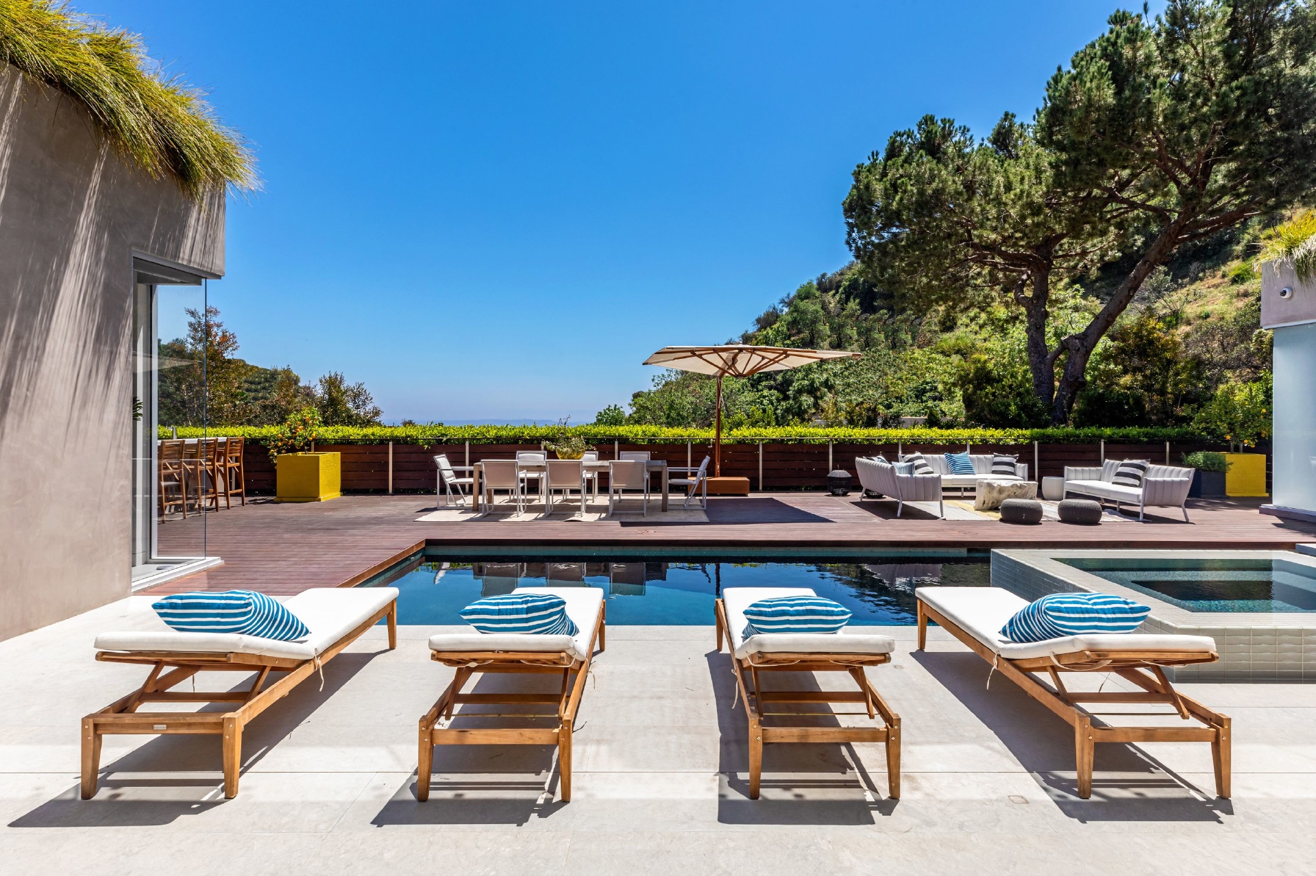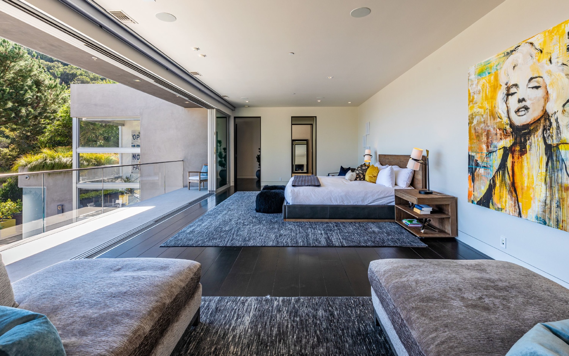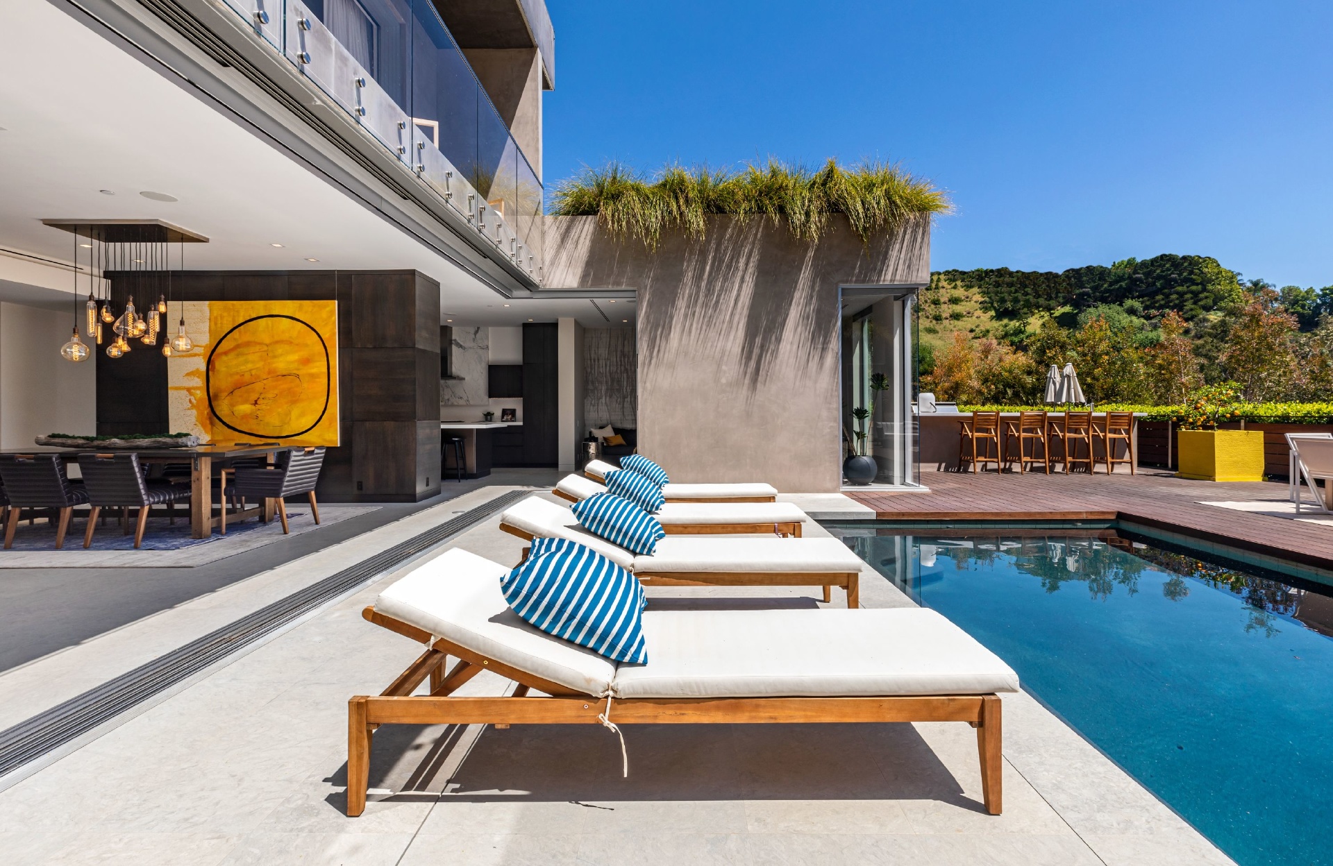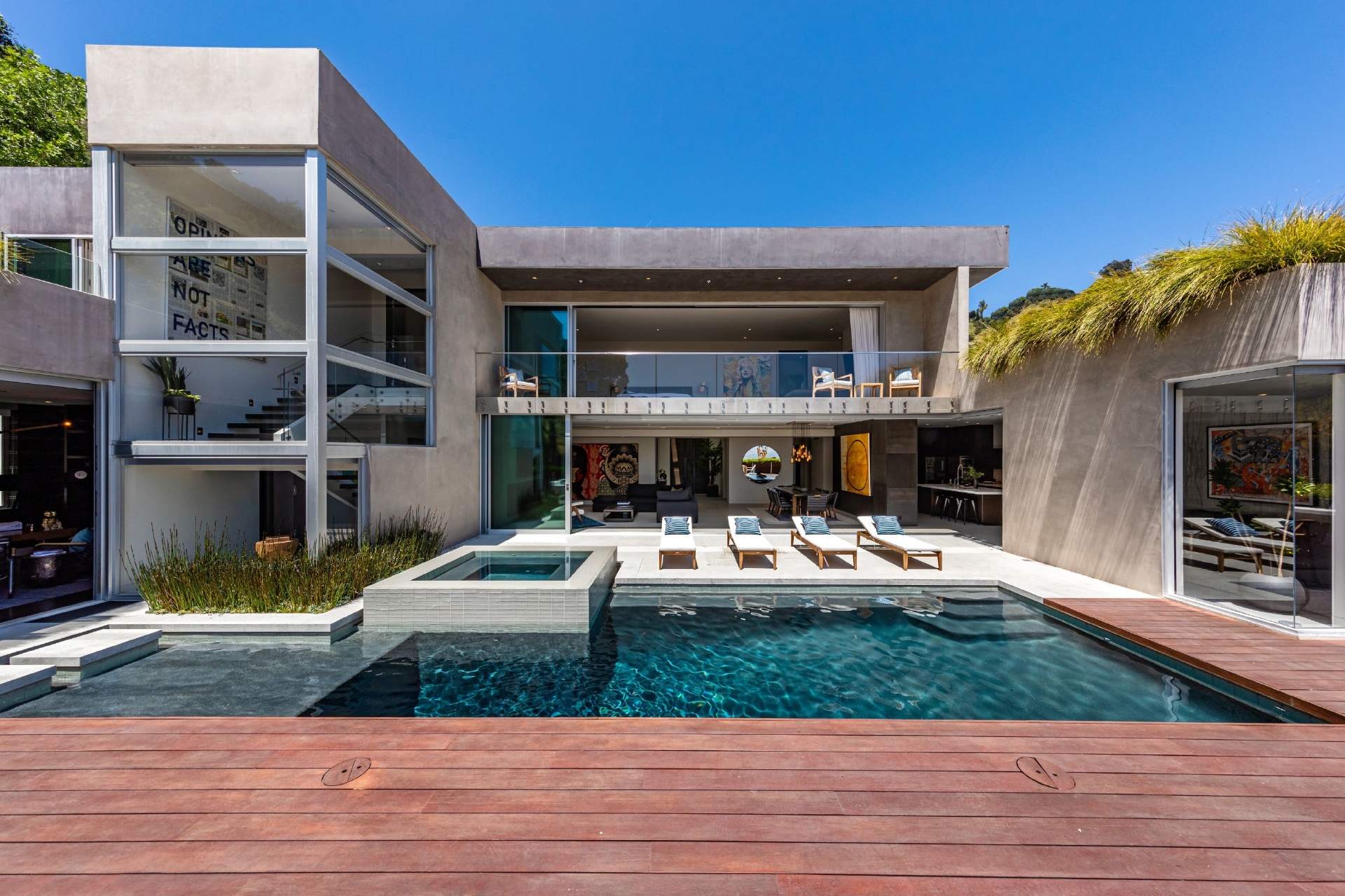 Enter 1709 Rising Glen: A modern estate set in the hills just above Sunset Plaza & the world famous Sunset Strip, minutes from the best shopping, dining & entertainment that LA has to offer. Enter a private & gated driveway to oversized motor court w/room for 10 cars & two-car garage. Step through the front door to a large open concept floor plan living & dining room w/honed limestone floors & Fleetwood glass sliders that open to the pool & entertainment deck. This is quintessential Southern California indoor/outdoor living at its finest. A sleek & modern, gourmet chef's kitchen includes top of the line appliances & adjoining lounge area. A modern floating staircase leads to the second story luxury master suite w/city and canyon views & includes a massive walk in closet, oversized bathroom, 2 private balconies & gym. Lower level includes 4 additional guest suites, a recording studio & large grassy yard/dog run. Experience the pinnacle of style & design and live among the stars.