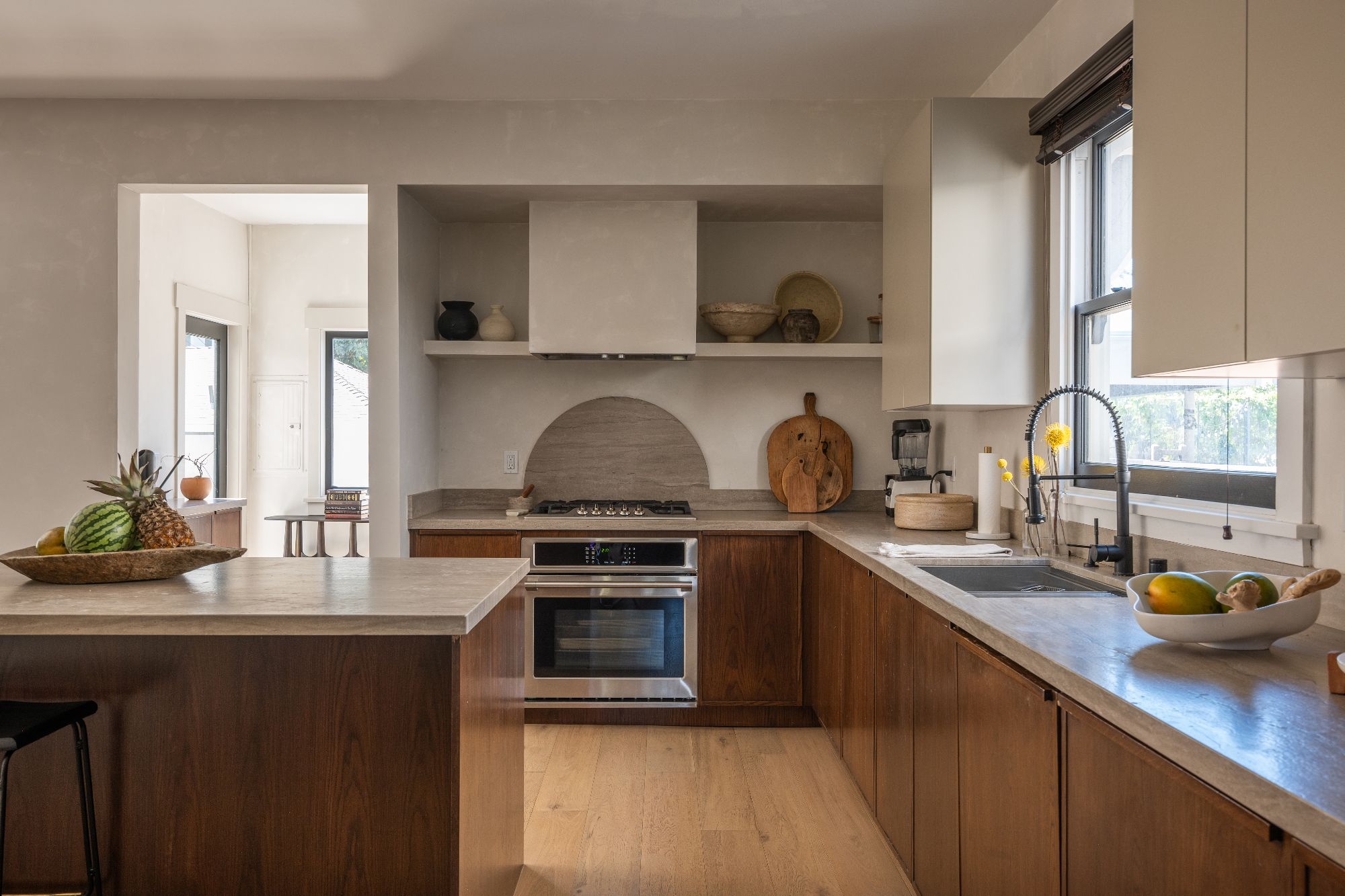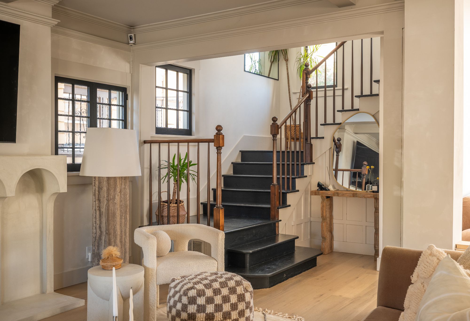 This Harvard Heights home blends Japandi design with Craftsman character, offering a main residence plus a detached guest house with its own kitchen, living space, bedroom, and full bath. Originally built in 1910 and fully remodeled in 2022, the property balances historic details like coffered ceilings, leaded glass windows, and wainscoting with modern updates including new oak floors, a plaster mantle, and a custom travertine kitchen with oversized island and breakfast nook. Upstairs offers a spacious primary suite with two custom closets, a lofted bonus space, and a marble-clad bath, plus 2 additional guest bedrooms with an updated full bath. The detached garage has been converted into a private gym, and the front yard includes a new gated parking space with automated entry. Extensive upgrades include new foundation work, windows, HVAC, electrical, and a Porsche EV charger. And when it's time to explore, you're only steps from neighborhood cafes and minutes from the vibrant dining scenes of West Adams and Mid-City.