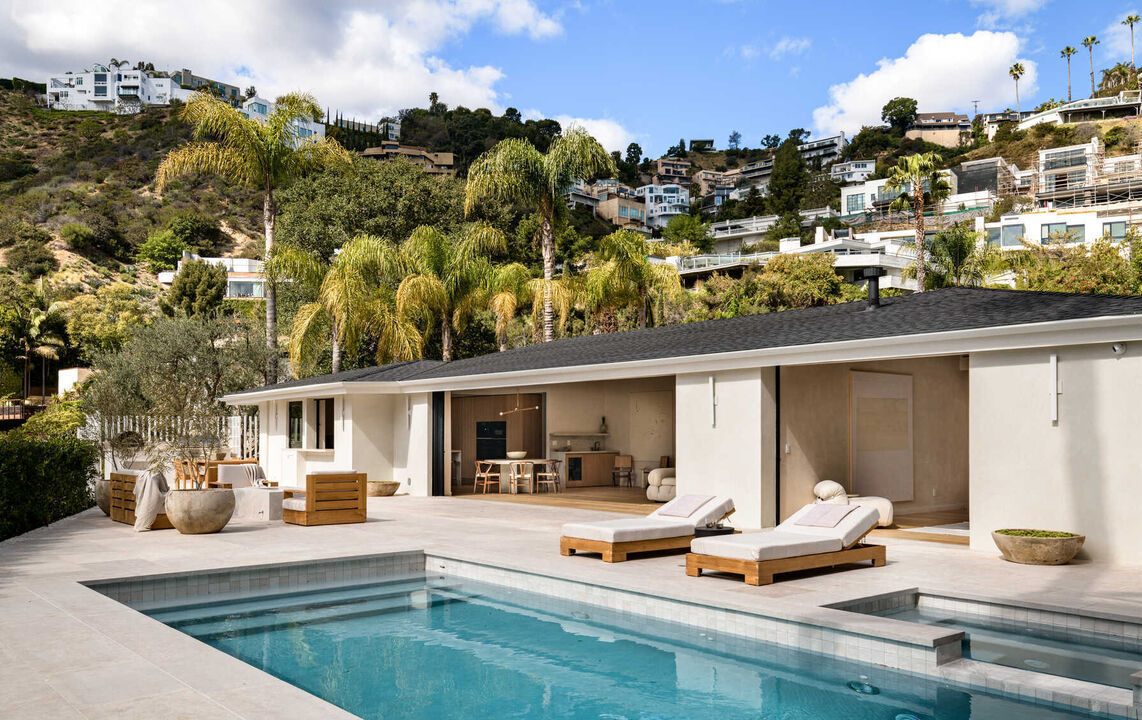 A private mid century 3 bed / 3.5 bath home in the hills just above Sunset Plaza & the world famous Sunset Strip, minutes from the best shopping, dining & entertainment that LA has to offer. The spacious open floor plan of the bright living room & adjoined dining room offer the quintessential indoor/outdoor LA lifestyle with oversized windows & glass doors. Cultivated beauty & comfort are illustrated through stylish gallery lighting & cozy, 3-sided fire place. Spacious master suite with sumptuous bathroom, generous walk-in closet, expertly crafted built-in wardrobes & drawers. Kitchen features center island & top of the line appliances. Gracious backyard with lush palm trees & plants, complete with terrace, saltwater pool, spa & outdoor kitchen with BBQ. Additional amenities: private gate & driveway, meticulous landscaping, Hickory floors, ample storage & 2-car garage. The ultimate private retreat in the heart of the city.