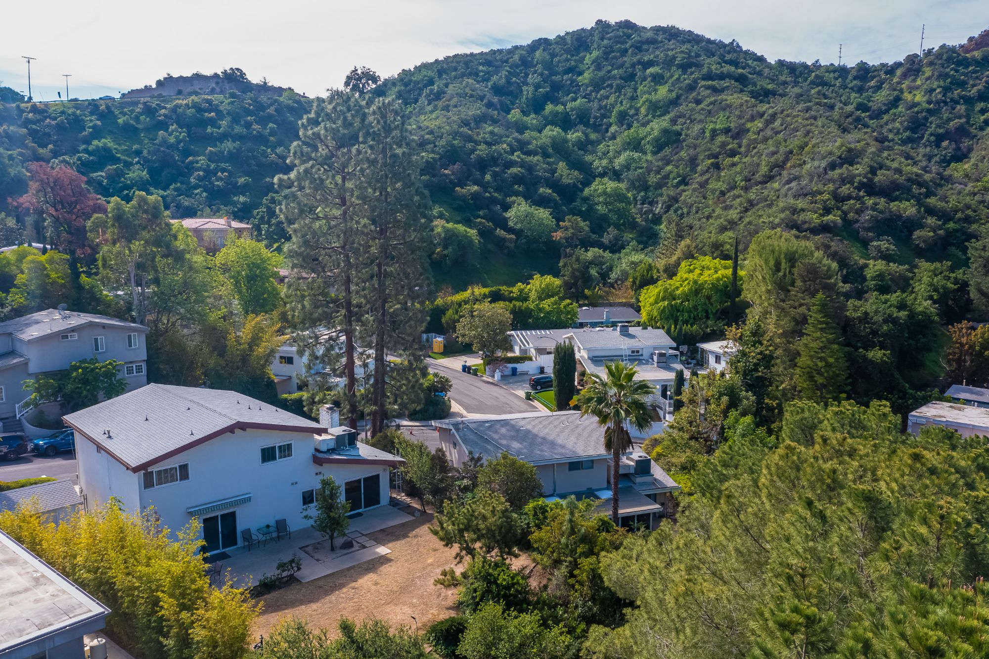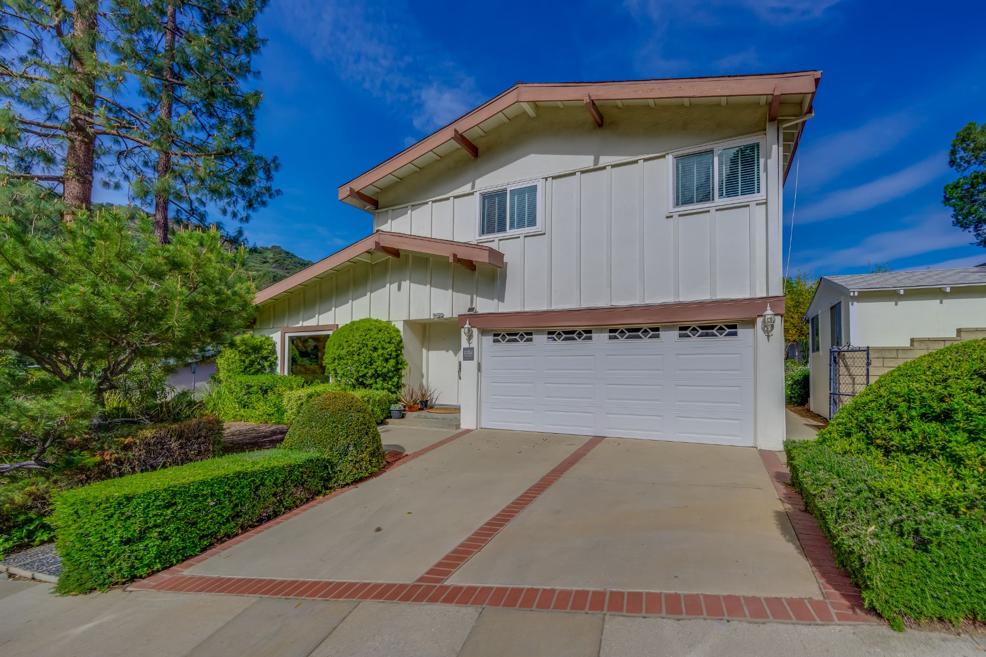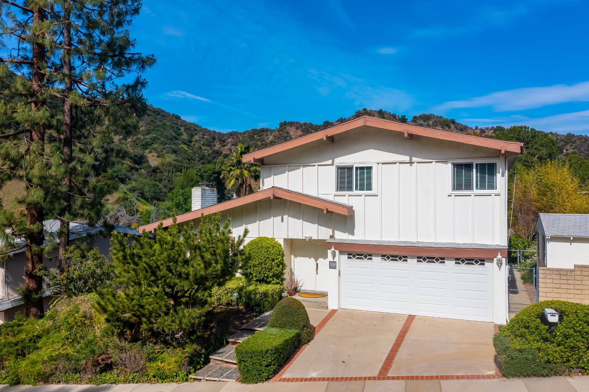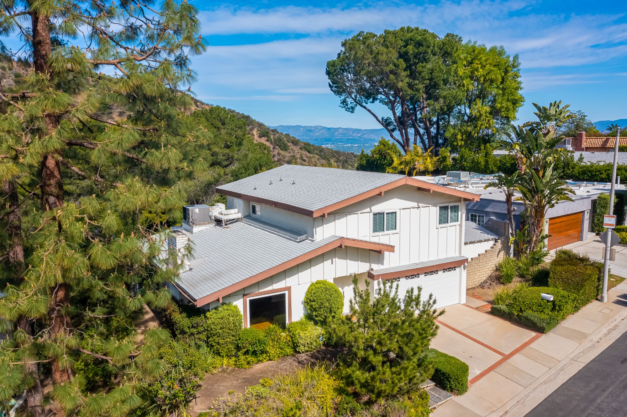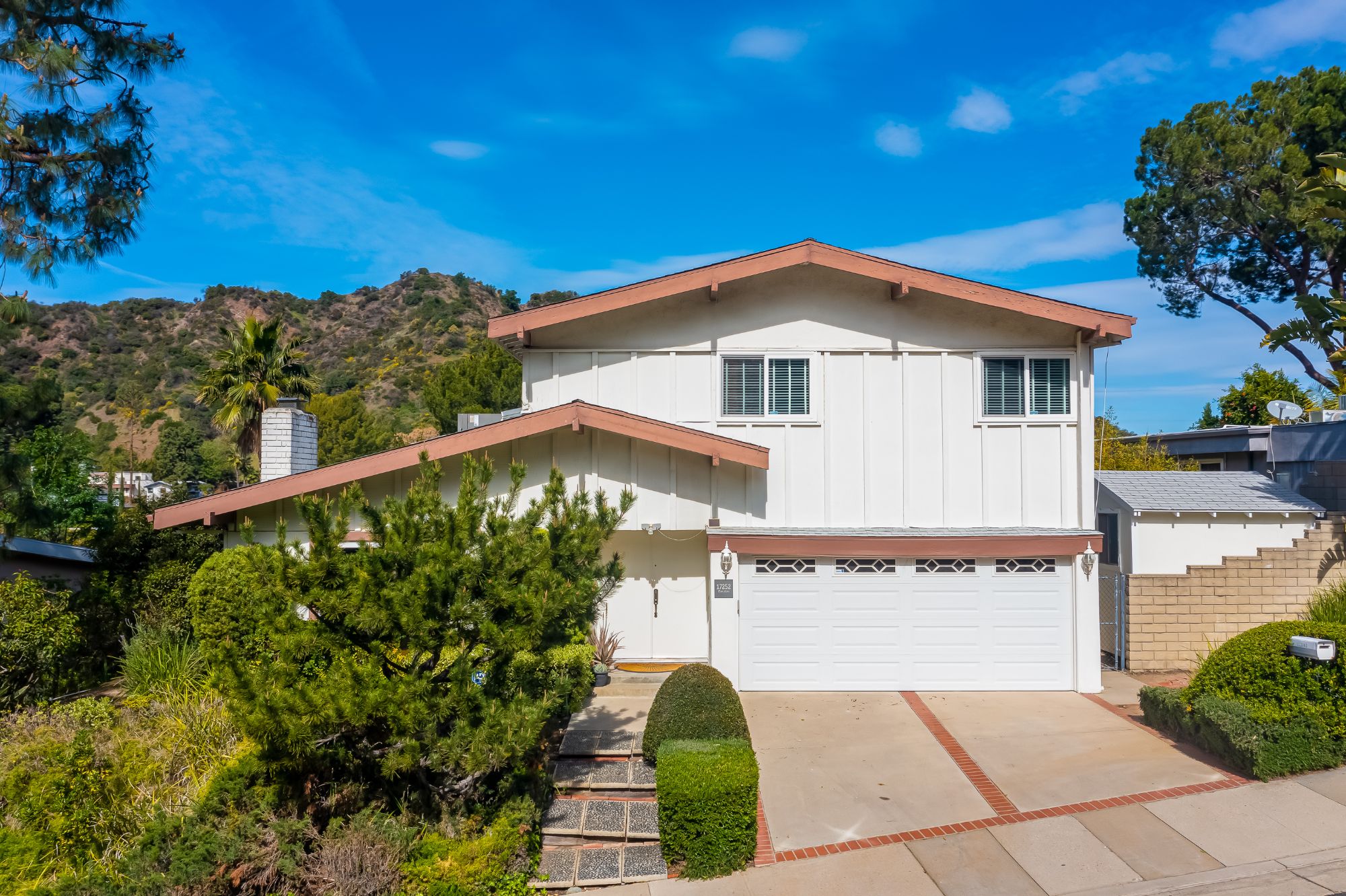 This incredible light-filled 3 bed and 2 1/2 baths Contemporary is located in prime Encino Hills just seconds to Mulholland Drive. This original 'Harlan Lee' is perfectly positioned on a large mostly flat lot with tranquil mountain views. The open floor plan has a living room with vaulted ceilings and a floor-to-ceiling slate fireplace and bamboo floors that extend to the dining area. A sunny updated kitchen with stainless steel appliances opens to the den with tiled floors. Two sets of sliding glass doors lead to the lovely yard perfect for entertaining. The floating staircase leads to the upstairs with three spacious light-filled bedrooms, all with vaulted ceilings. Other features include a separate laundry room, large storage shed & a 2-car attached garage. Located in the acclaimed Lanai Road School district, this house is perfect for everyone.