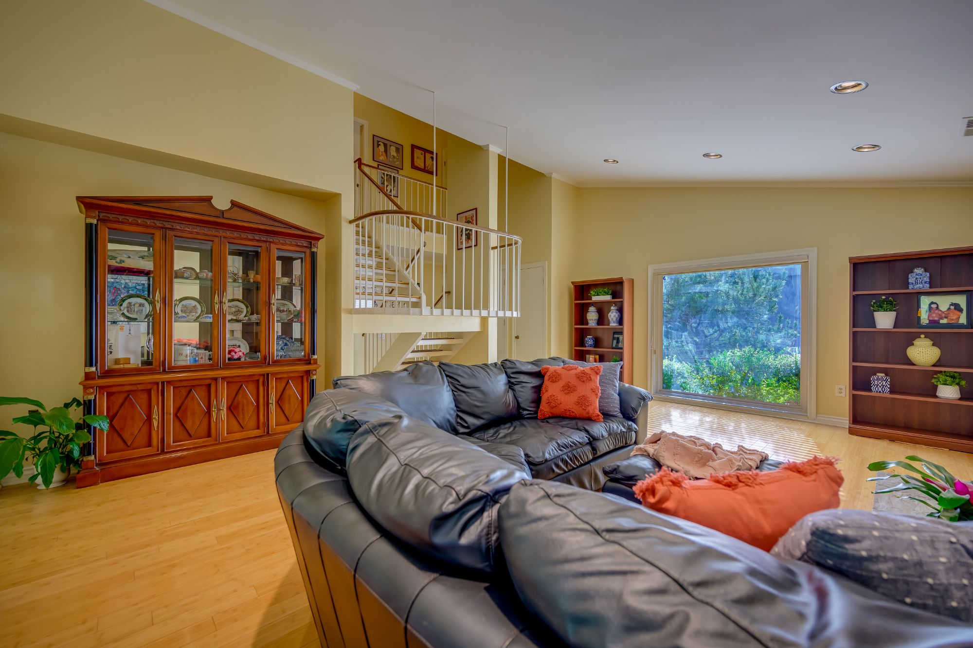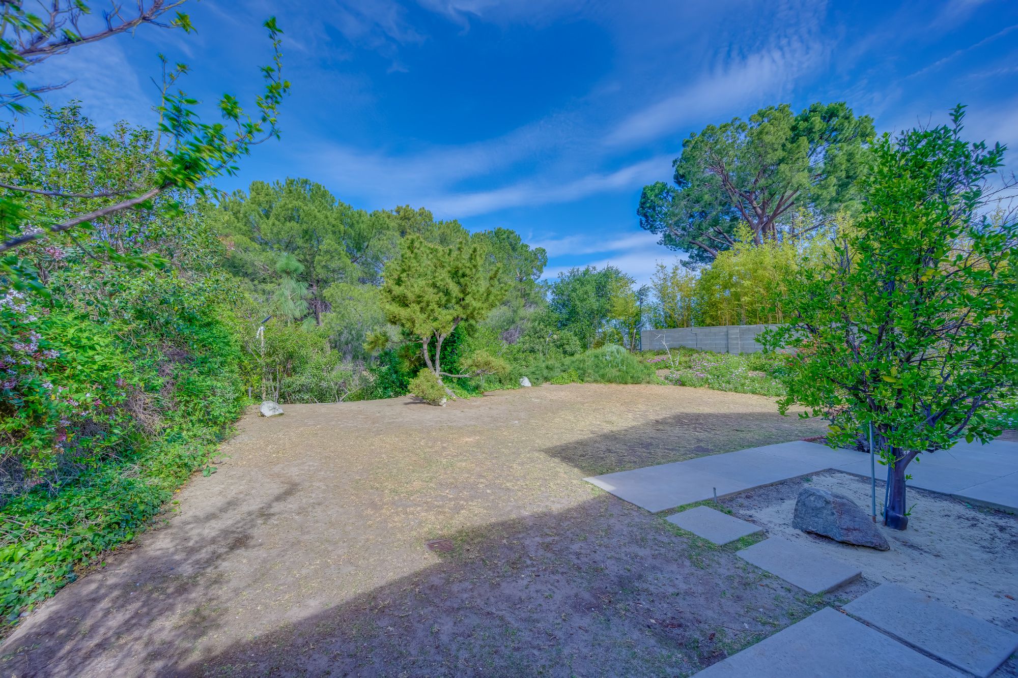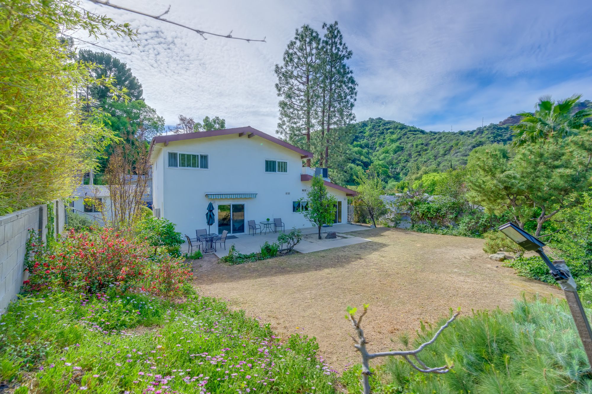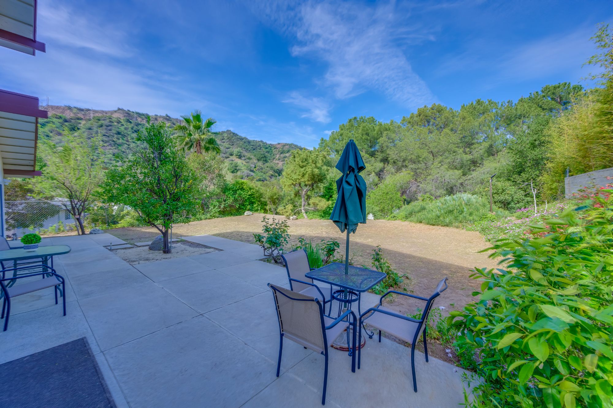 This incredible light-filled 3 bed and 2 1/2 baths Contemporary is located in prime Encino Hills just seconds to Mulholland Drive. This original 'Harlan Lee' is perfectly positioned on a large mostly flat lot with tranquil mountain views. The open floor plan has a living room with vaulted ceilings and a floor-to-ceiling slate fireplace and bamboo floors that extend to the dining area. A sunny updated kitchen with stainless steel appliances opens to the den with tiled floors. Two sets of sliding glass doors lead to the lovely yard perfect for entertaining. The floating staircase leads to the upstairs with three spacious light-filled bedrooms, all with vaulted ceilings. Other features include a separate laundry room, large storage shed & a 2-car attached garage. Located in the acclaimed Lanai Road School district, this house is perfect for everyone.