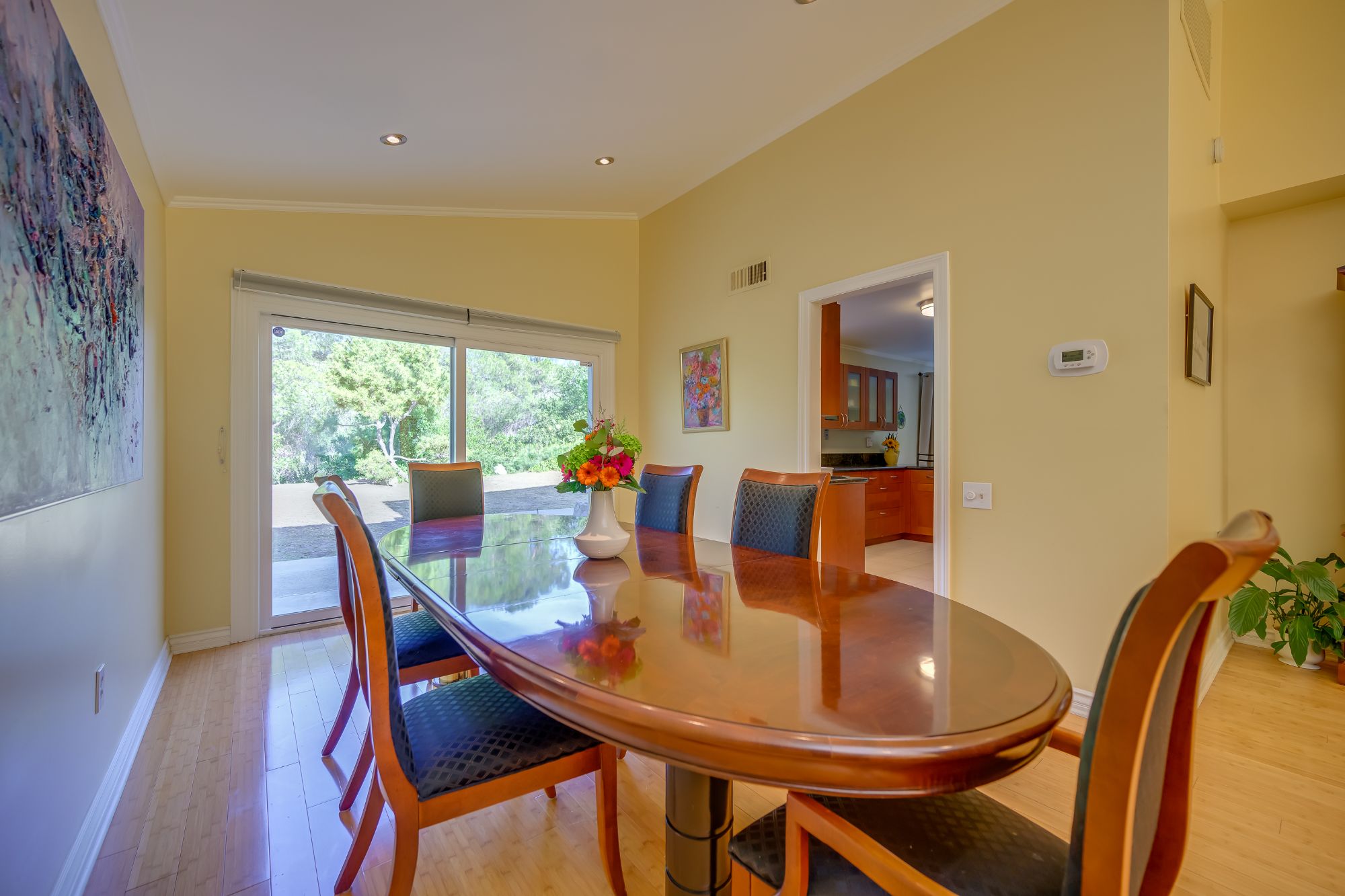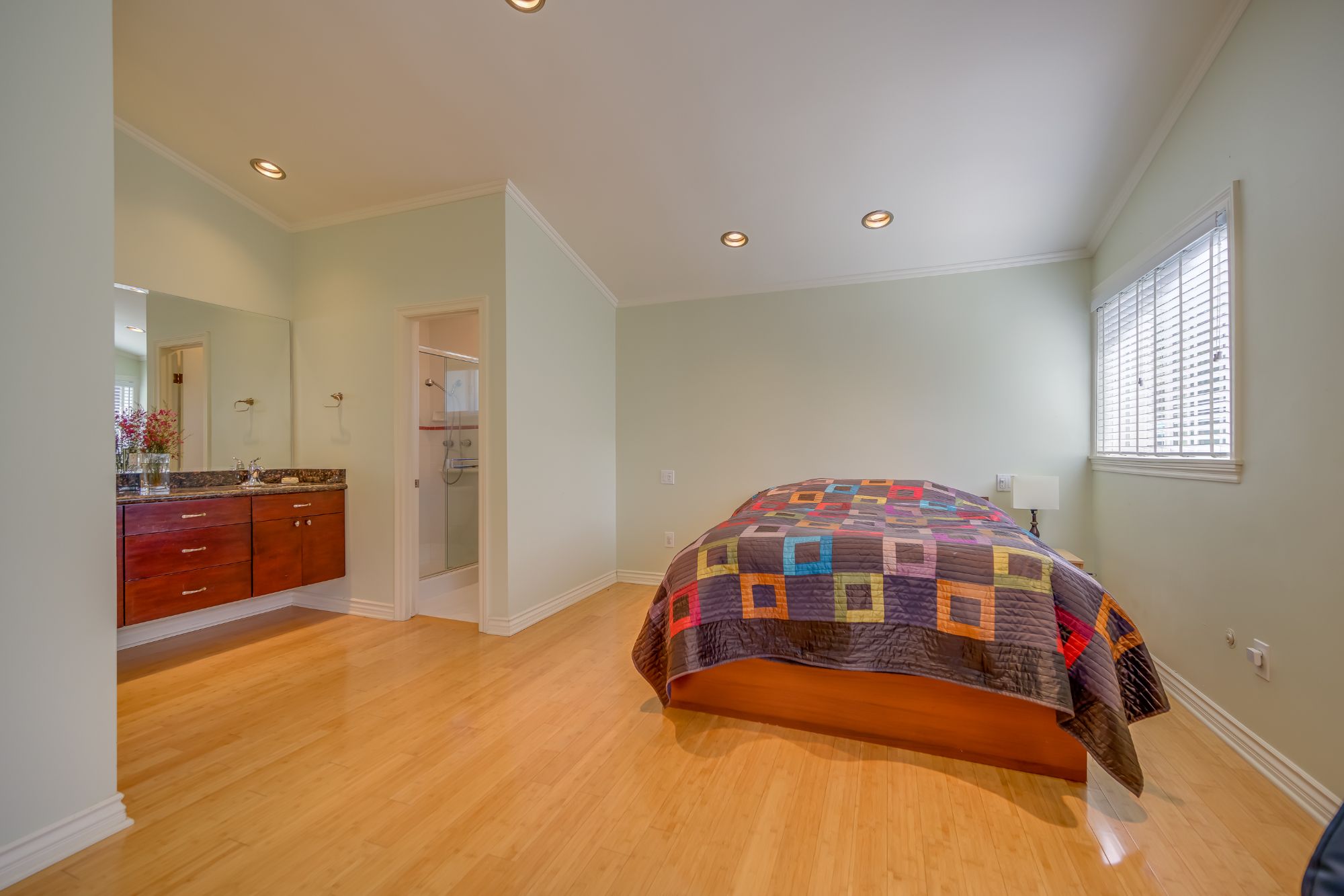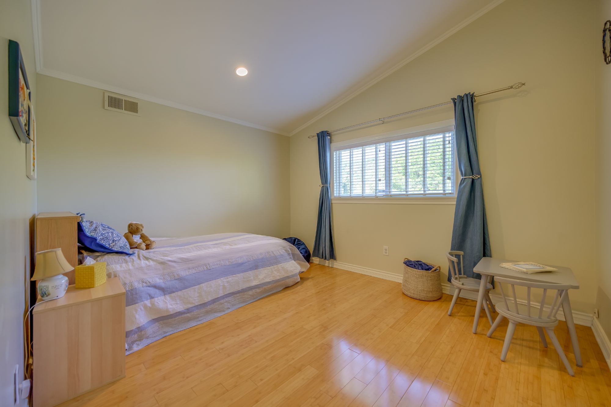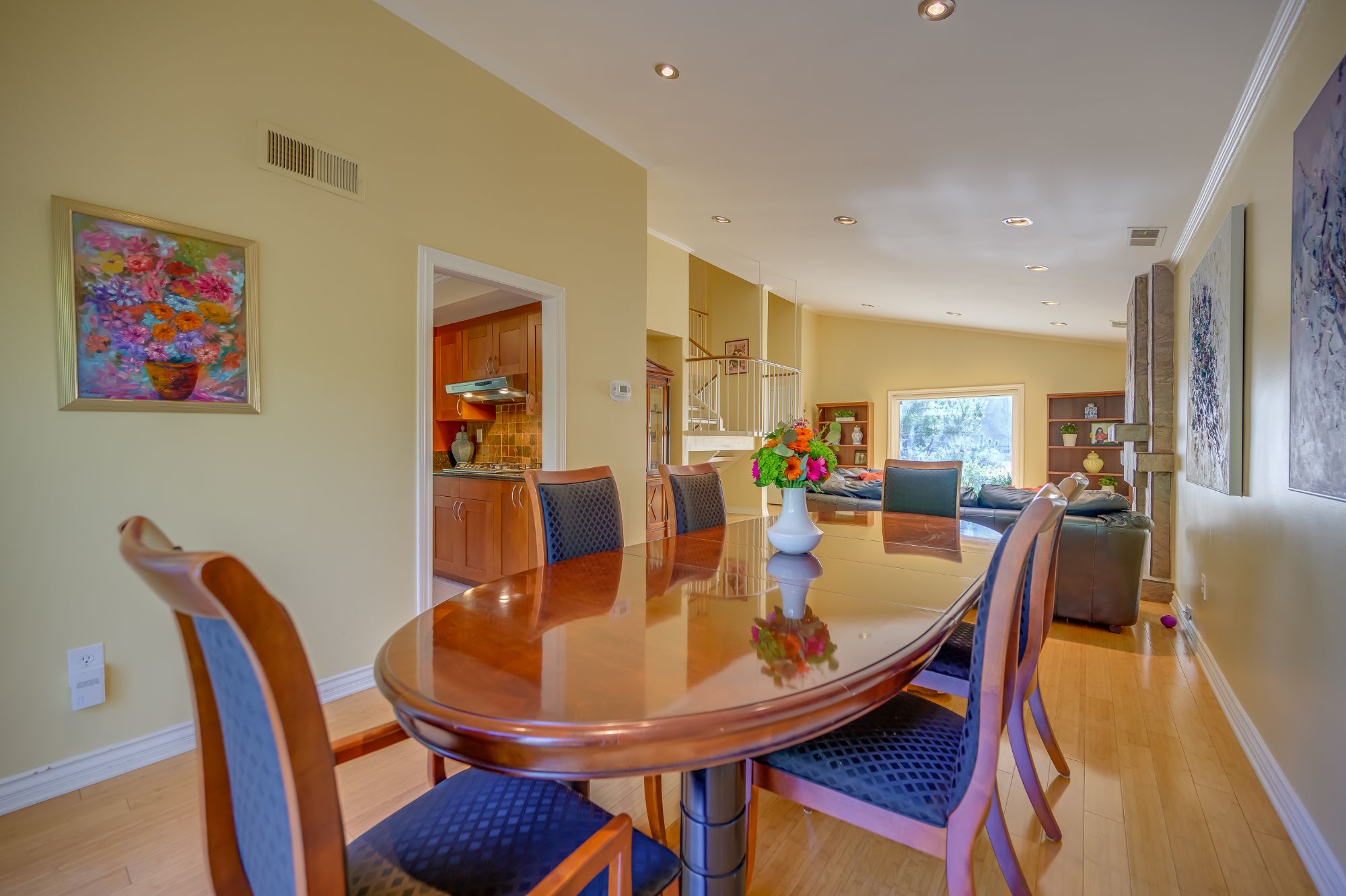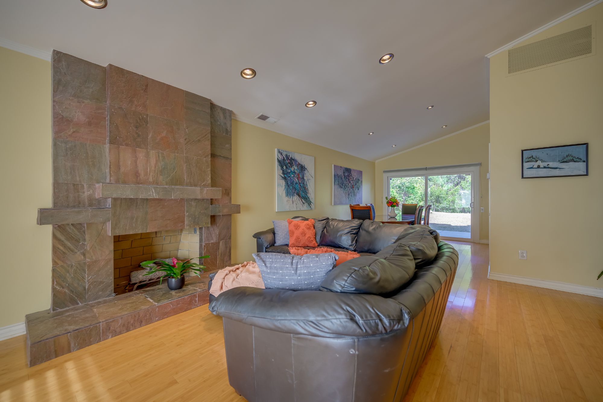 This incredible light-filled 3 bed and 2 1/2 baths Contemporary is located in prime Encino Hills just seconds to Mulholland Drive. This original 'Harlan Lee' is perfectly positioned on a large mostly flat lot with tranquil mountain views. The open floor plan has a living room with vaulted ceilings and a floor-to-ceiling slate fireplace and bamboo floors that extend to the dining area. A sunny updated kitchen with stainless steel appliances opens to the den with tiled floors. Two sets of sliding glass doors lead to the lovely yard perfect for entertaining. The floating staircase leads to the upstairs with three spacious light-filled bedrooms, all with vaulted ceilings. Other features include a separate laundry room, large storage shed & a 2-car attached garage. Located in the acclaimed Lanai Road School district, this house is perfect for everyone.