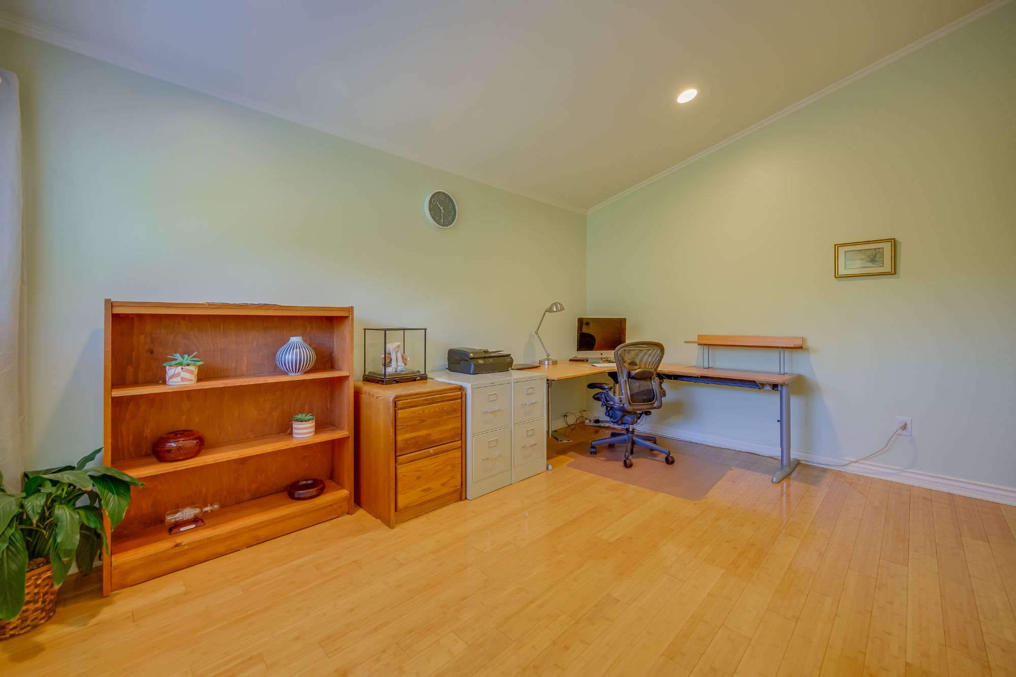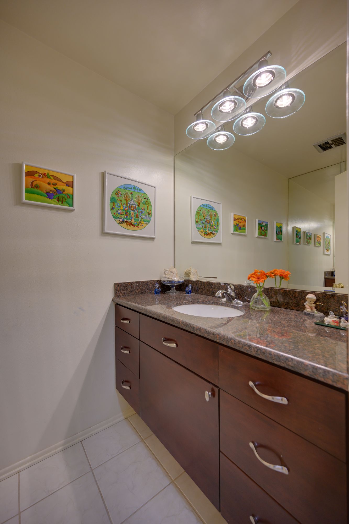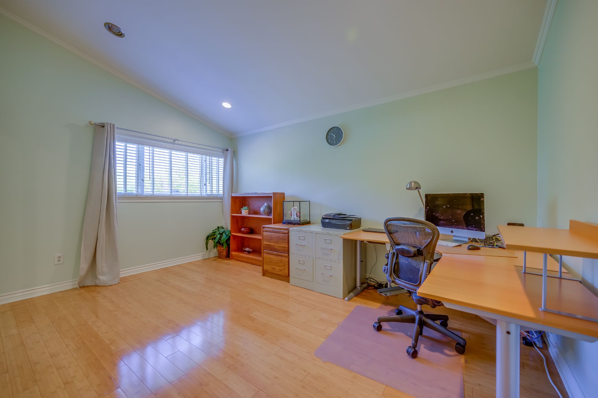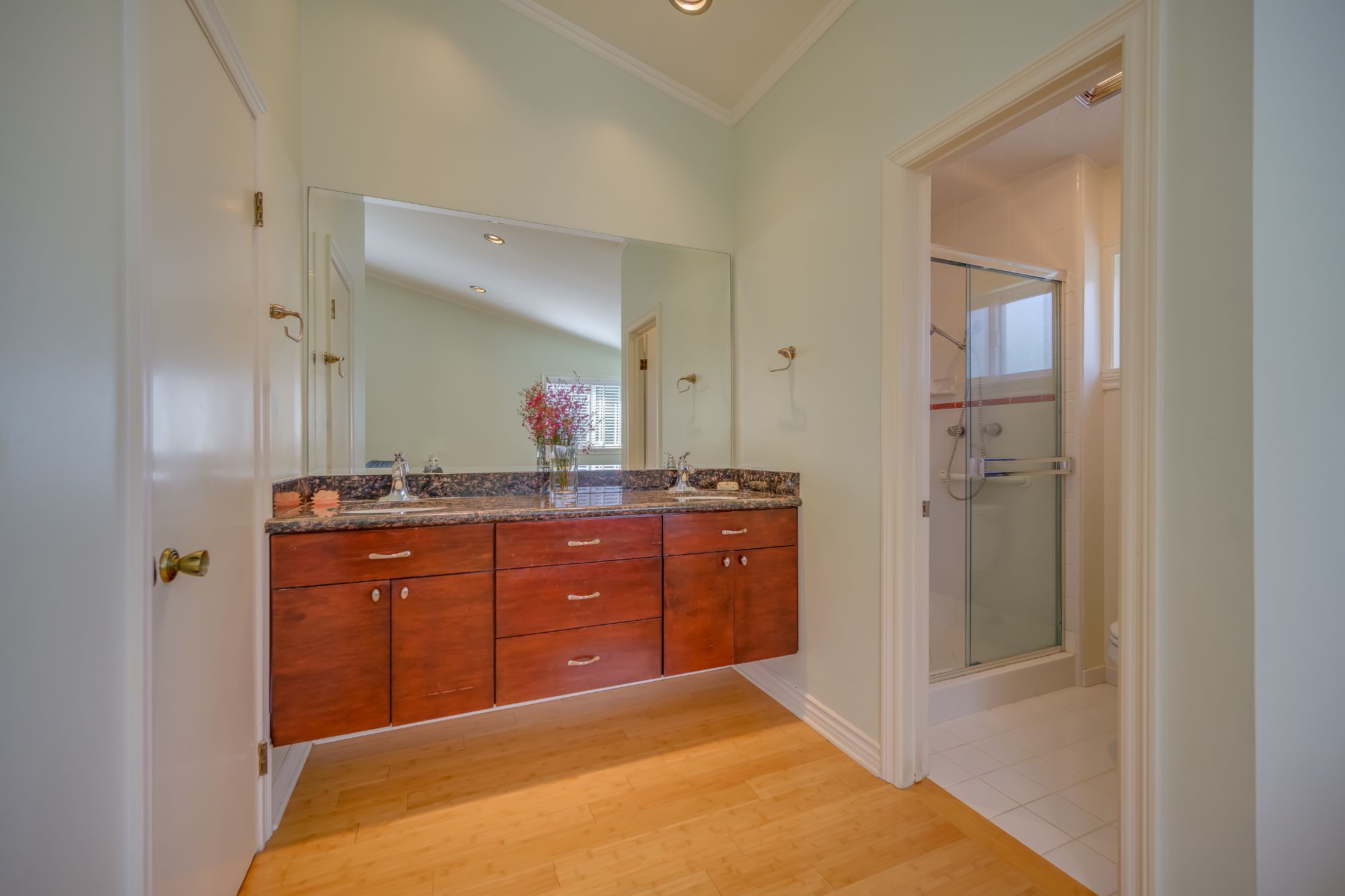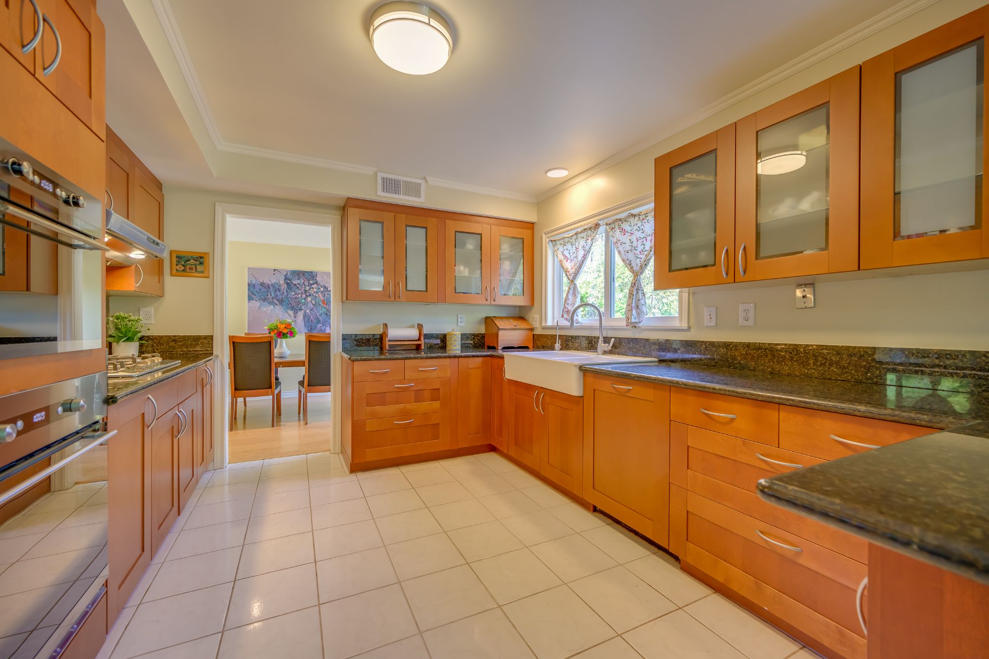 This incredible light-filled 3 bed and 2 1/2 baths Contemporary is located in prime Encino Hills just seconds to Mulholland Drive. This original 'Harlan Lee' is perfectly positioned on a large mostly flat lot with tranquil mountain views. The open floor plan has a living room with vaulted ceilings and a floor-to-ceiling slate fireplace and bamboo floors that extend to the dining area. A sunny updated kitchen with stainless steel appliances opens to the den with tiled floors. Two sets of sliding glass doors lead to the lovely yard perfect for entertaining. The floating staircase leads to the upstairs with three spacious light-filled bedrooms, all with vaulted ceilings. Other features include a separate laundry room, large storage shed & a 2-car attached garage. Located in the acclaimed Lanai Road School district, this house is perfect for everyone.