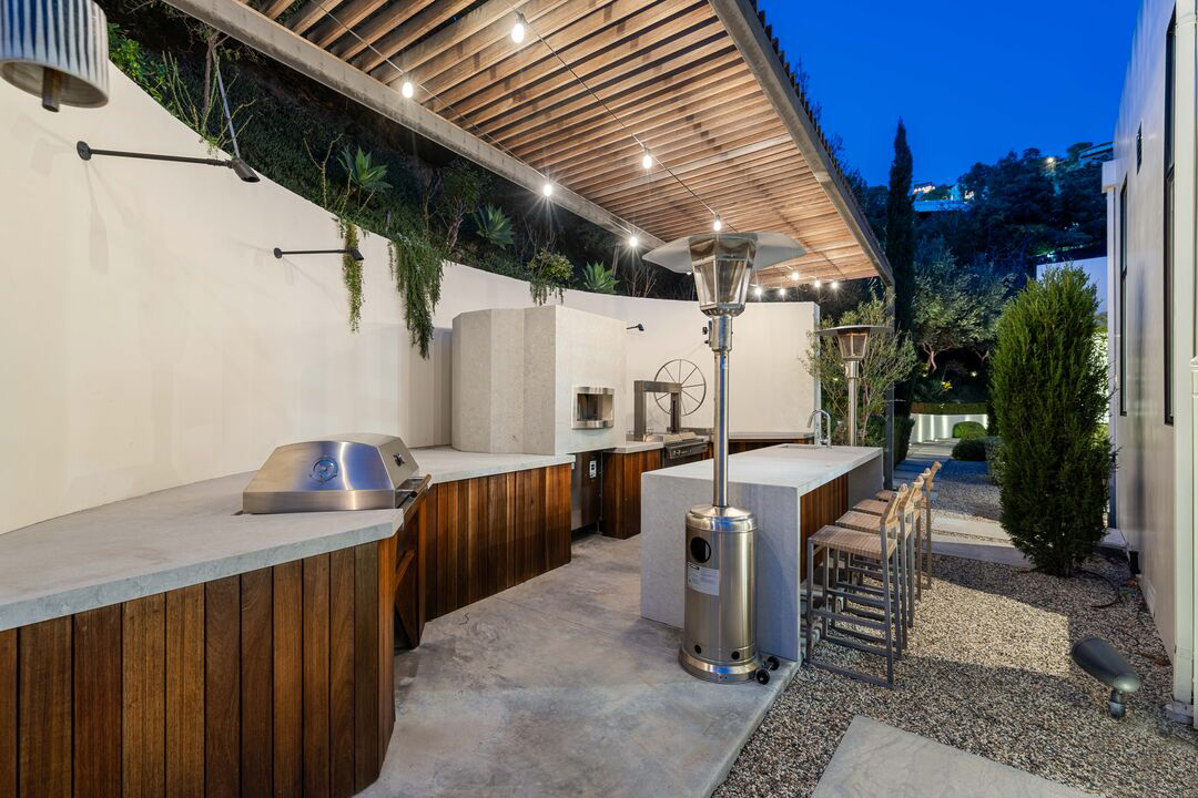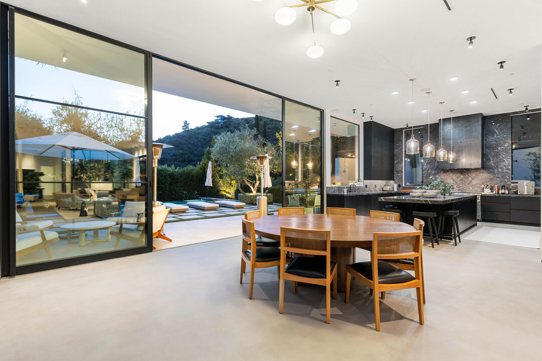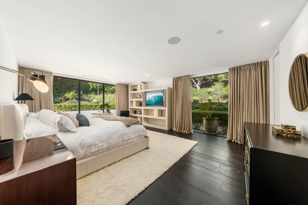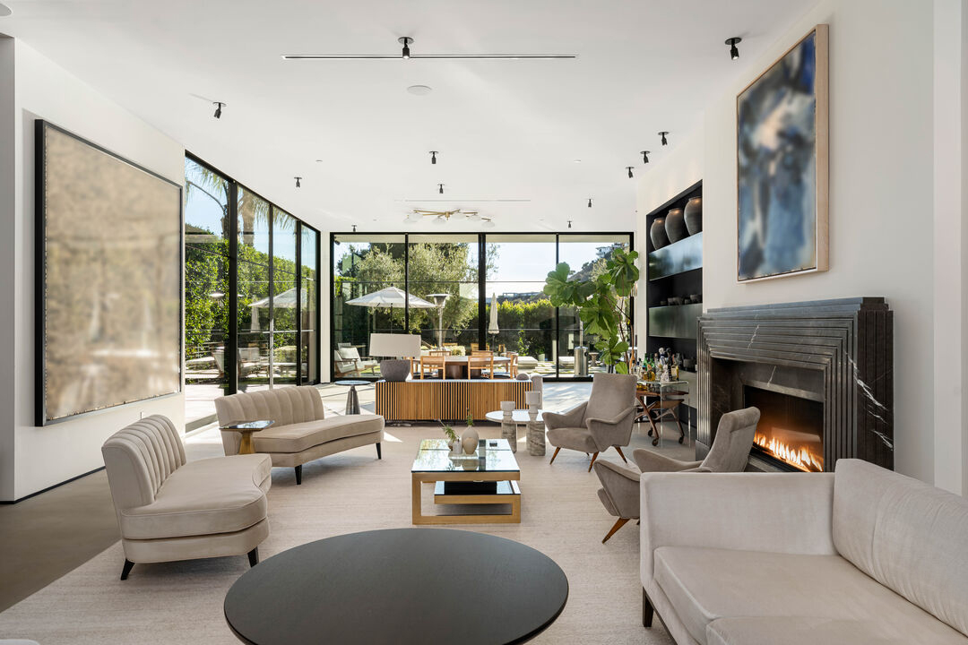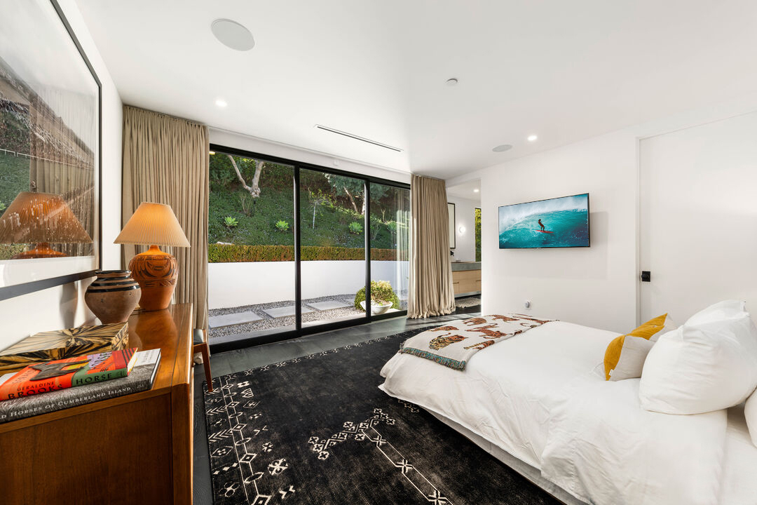 Rare Motor court Estate on nearly 1/2 acre in Bird Streets on Upper Rising Glen. This newly completed estate was featured in Architectural Digest. Gated, hedged, & ultra private w/cobblestone motor court that leads to the exquisitely sophisticated residence. Inside the approx. 5,764 SF home, sits 4 beds, 5 baths w/walls of glass that frame a manicured yard. Soaring 13 ft. ceilings float above the great hall, which is flanked by an interior atrium w/centenarian olive tree. The living area is the epitome of refinement with the finest finishes including dramatic stonework, 12 ft. floating shelves, matte black oak & high-pressure concrete finished floors. The spacious open floor plan offers the quintessential indoor/outdoor LA lifestyle with a media enclave, grand entertaining space, bar, & dining room. All bedrooms open to private terraces along a pathway connecting the sparkling pool and formal gardens. Truly a masterpiece in its own right.