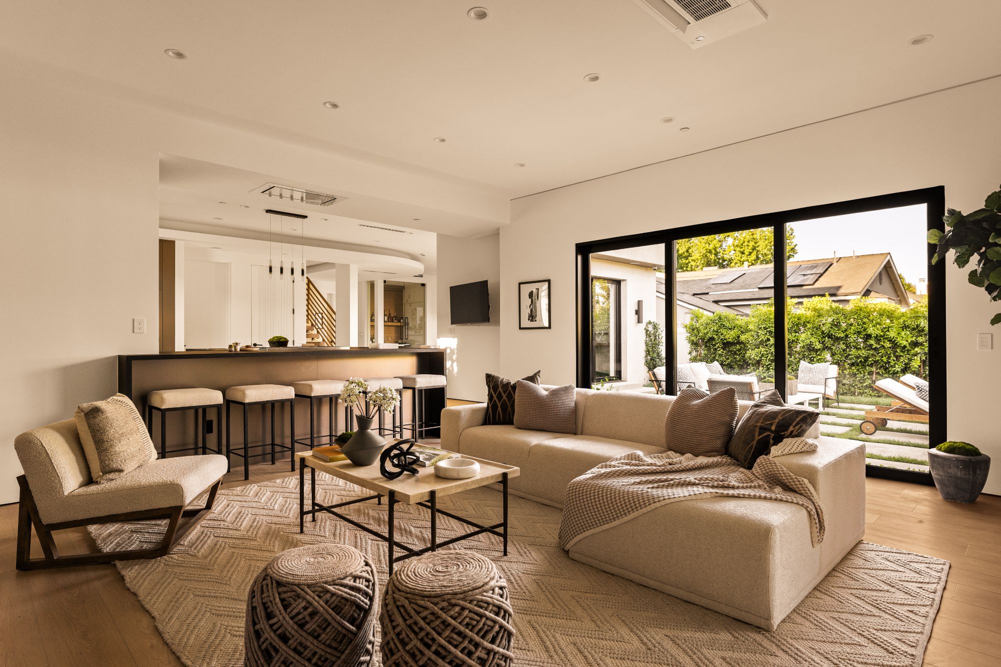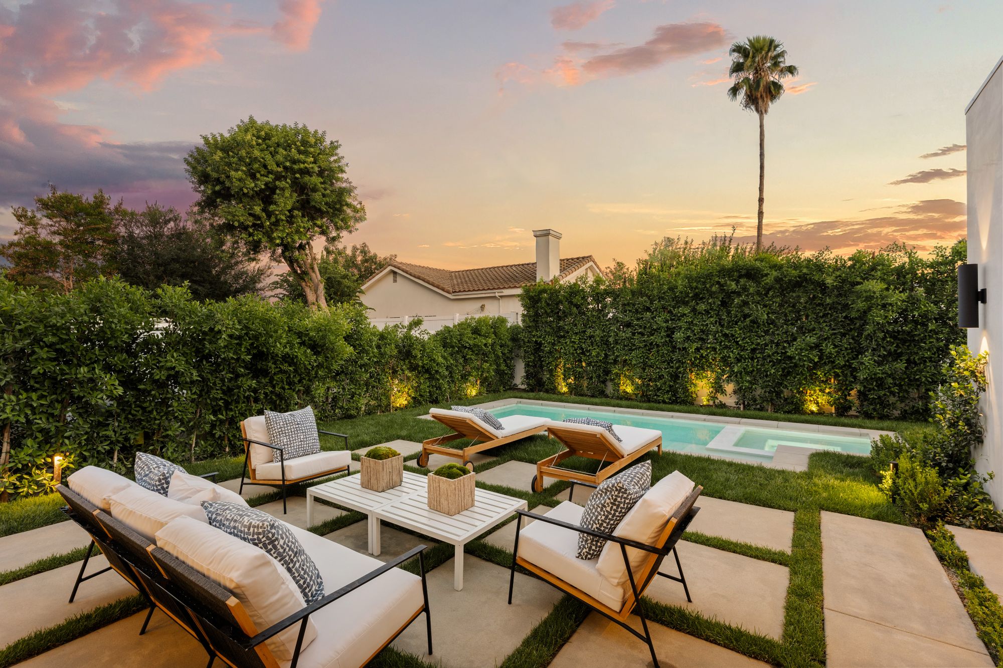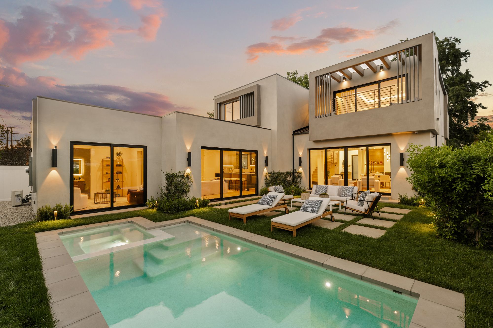 Nestled in prime Encino, this newly built contemporary-modern estate, crafted by a luxury builder with a legacy since 1993 offers 5 bedrooms, 5.5 bathrooms, and 3,143 sq ft of refined living space on more than 5,500 sq ft of private grounds. Thoughtfully reimagined, the residence seamlessly blends sophisticated design with state-of-the-art technology. Its striking exterior is enhanced by curated landscaping, highlighted by a grand olive tree anchoring the front yard. Inside, the expansive layout impresses with both an entertainer's living room and a separate family room. A 72 gas fireplace finished in porcelain and Tuscany plaster anchors the space, complemented by a built-in TV. The chef s kitchen is a showpiece of style and function, featuring a grand island and peninsula, custom cabinetry, a full-height pantry, and top-tier appliances from Wolf, Signature, and Fisher & Paykel. Sleek porcelain counters, a matching backsplash, and an under mount sink bring the design together with effortless elegance. The primary suite is a luxurious retreat with a balcony and a custom walk-in closet with built-ins, LED mirrors, and a dressing table. Windows with electric tinting technology provide instant privacy at the touch of a button. Spa-like bathrooms elevate the everyday with wood vanities, textured porcelain showers, and a refined mix of matte black and brushed gold finishes. Towering ficus hedges ensure privacy, while star jasmine, boxwood, and bamboo accents create a serene backdrop. The backyard is an entertainer s dream, featuring a white pebble pool and spa with full automation, cascading deck and spa jets. Thoughtful details - including app-controlled Sonos speakers, a surveillance system, and ambient landscape lighting - complete the outdoor experience. Additional highlights include a home office, wine cellar, full laundry with Samsung washer/dryer, and three installed TVs. The residence is fully equipped with modern essentials such as Lutron smart lighting, Nest thermostats, dual tankless water heaters, an automatic sprinkler system, and ADT security with motion and moisture sensors. Perfectly situated in prime Encino with easy access to the 101 and 405, Ventura Boulevard s dining and boutiques, The Village and Topanga Westfield Mall, Lake Balboa, and Balboa Golf Course, this home offers the ultimate blend of luxury, comfort, and convenience - crafted for elegant entertaining and everyday living.