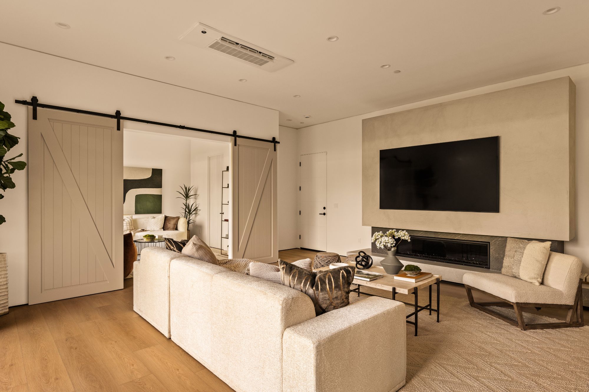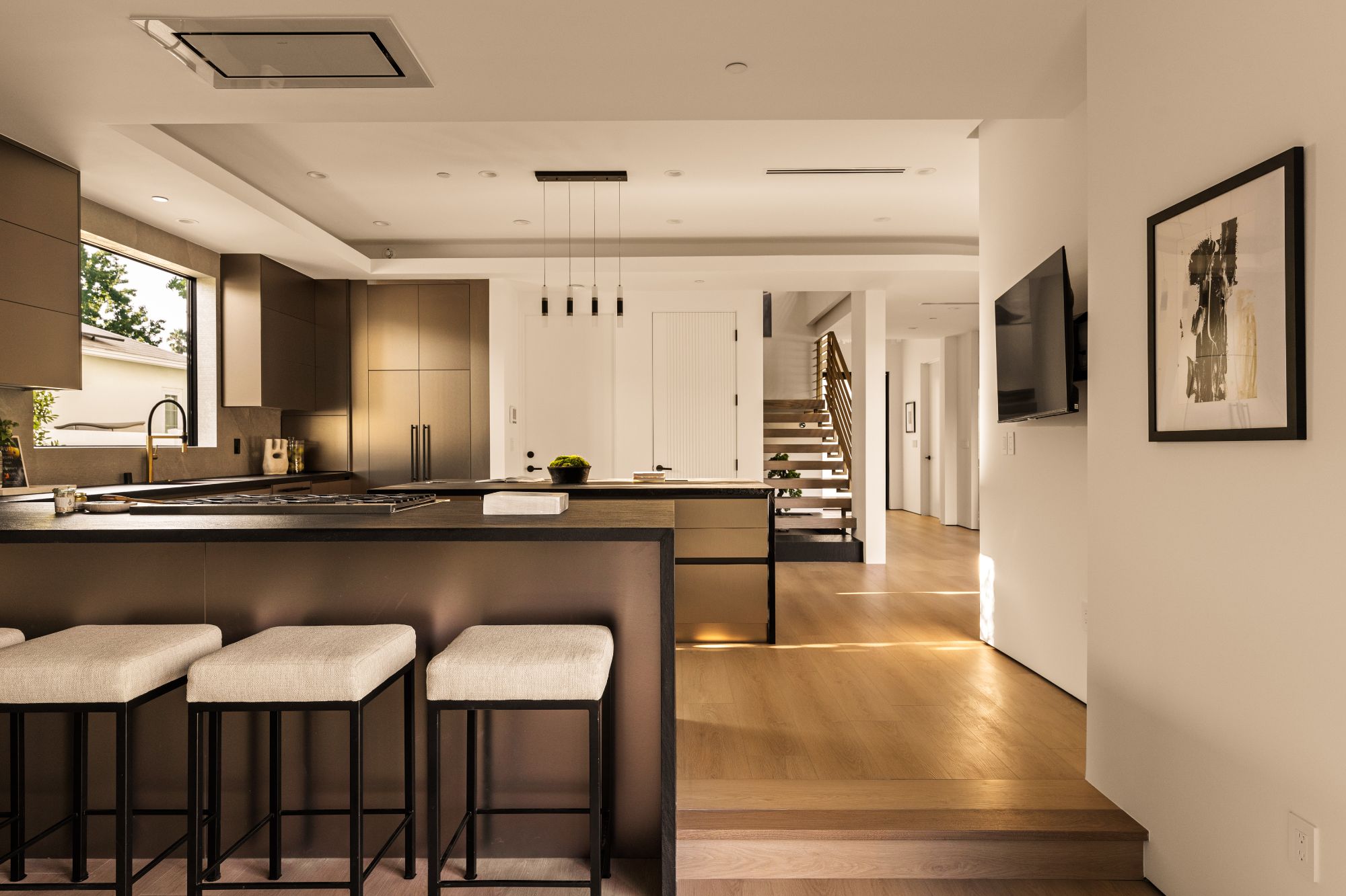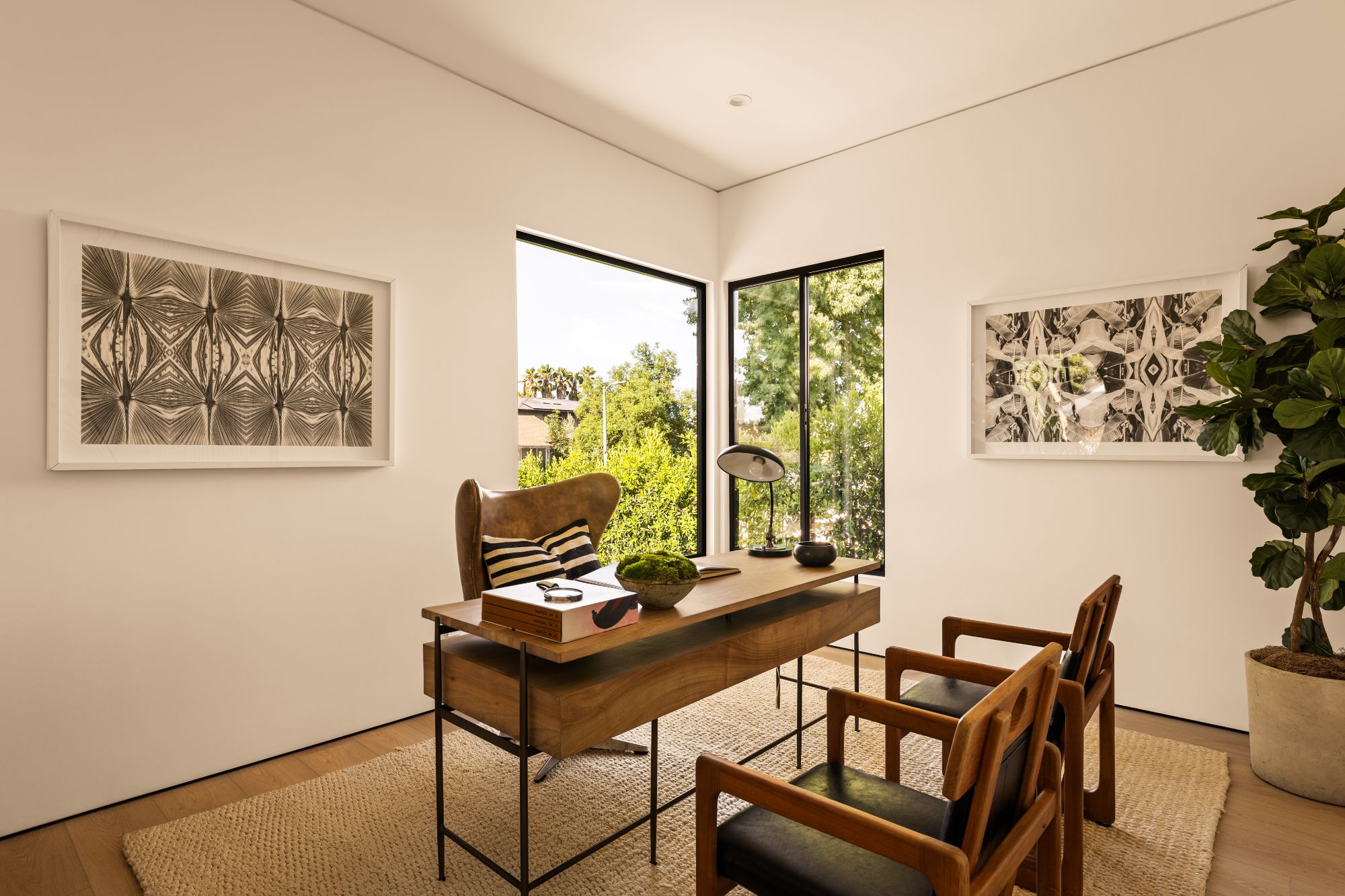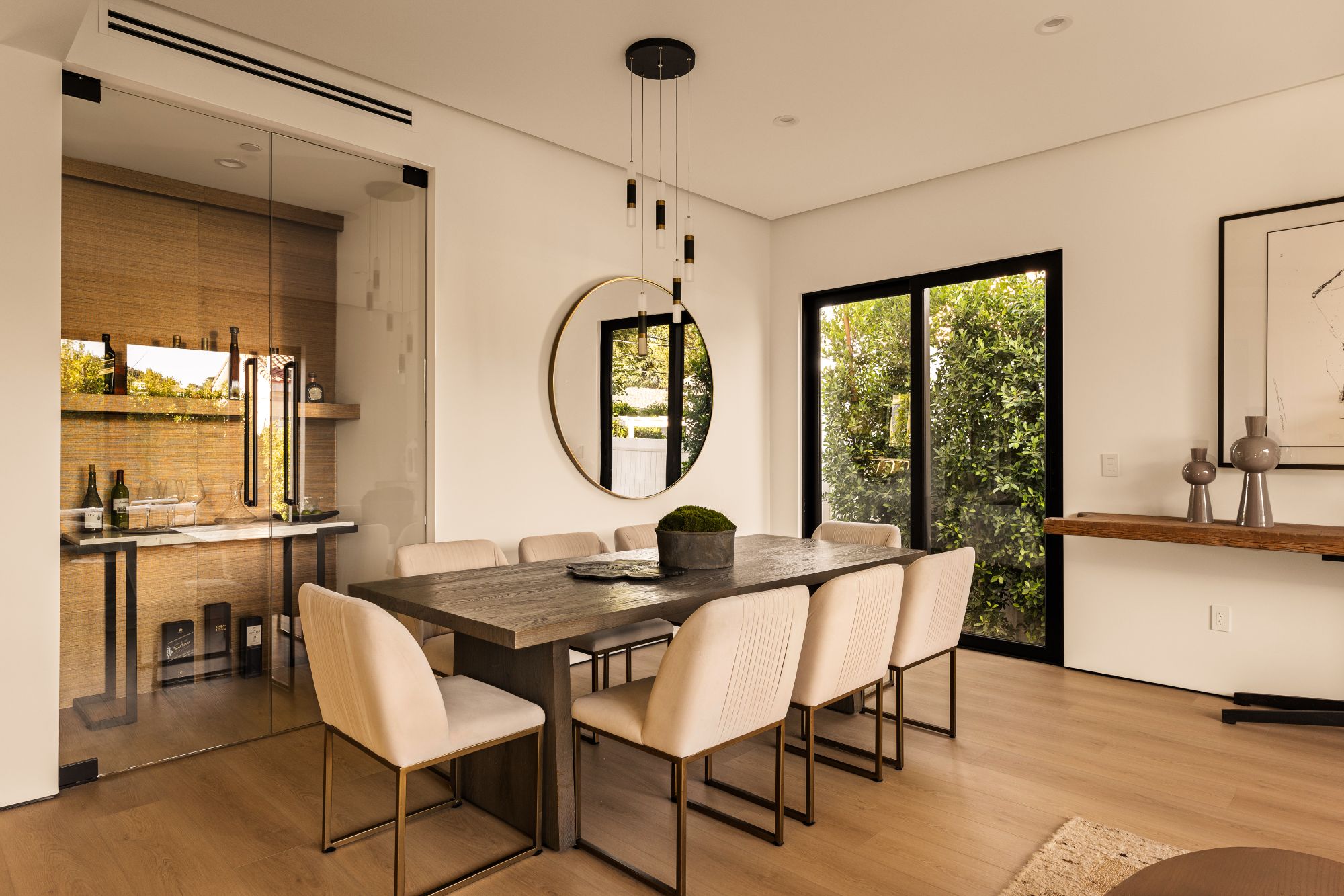 Nestled in prime Encino, this newly built contemporary-modern estate, crafted by a luxury builder with a legacy since 1993 offers 5 bedrooms, 5.5 bathrooms, and 3,143 sq ft of refined living space on more than 5,500 sq ft of private grounds. Thoughtfully reimagined, the residence seamlessly blends sophisticated design with state-of-the-art technology. Its striking exterior is enhanced by curated landscaping, highlighted by a grand olive tree anchoring the front yard. Inside, the expansive layout impresses with both an entertainer's living room and a separate family room. A 72 gas fireplace finished in porcelain and Tuscany plaster anchors the space, complemented by a built-in TV. The chef s kitchen is a showpiece of style and function, featuring a grand island and peninsula, custom cabinetry, a full-height pantry, and top-tier appliances from Wolf, Signature, and Fisher & Paykel. Sleek porcelain counters, a matching backsplash, and an under mount sink bring the design together with effortless elegance. The primary suite is a luxurious retreat with a balcony and a custom walk-in closet with built-ins, LED mirrors, and a dressing table. Windows with electric tinting technology provide instant privacy at the touch of a button. Spa-like bathrooms elevate the everyday with wood vanities, textured porcelain showers, and a refined mix of matte black and brushed gold finishes. Towering ficus hedges ensure privacy, while star jasmine, boxwood, and bamboo accents create a serene backdrop. The backyard is an entertainer s dream, featuring a white pebble pool and spa with full automation, cascading deck and spa jets. Thoughtful details - including app-controlled Sonos speakers, a surveillance system, and ambient landscape lighting - complete the outdoor experience. Additional highlights include a home office, wine cellar, full laundry with Samsung washer/dryer, and three installed TVs. The residence is fully equipped with modern essentials such as Lutron smart lighting, Nest thermostats, dual tankless water heaters, an automatic sprinkler system, and ADT security with motion and moisture sensors. Perfectly situated in prime Encino with easy access to the 101 and 405, Ventura Boulevard s dining and boutiques, The Village and Topanga Westfield Mall, Lake Balboa, and Balboa Golf Course, this home offers the ultimate blend of luxury, comfort, and convenience - crafted for elegant entertaining and everyday living.