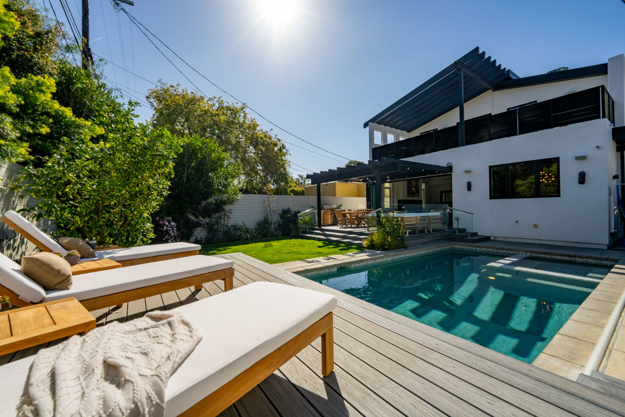 Introducing this exquisitely designed 5 bedroom, 4 1/2 bath home in the sought-after Crestview neighborhood, adjacent to Beverlywood. Host all your friends and family in this entertainers paradise designed by the award-winning JAC Interiors. Boasting high-end details throughout including light fixtures by Kelly Wearstler, custom marble fireplace, tile by Ann Sacks, stunning custom built-ins, and appliances by Wolf, Bosch, and Sub-Zero, this home truly is your oasis in the city. The light-filled open floor plan creates the ultimate in indoor/outdoor California living, with folding La Cantina doors opening to a spa-like backyard with two decks, a sparkling pool, multiple seating areas for entertaining, including a heated pergola so you can dine beneath the stars. The chef's kitchen, featuring two full-sized sinks, two dishwashers, two ovens, a massive Sub-Zero refrigerator, plenty of cabinets, and a spacious pantry, can handle the largest meals as the family gathers around the gorgeous, marble waterfall island. A brass hand-washing sink in the butlers pantry elevates the experience. Afterwards, retreat upstairs to the primary suite which features a steam shower, a spa tub, and a 400 square foot balcony with views of the Hollywood Hills. Find three additional spacious bedrooms upstairs and an office/guest room suite downstairs. Dual Nest controls, Sonos, Control4 home automation as well as electric car chargers complete the package. Truly a one-of-a-kind trophy residence for those with sophisticated style and discerning taste.