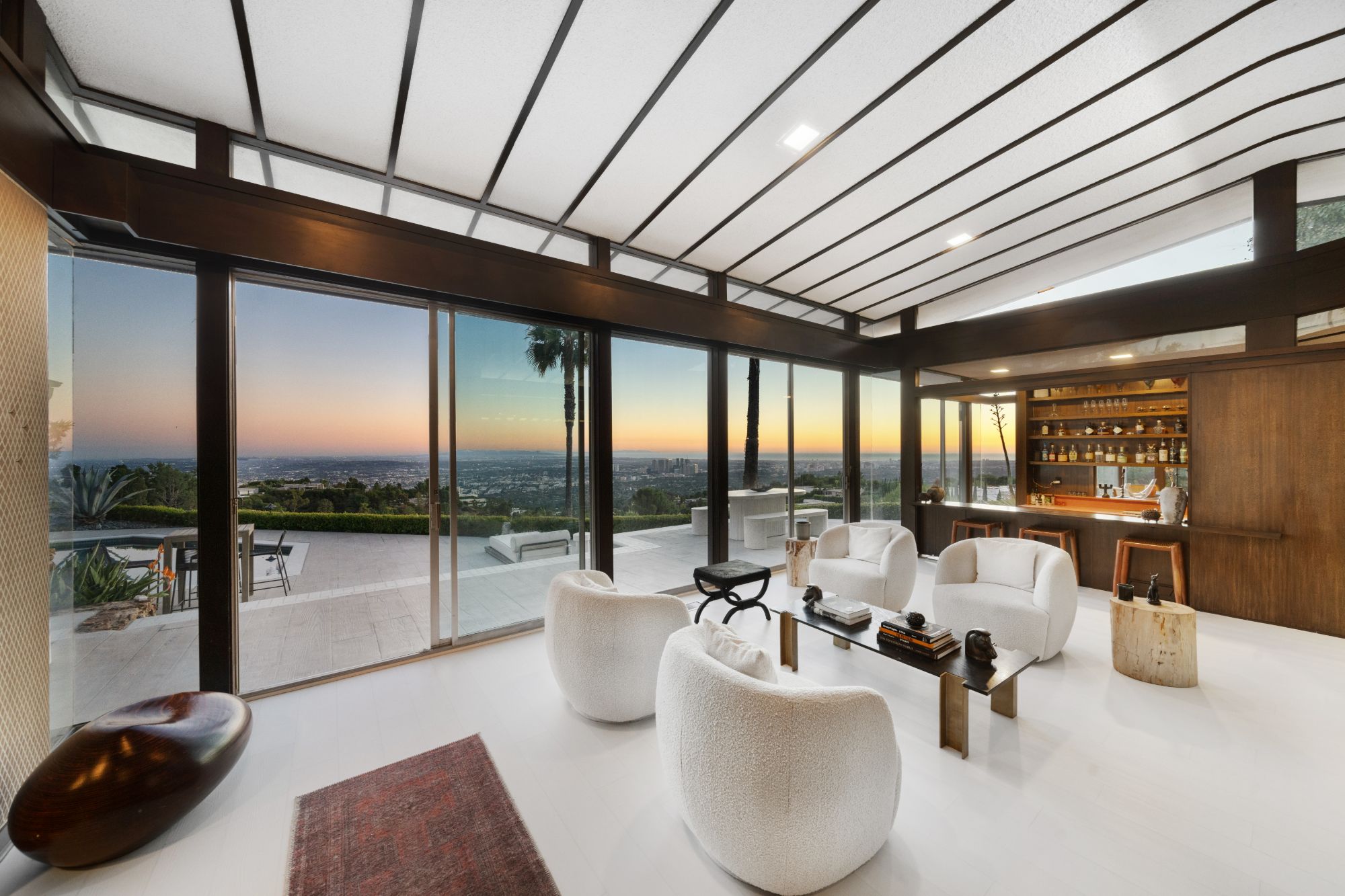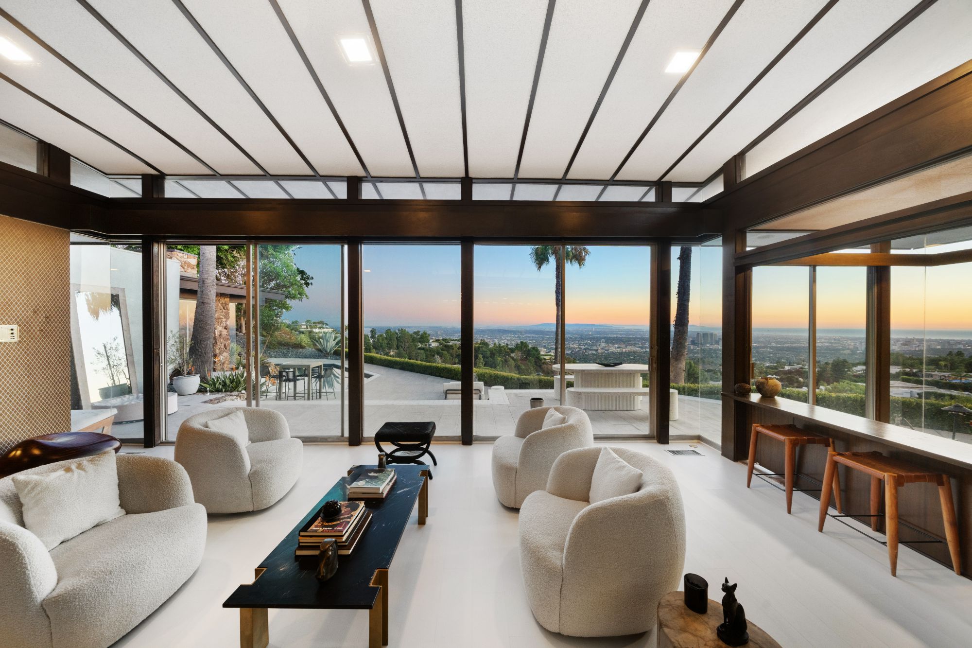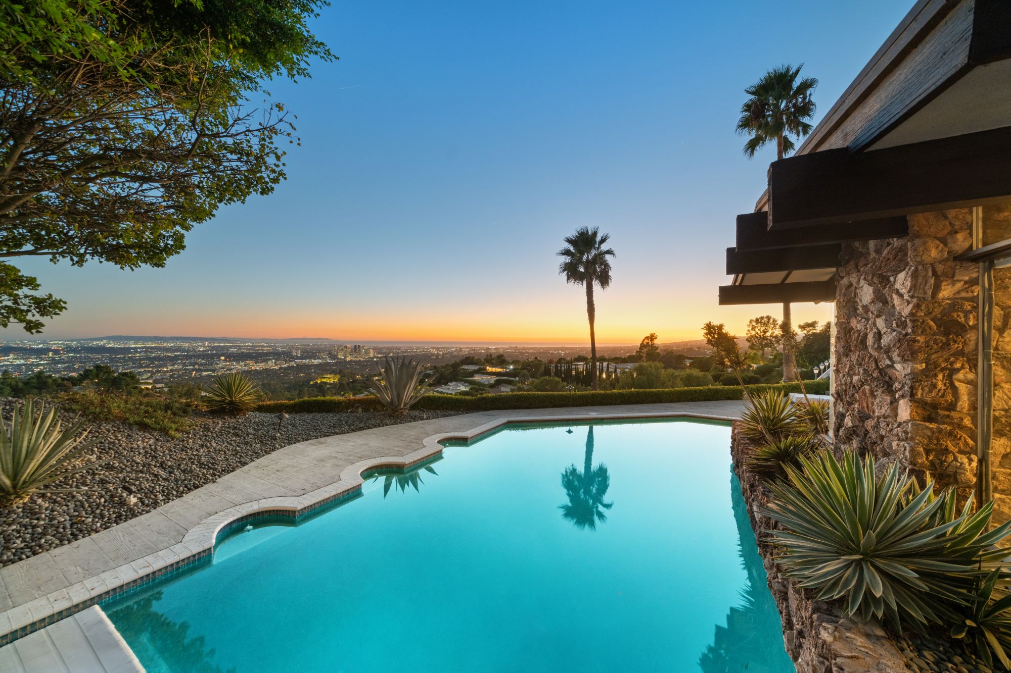 One of a kind Trousdale estate newly restored to its original 1967 mid-century modern grandeur. This home, designed by the renowned architect Rex Lotery, was originally custom built for Ron Waranch, president of construction & friend of Paul Trousdale. Affectionately named Trousdale Palms by the current owners, this is the definition of Trousdale history. With its sophisticated architecture, unique building materials, calming water features & breathtaking 180-degree panoramic city views, this home embodies Trousdale, Beverly Hills, & the ultimate American dream. Trousdale palms features 5 beds, 5 baths, custom kitchen w/ new appliances. Rare Philippine mahogany handcrafted woodwork throughout & floor-to-ceiling views from every room. Step back in time & enjoy a game of pool in the mid-century game room, grab a cocktail & take it outside to the pool area, and watch the sunset & the city come alive. With parking for 8 cars, enjoy this magnificent masterpiece that can be open & welcoming to friends & family at all times.