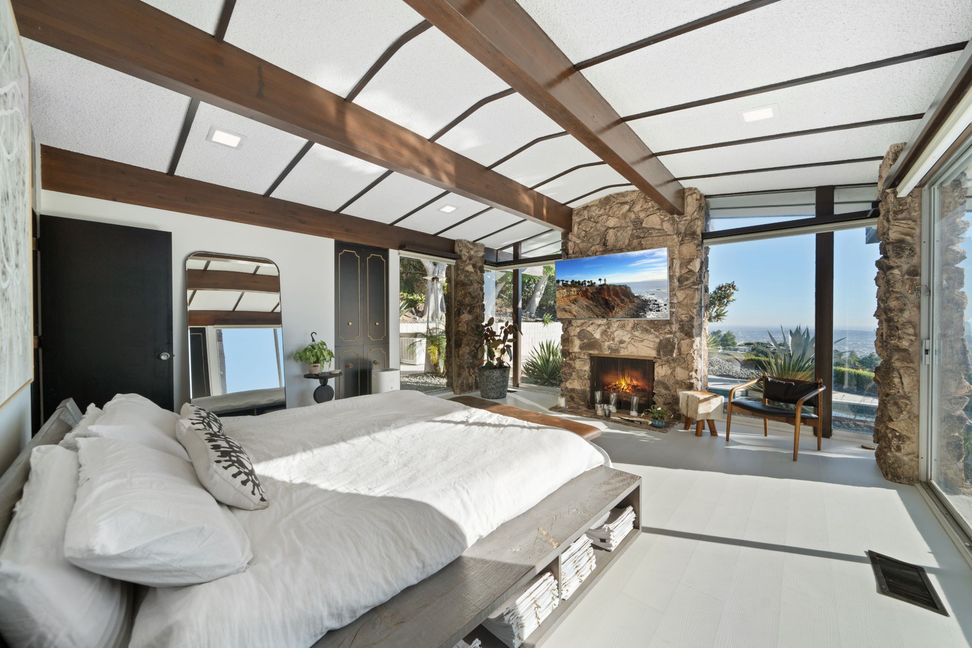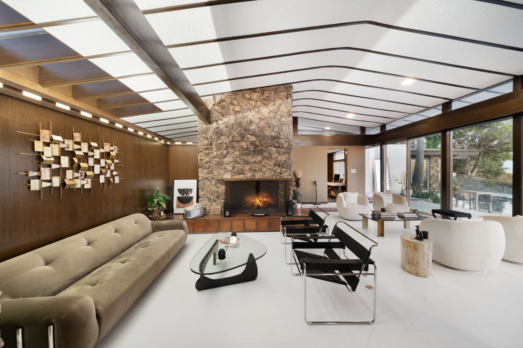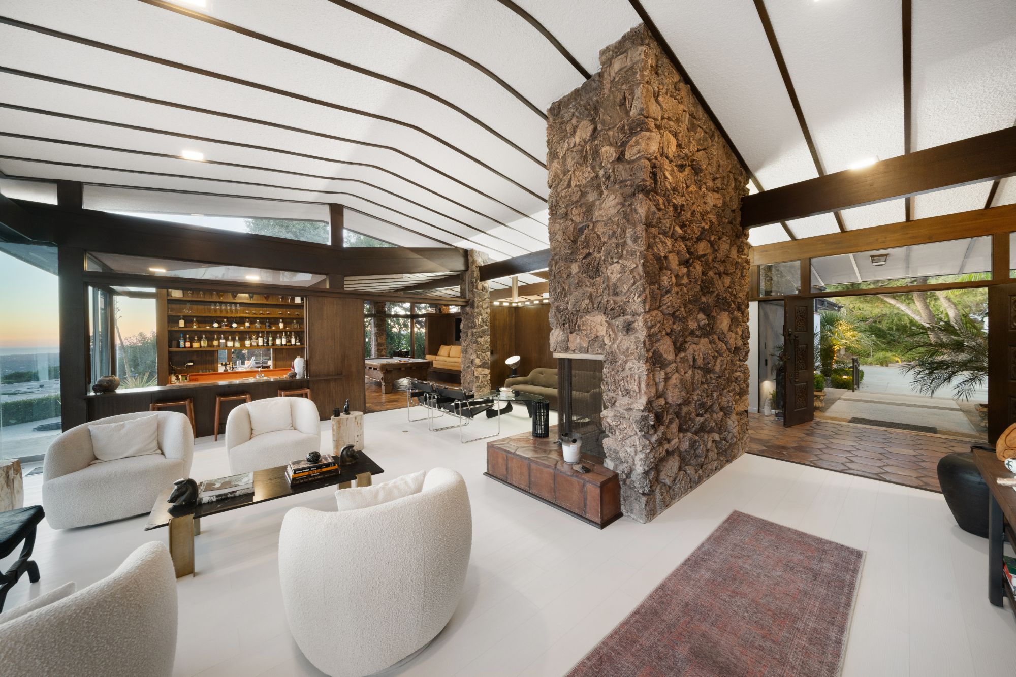 One of a kind Trousdale estate newly restored to its original 1967 mid-century modern grandeur. This home, designed by the renowned architect Rex Lotery, was originally custom built for Ron Waranch, president of construction & friend of Paul Trousdale. Affectionately named Trousdale Palms by the current owners, this is the definition of Trousdale history. With its sophisticated architecture, unique building materials, calming water features & breathtaking 180-degree panoramic city views, this home embodies Trousdale, Beverly Hills, & the ultimate American dream. Trousdale palms features 5 beds, 5 baths, custom kitchen w/ new appliances. Rare Philippine mahogany handcrafted woodwork throughout & floor-to-ceiling views from every room. Step back in time & enjoy a game of pool in the mid-century game room, grab a cocktail & take it outside to the pool area, and watch the sunset & the city come alive. With parking for 8 cars, enjoy this magnificent masterpiece that can be open & welcoming to friends & family at all times.